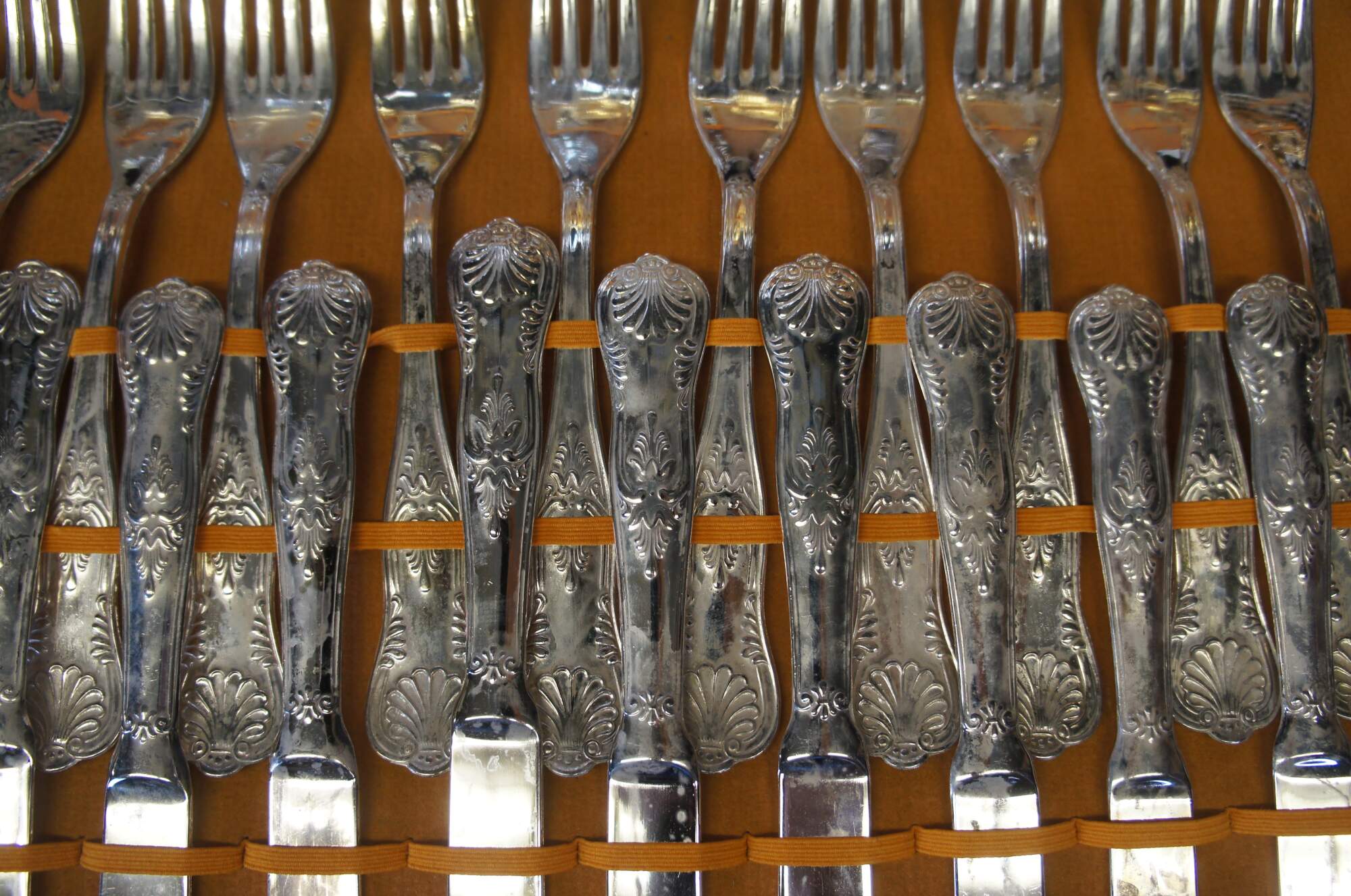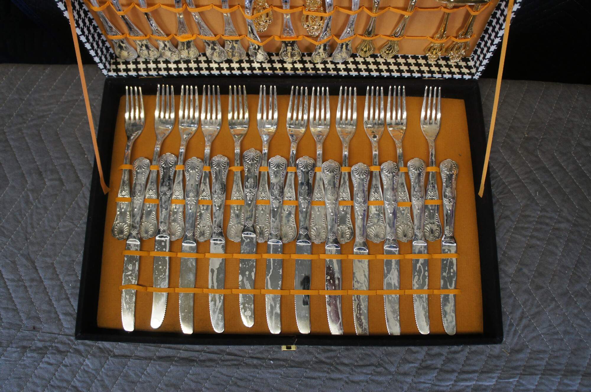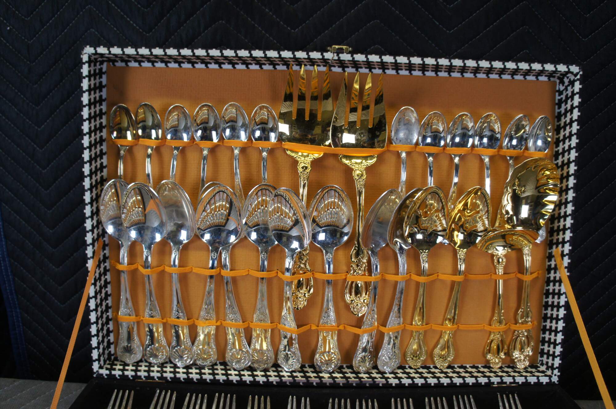 52 Piece Vintage Kings Pattern Silver Plated Cutlery Arg 800 Flatware Set & Case. Some of the accent pieces are gold