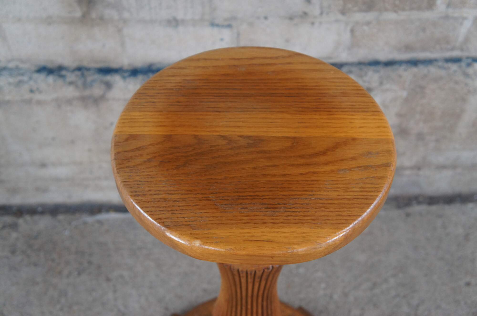 Victorian era oak pedestal, circa late 19th century. Features a beautifully turned column with reeded center over tiered and footed base. Great for display of plants and sculptures.