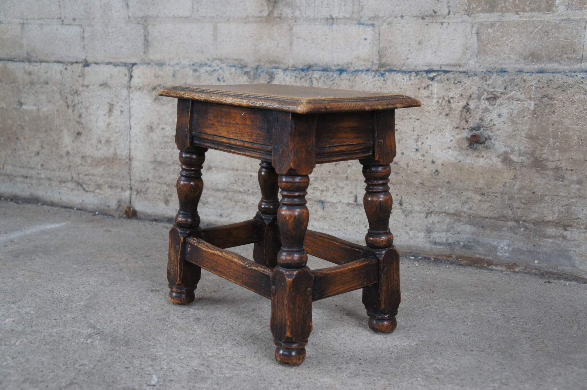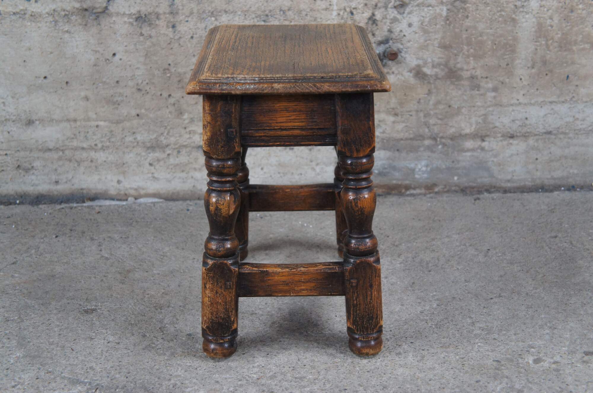 Early 20th Century Joint Stool. Rectangular form with turned supports and jointed legs.
