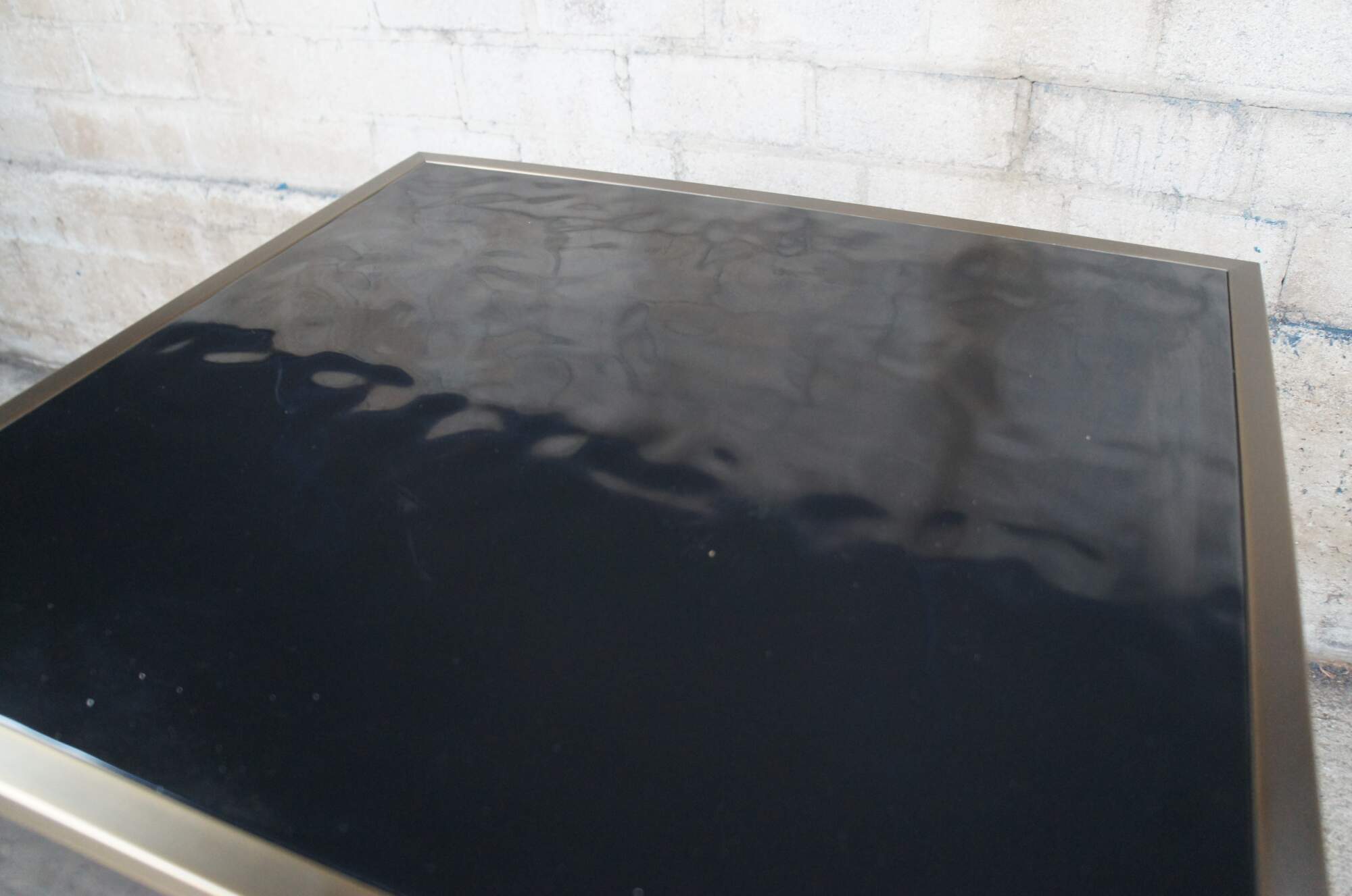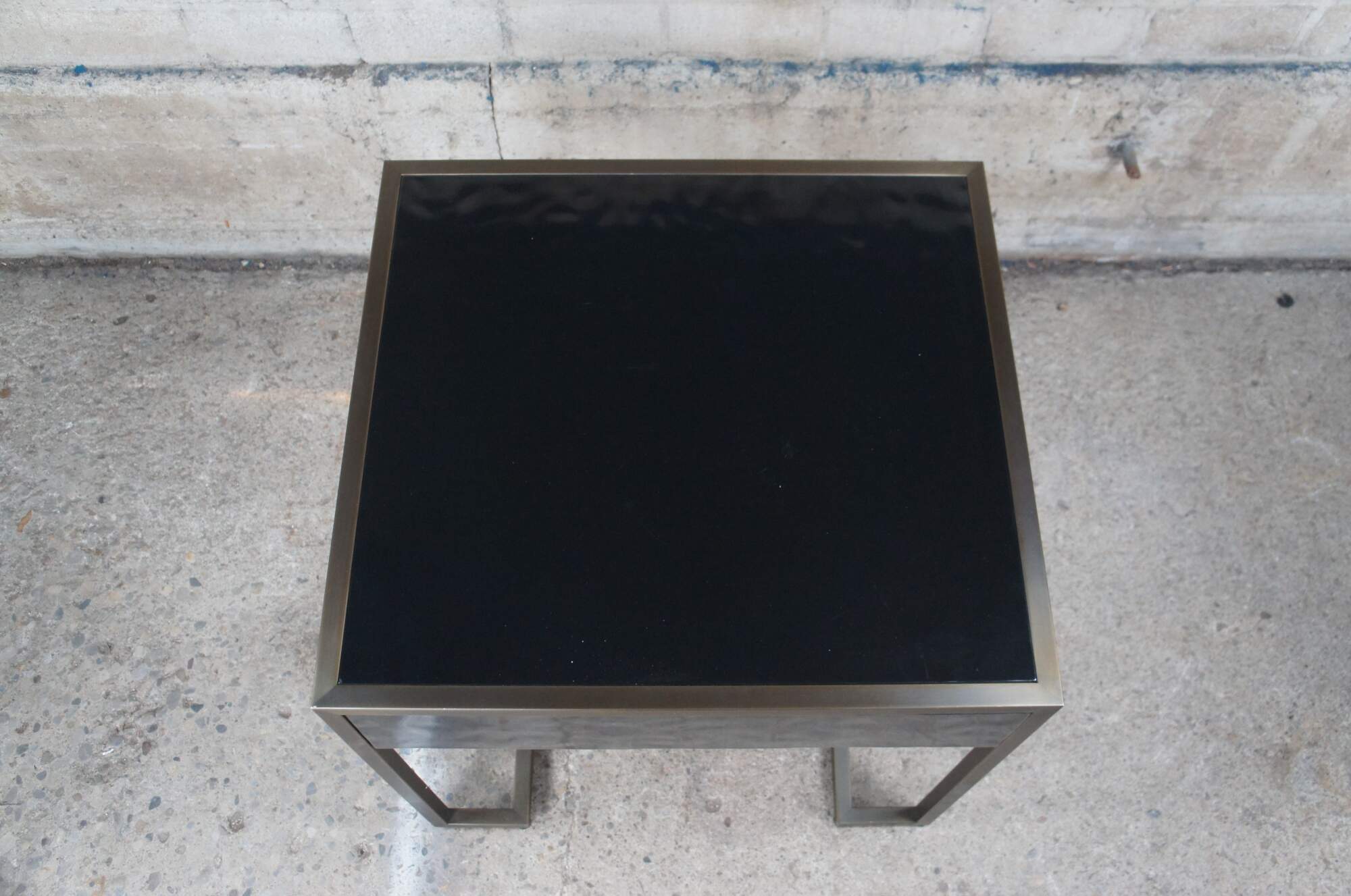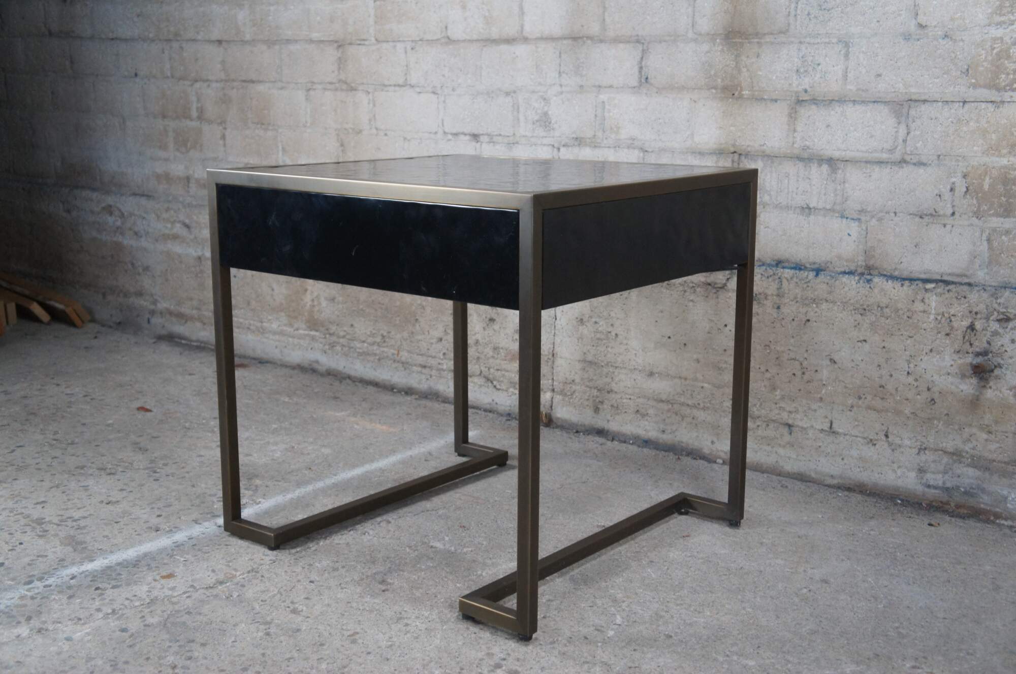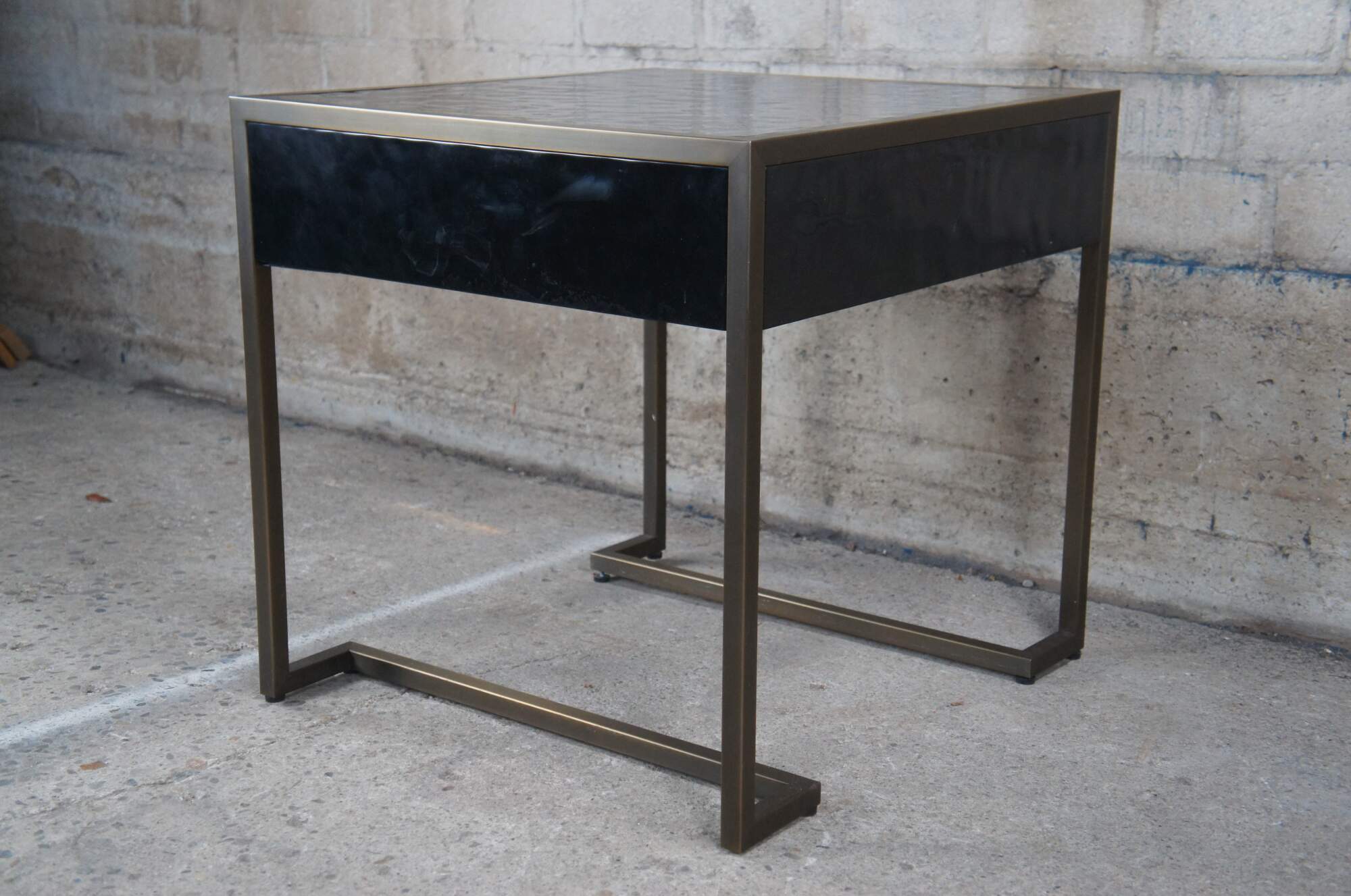 Vintage Baker Milling Road Kara Mann Collection ""Straight Up"" side table featuring black liquid lacquered finish and metal frame with one drawer. MR7060