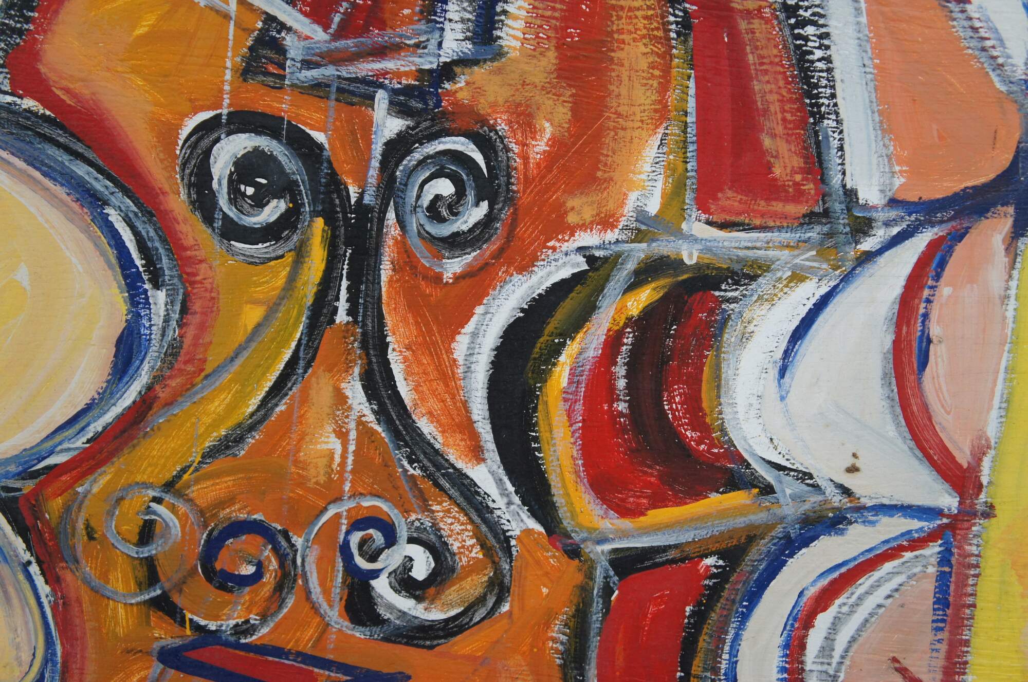 Vintage oil painting on board featuring a colorful Cello. Signed Armand and Rita.