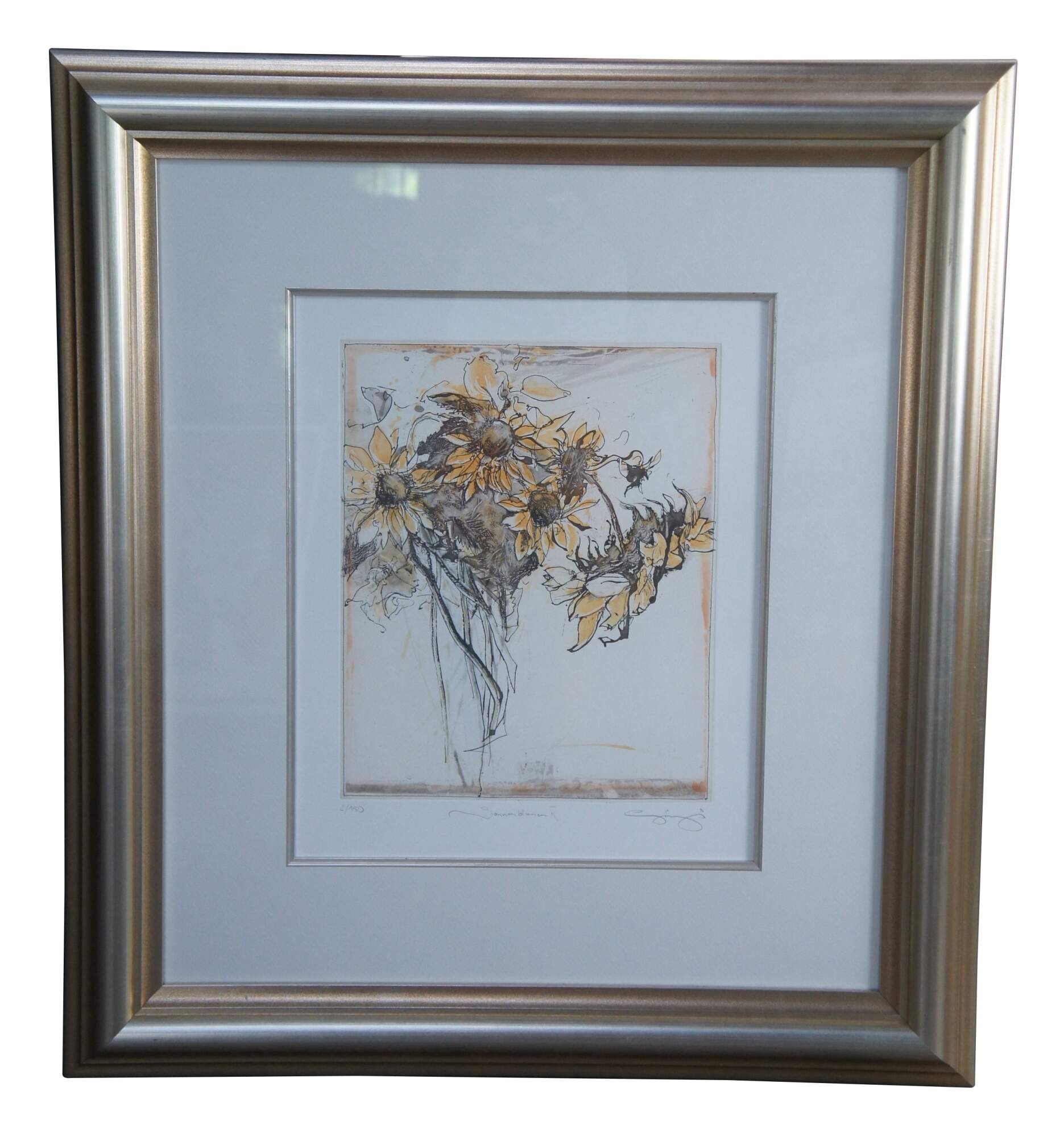 Vintage pair of floral Sunflower lithographs featuring a bouquet of flowers. Signed lower right, #2 of 150.