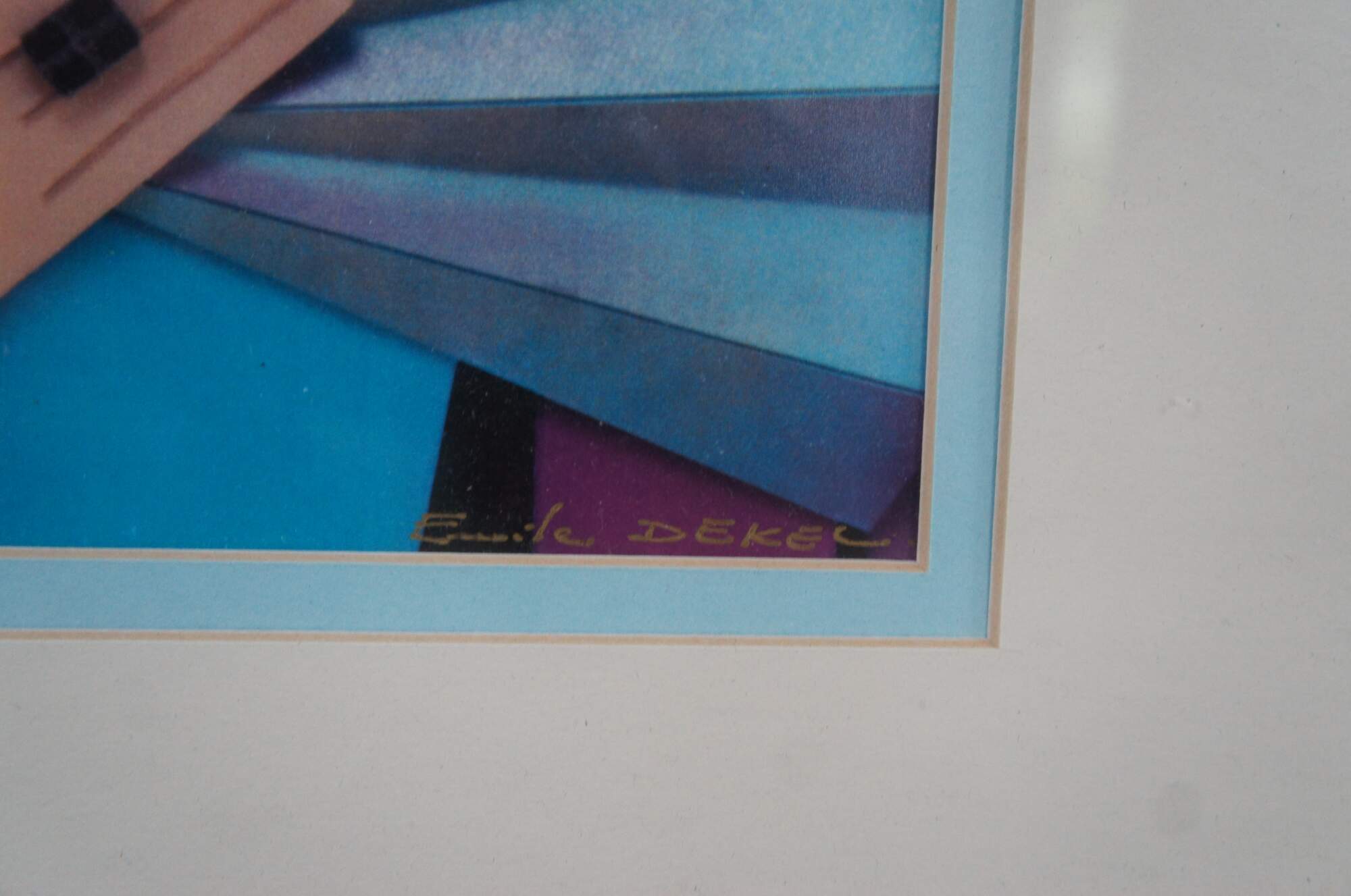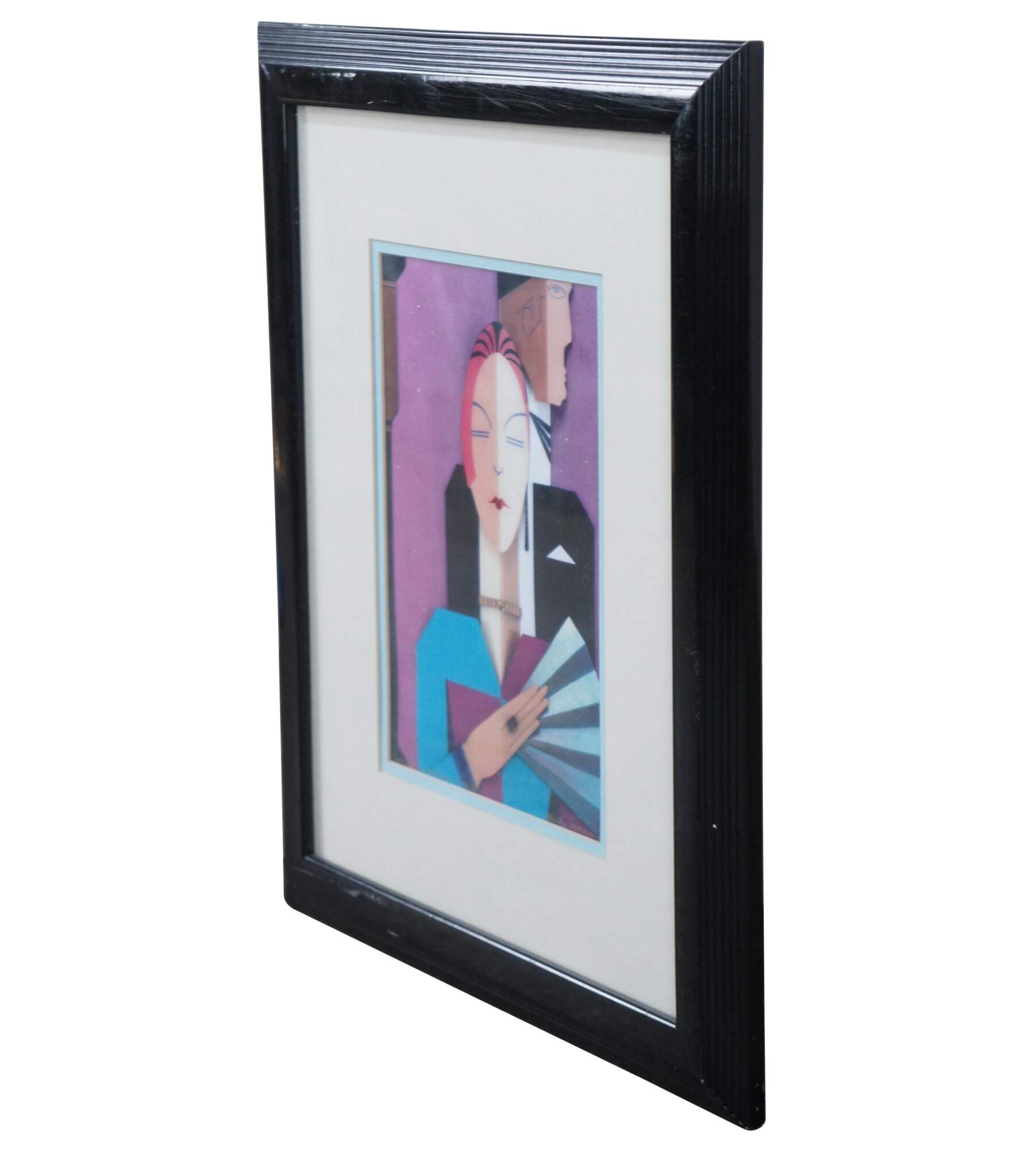 Vintage Emile Dekel signed print titled La Belle Epoque, featuring a modern art deco style portrait of a woman and man in formal attire.