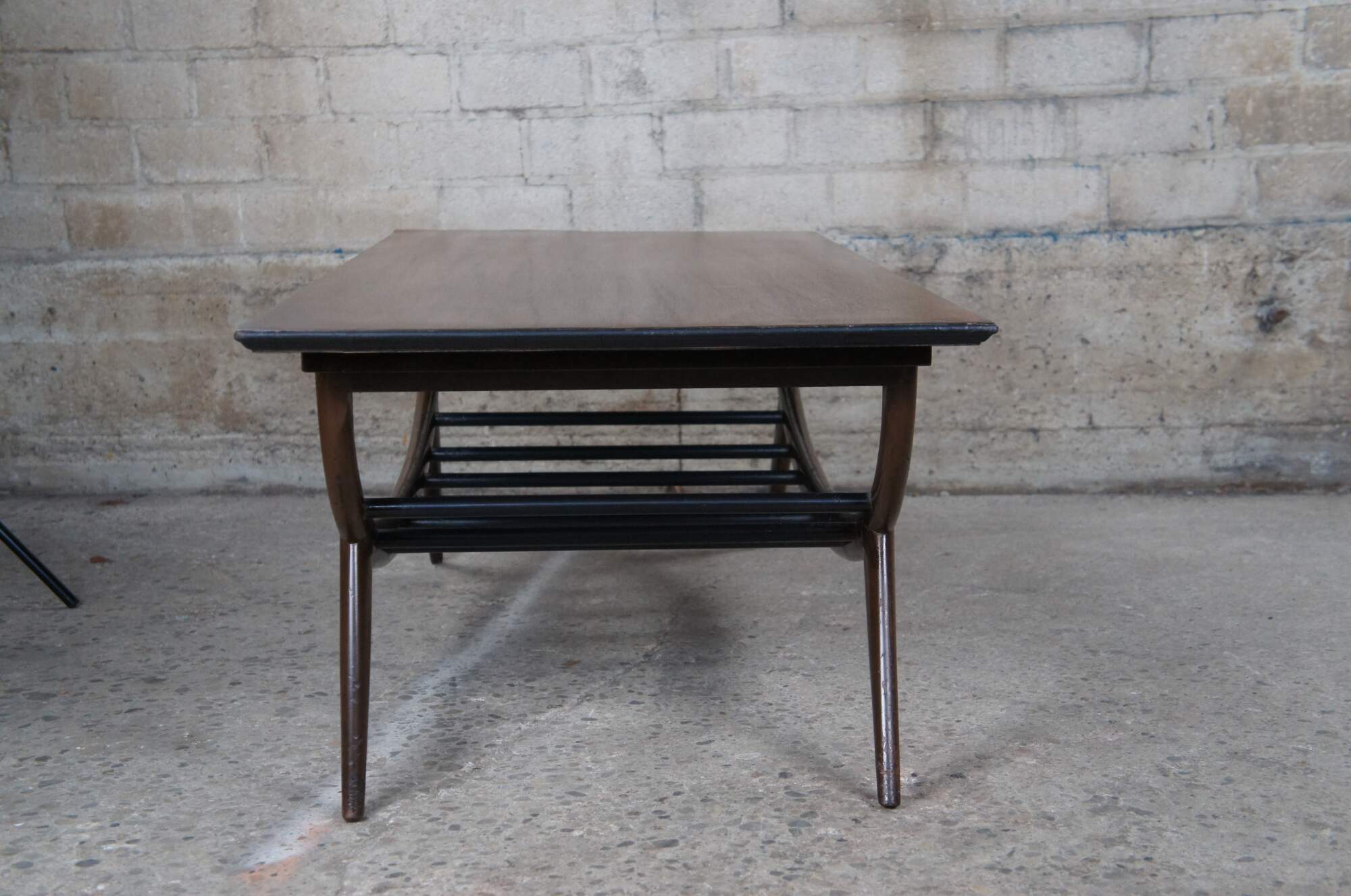 An impressive Mid Century Modern coffee table. Features a sculptural oak form with an open slatted base and tapered peg legs. Marked along underside 20529