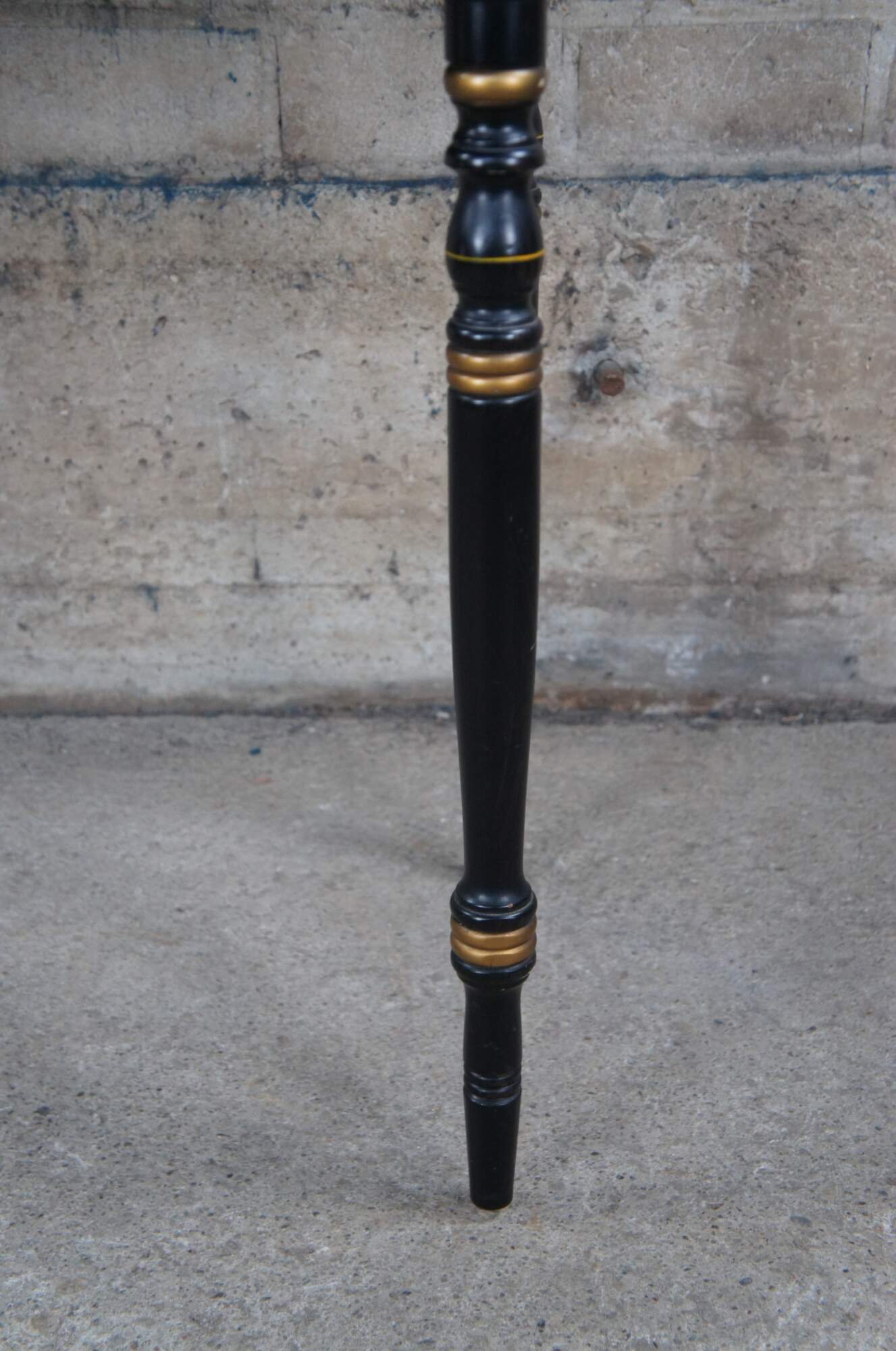 Mid 20th Century Lambert Hitchcock Black Forest stenciled ladies secretary writing desk or console table. Made of maple featuring black ebonized finish with gold accents and stenciled arrangement of gourds and vegetables. Includes porcelain knobs with an eagle carrying a flag. True Hitchcock secretary desks are becoming harder and harder to find.