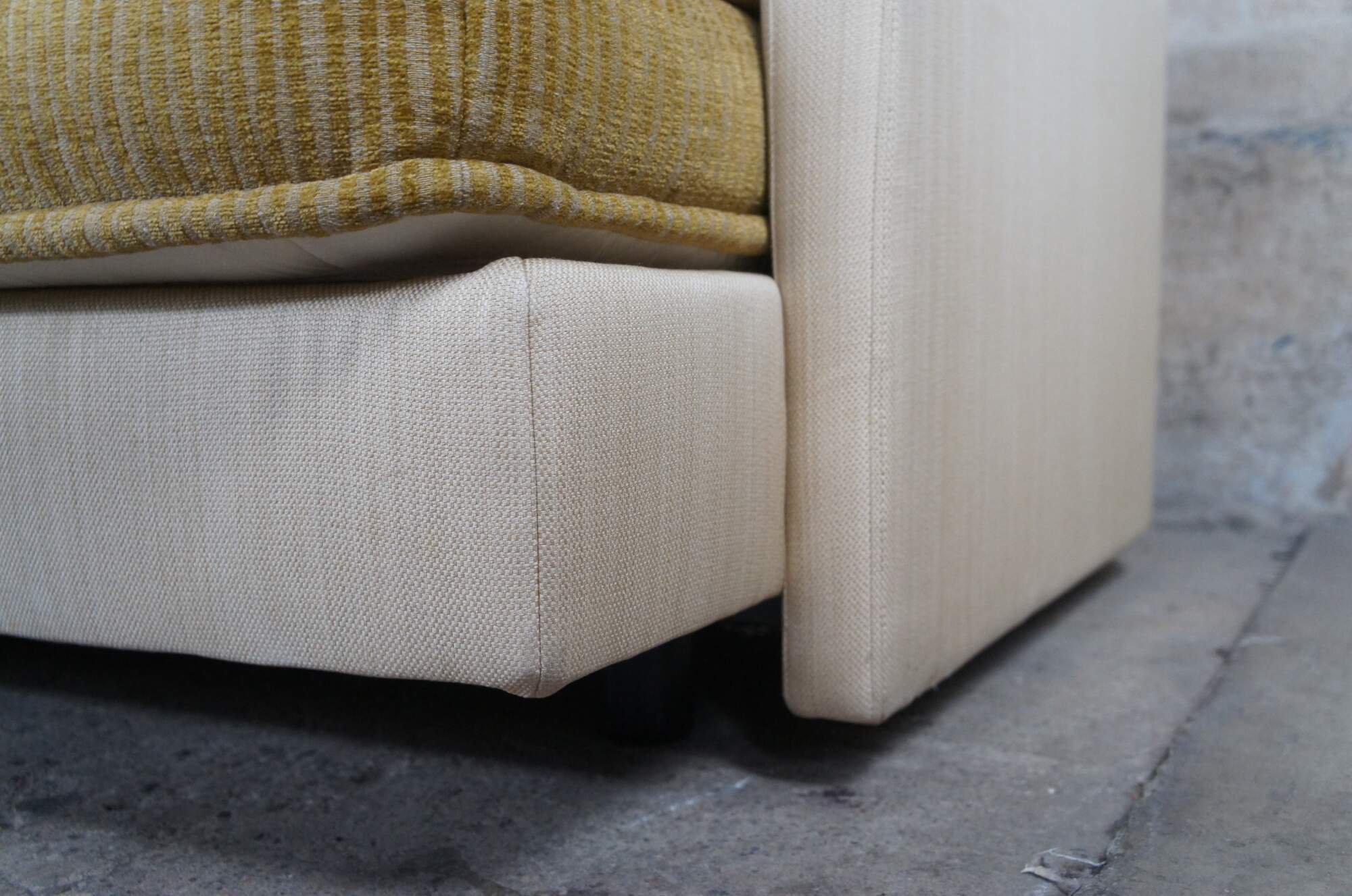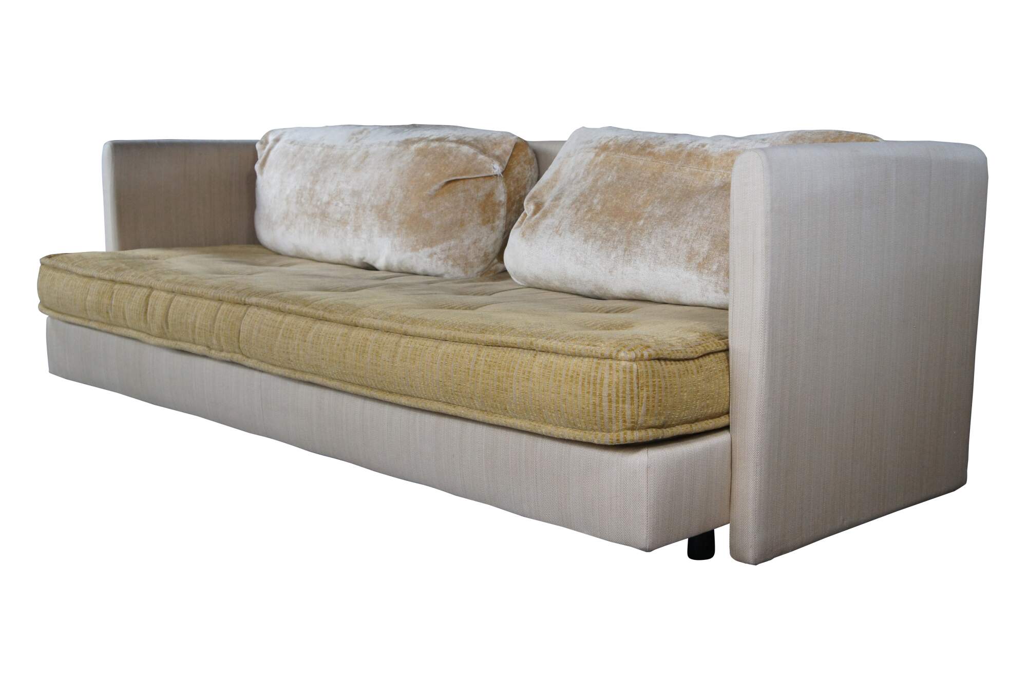 Good Overall; some age and use related wear, small tear to the top of left arm as well as one of the pillows.