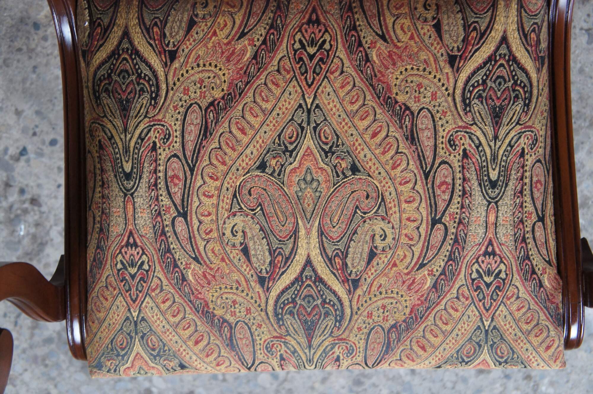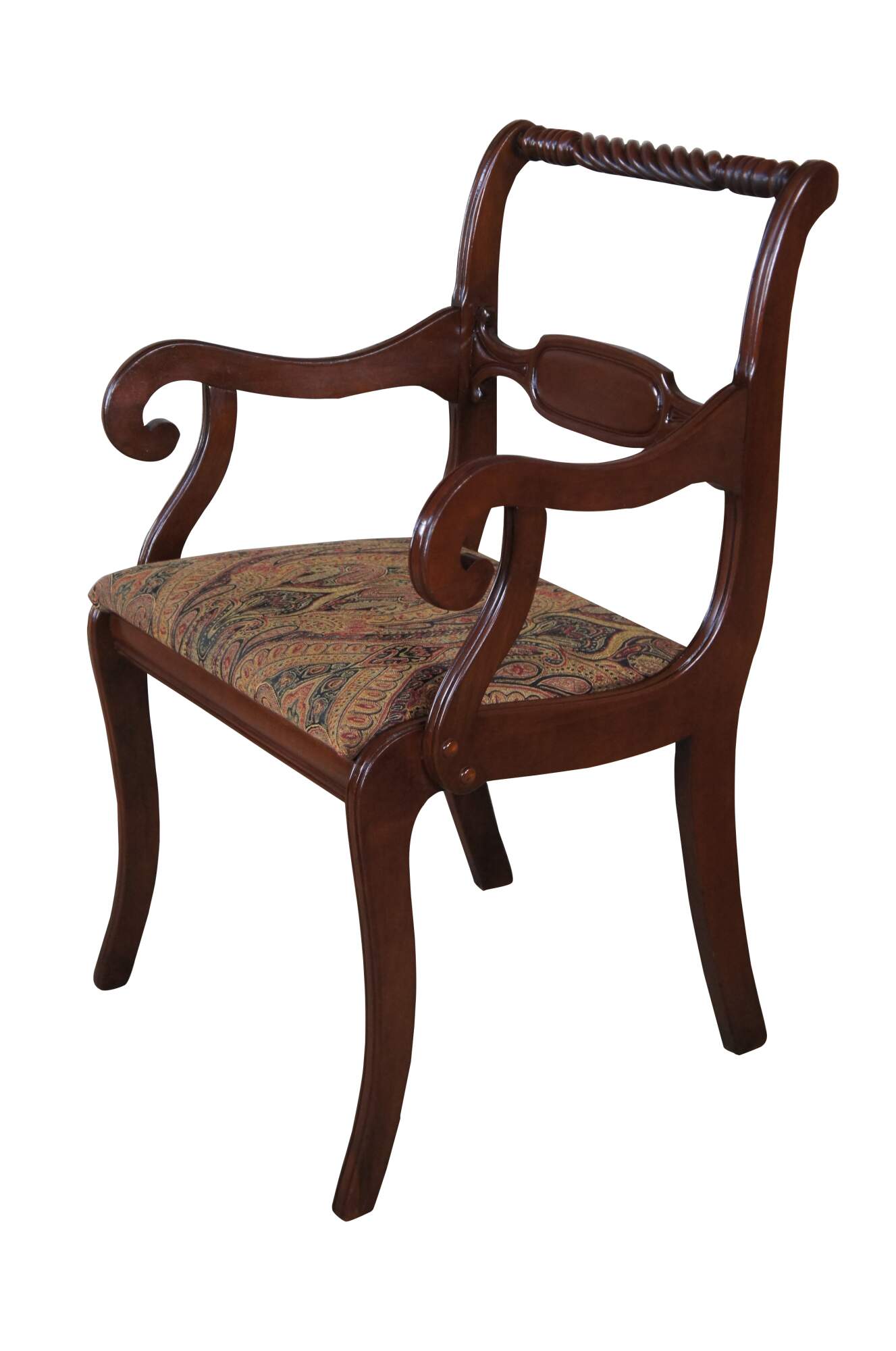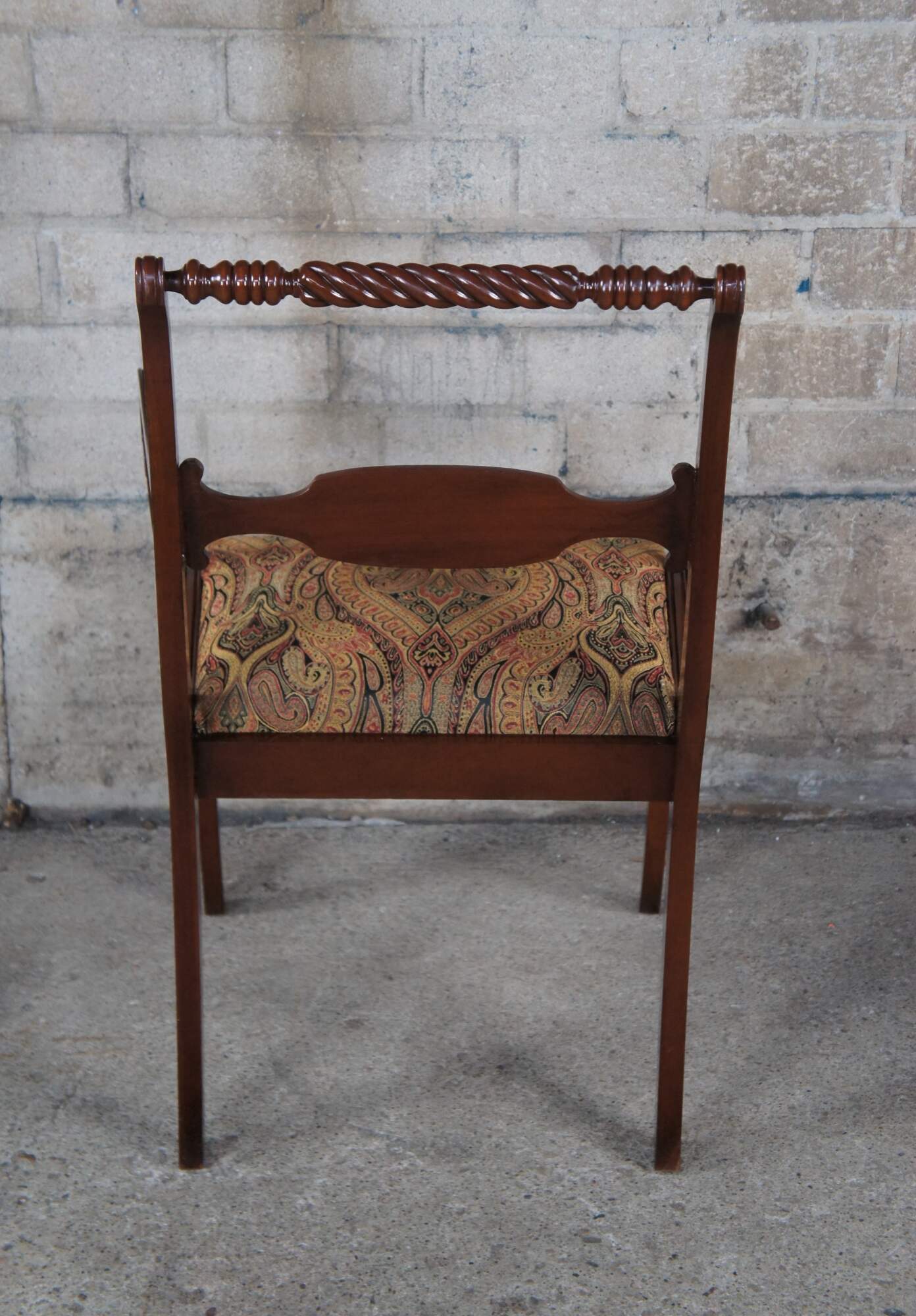 Set of six Antique Styled by Park dining chairs. Made of cherry featuring an open back design with barley twisted and fluted accents and paisley seat.