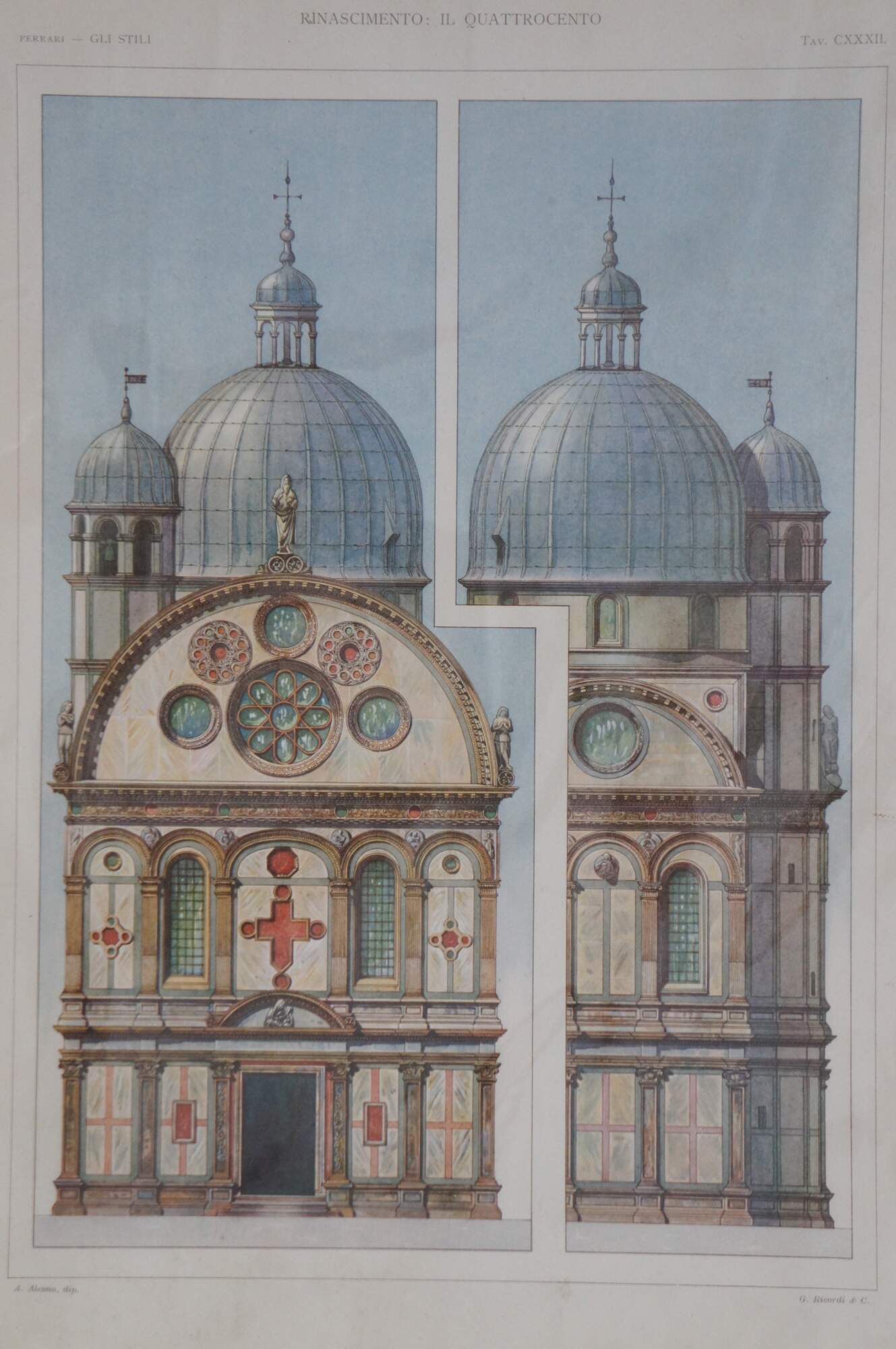 Tav. CXXXII – Venezia, Facciata e abside della Chiesa di S.M. dei Miracoli. (Venice, Facade and apse of the Church of Santa Maria dei Miracoli)