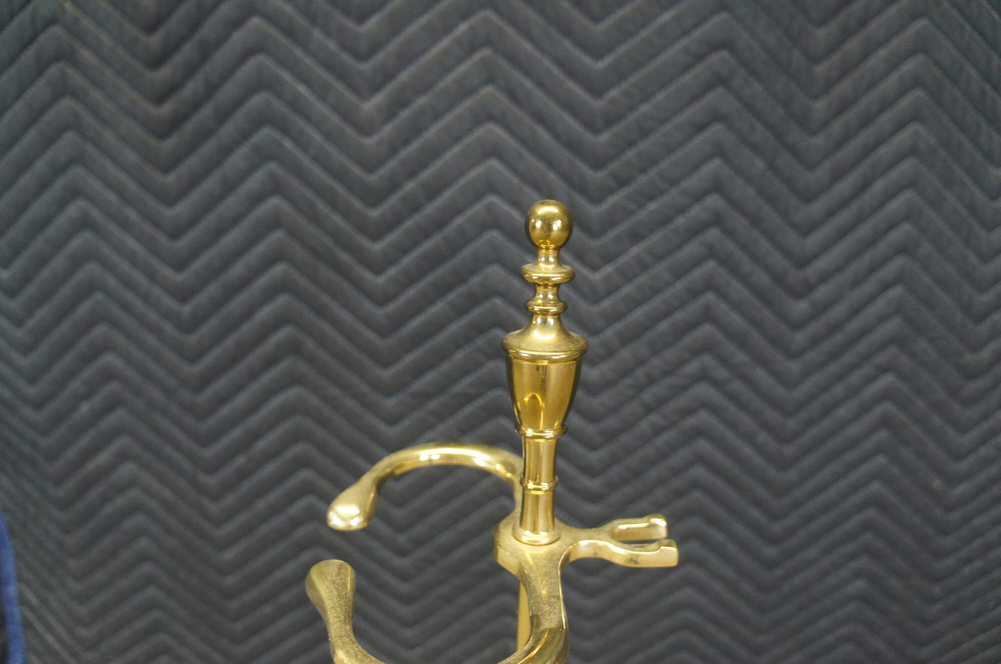 Vintage French Empire style brass fireplace tools. Includes a poker, shovel and brush. Neatly designed with trophy finials for handles.
