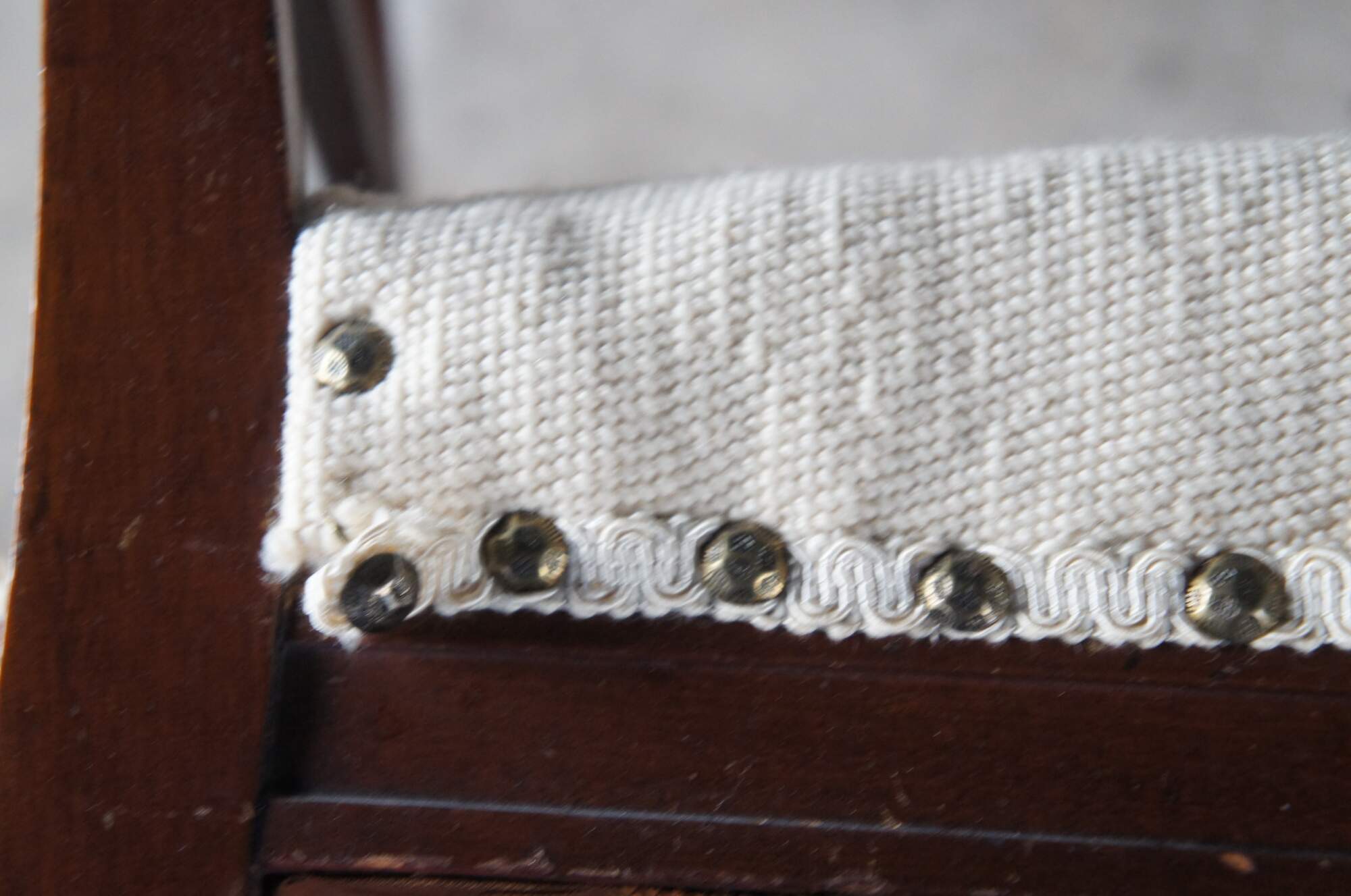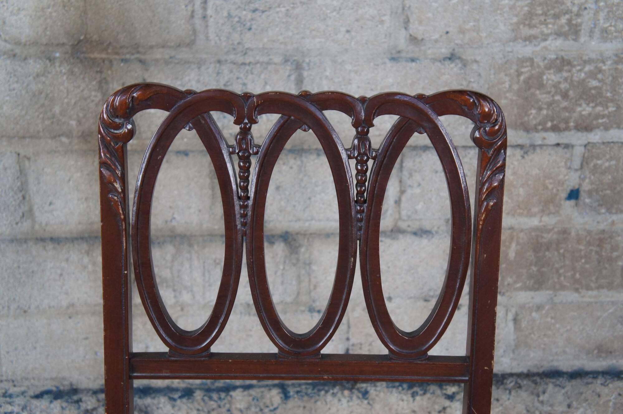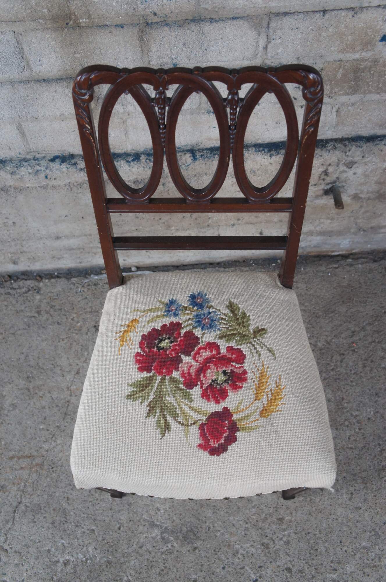 Antique Hepplewhite Hoop Back accent chair. Made of mahogany featuring pierced reticulated design with floral rose needlepoint seat with nailhead trim over tapered front legs.