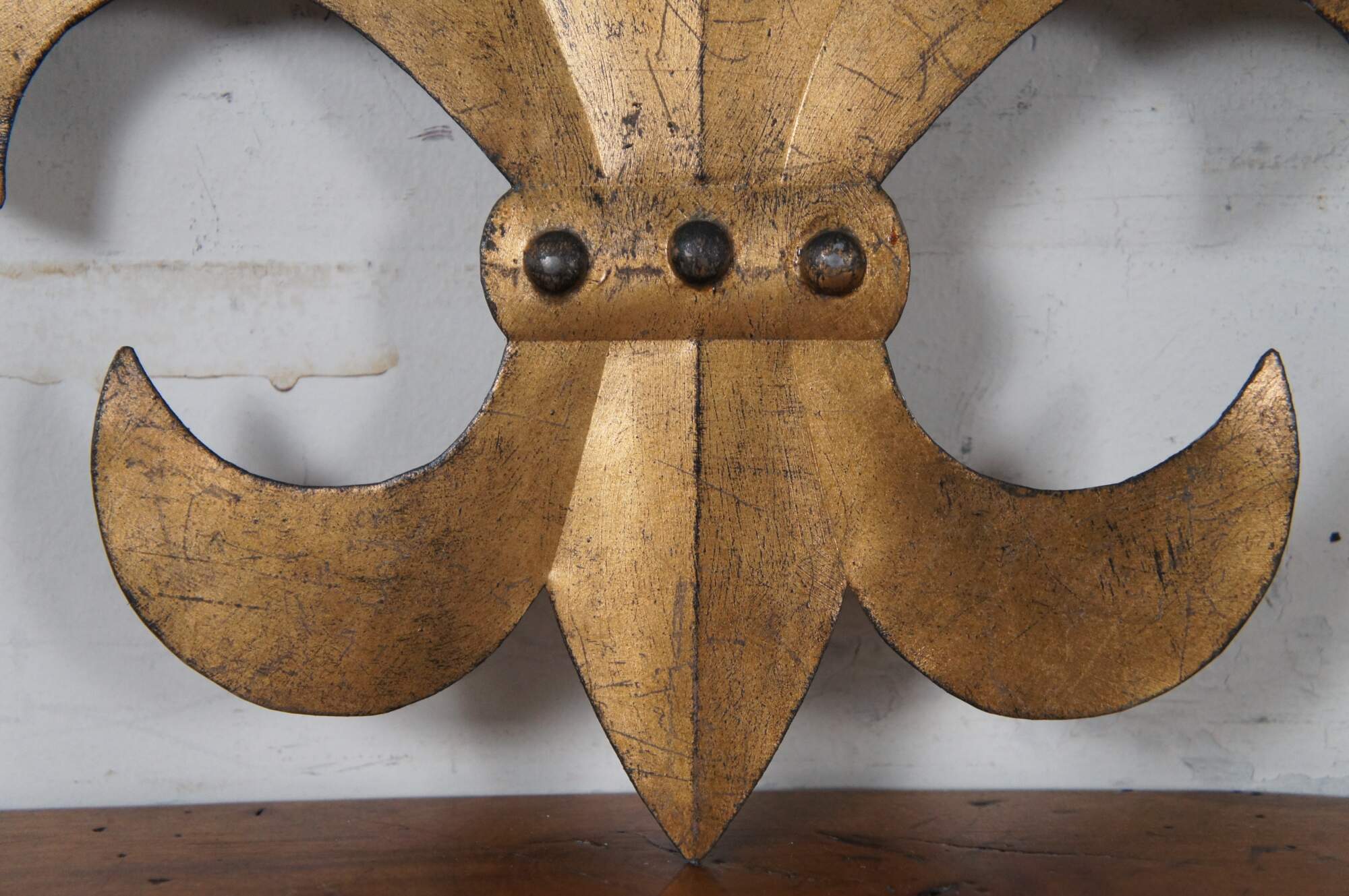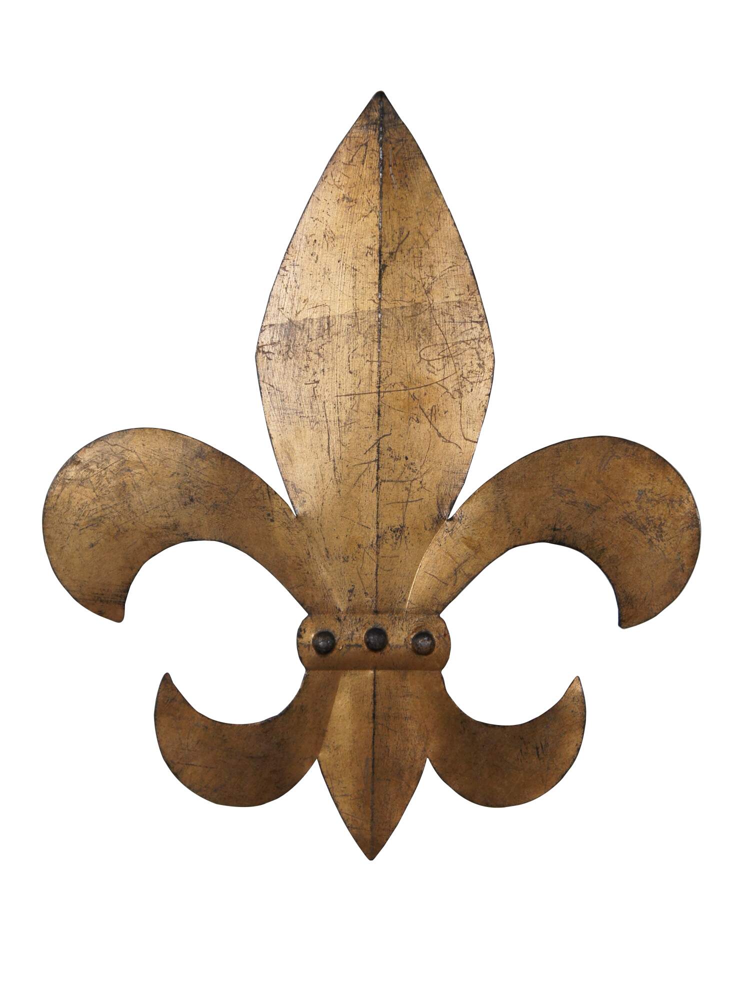 Vintage pair of gold painted Fleur De Lis wall art plaques. The fleur-de-lis, also spelled fleur-de-lys, is a common heraldic charge in the shape of a lily. Most notably, the fleur-de-lis is depicted on the traditional coat of arms of France that was used from the High Middle Ages until the French Revolution in 1792, and then again in brief periods in the 19th century. Go Saints.