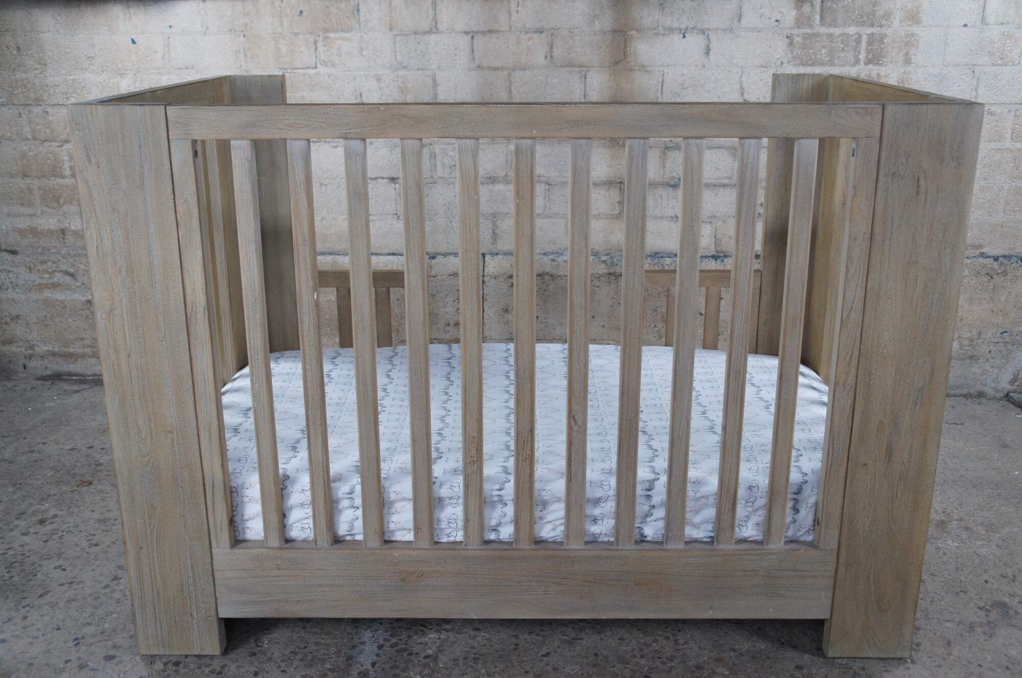 Callum crib bed in Sandwashed Grey, convertable from crib to toddler bed, includes mattress and giraffe sheet. Stout corner posts and simple, straight lines define the Callum Crib. A protective safe haven for little ones, it combines tried-and-true functionality with a pleasingly modern aesthetic.