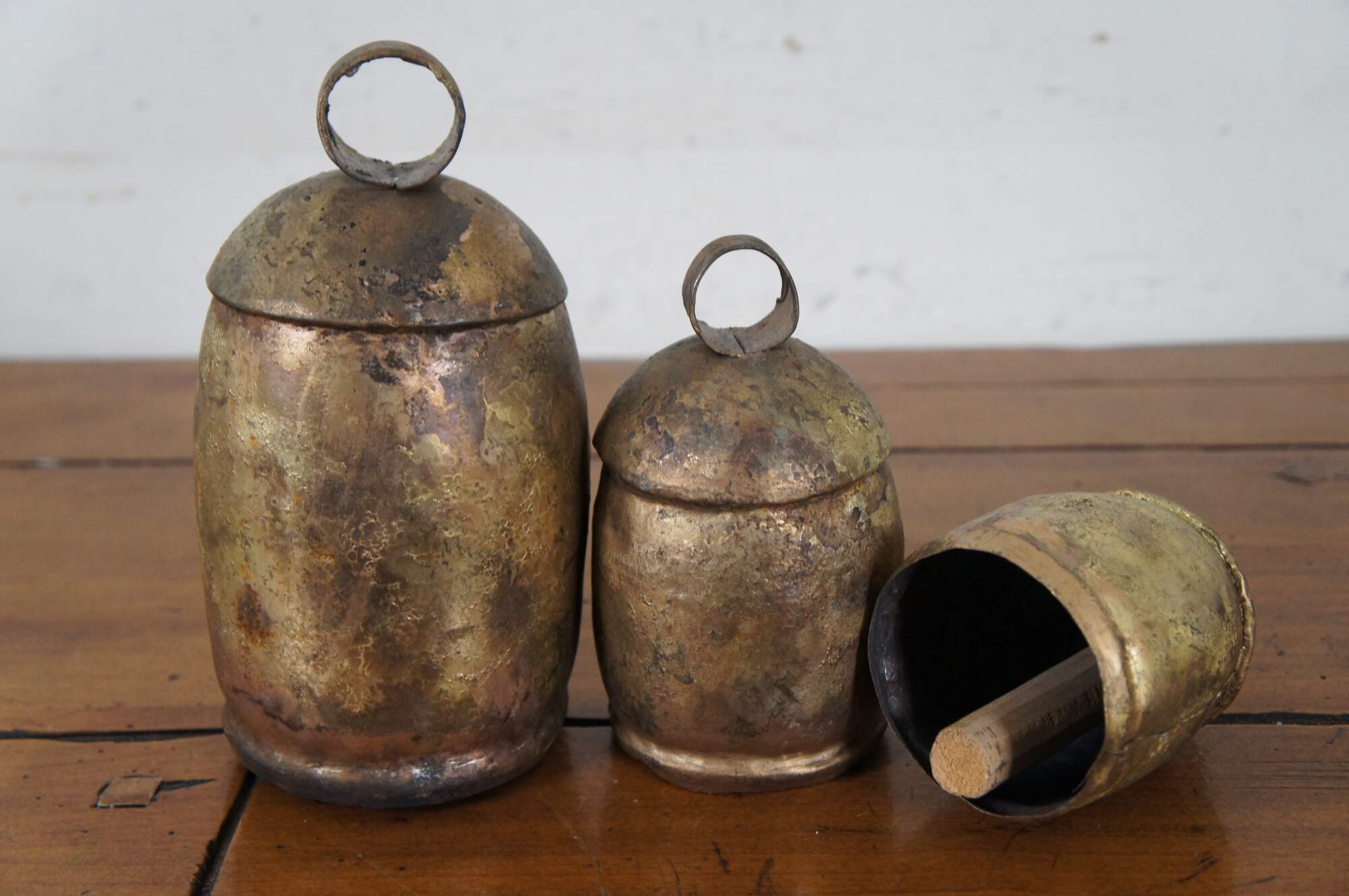 Noah Bell (khadki) is the common name given to this distinct type of bell that possibly originated from monasteries in India hundreds of years ago. Today they are still hand crafted by ancient and inherited traditions of using iron sheets that are coated on the outside with molten brass, then baked. The inner surface of the bells is powdered coated, and the outer surface has a distressed finish.