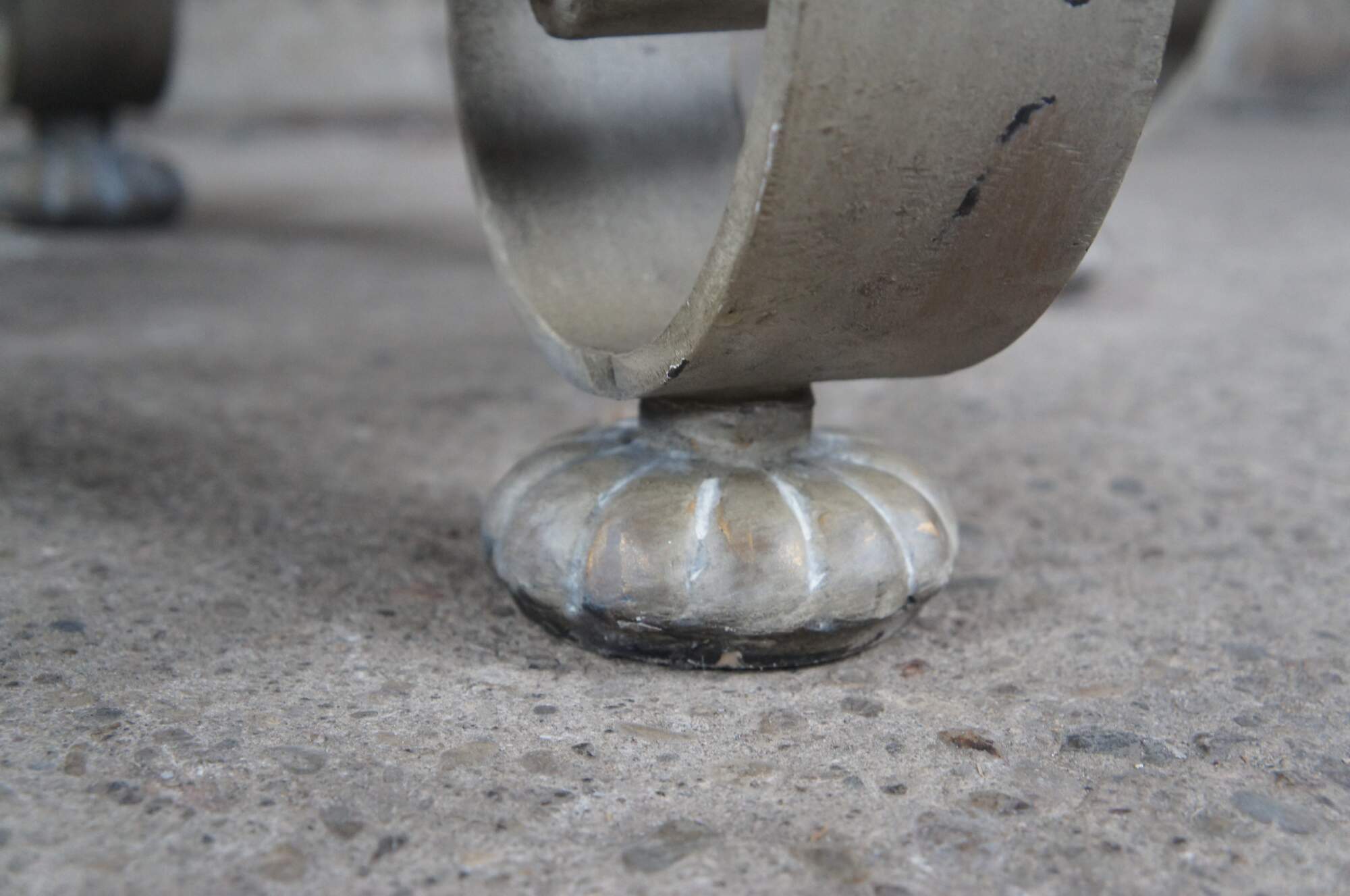 Vintage Maitland Smith coffee or cocktail table featuring round form with tessellated stone top supported by heavy tiered iron base with twisted and scrolled accents.