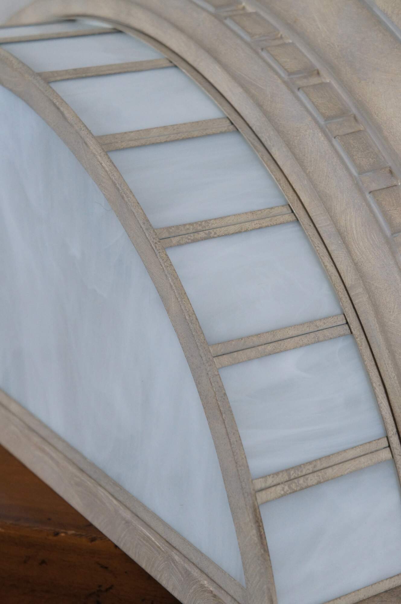 Vintage modern / contemporary wall sconce featuring Grecian style capital / column with half round form and five lights with slag glass panels.