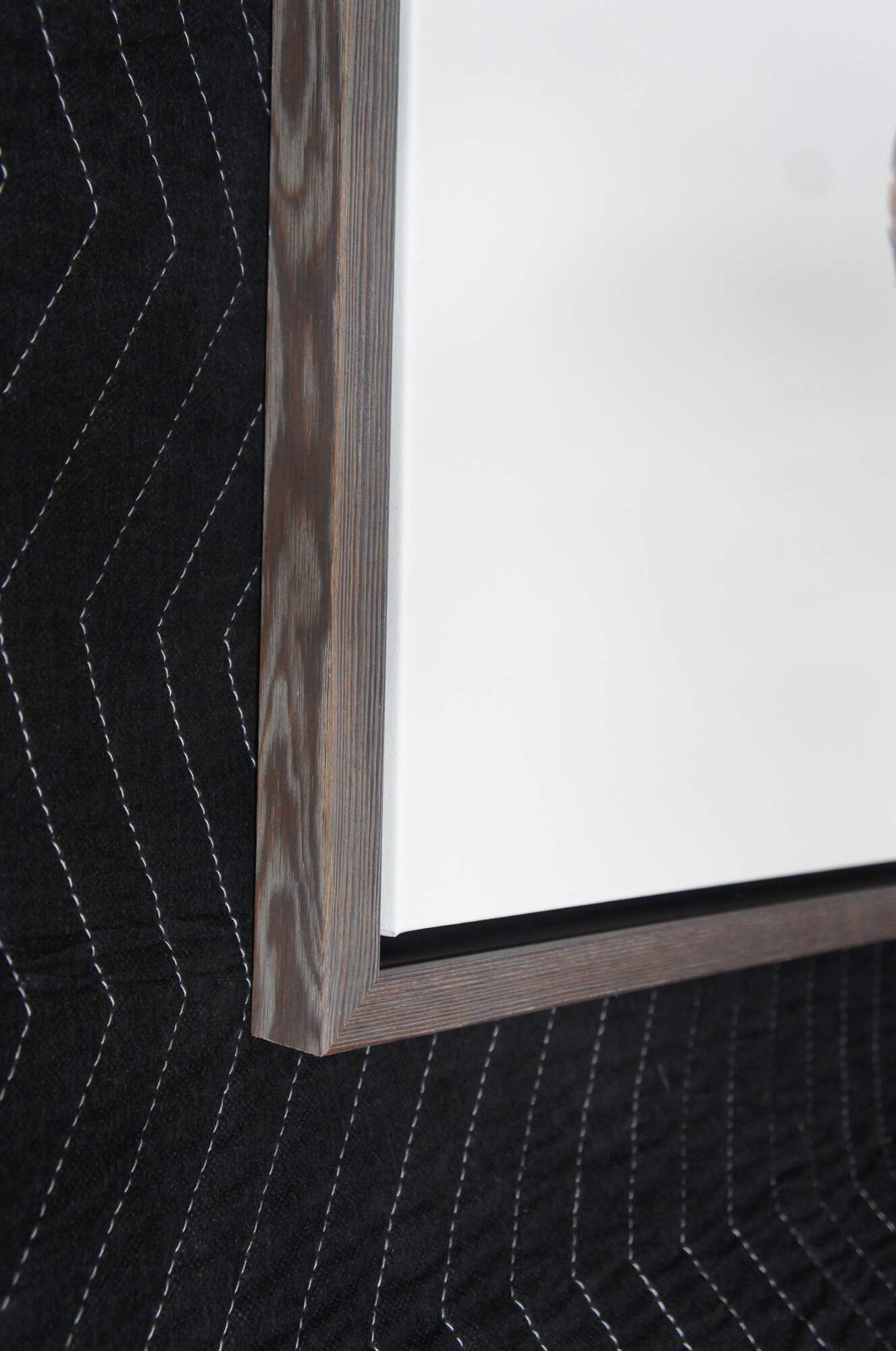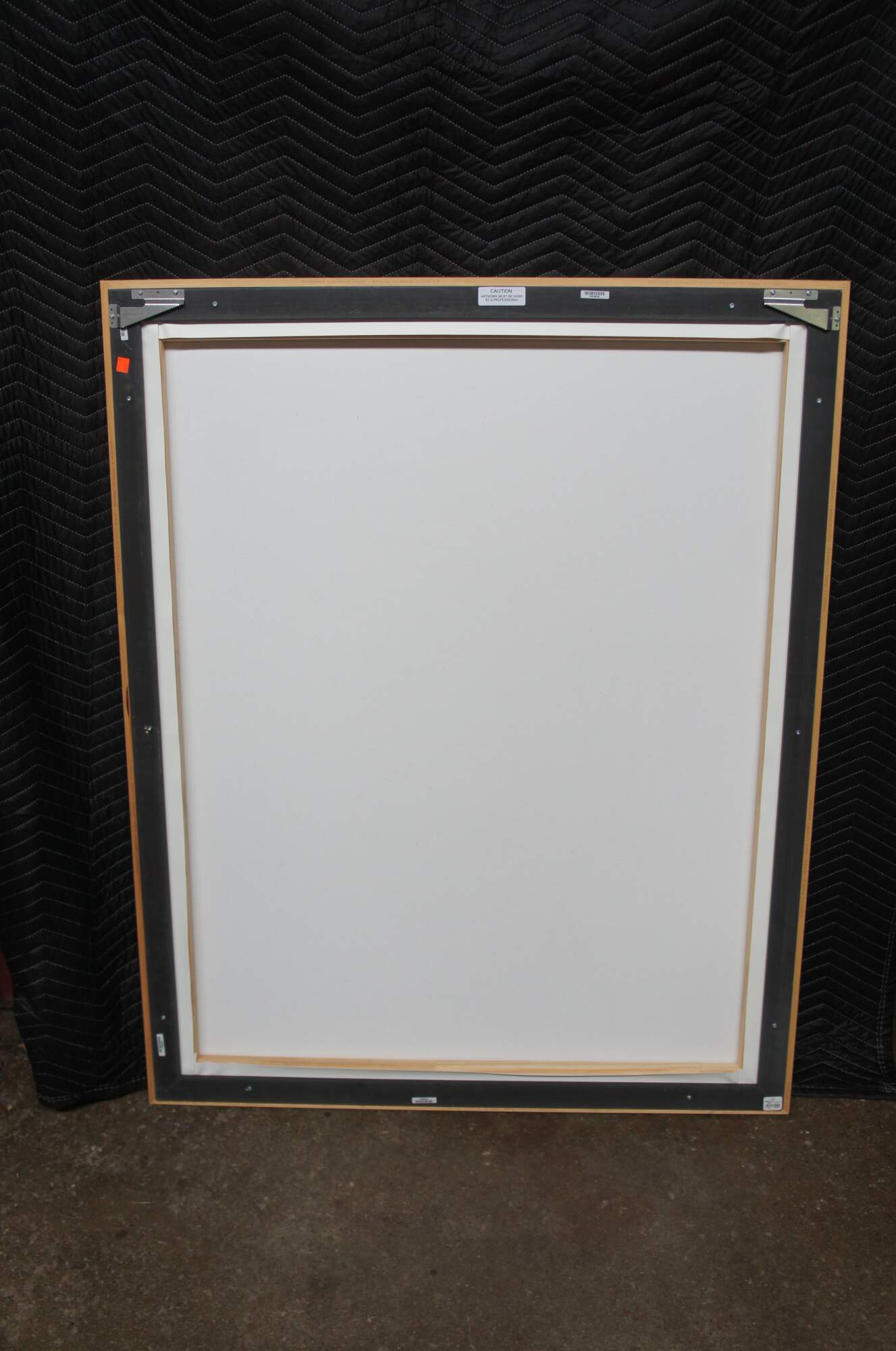 A fun giraffe watercolor painting on canvas from Restoration Hardware. Framed in oak by the Larson Juhl an industry leader in framing.