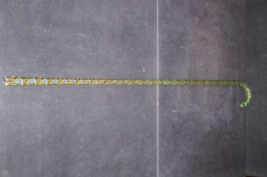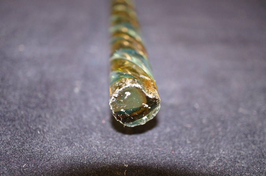 Antique 1800s Solid Coiled Sandwich Glass Cane Walking Stick Aqua Blue & Amber