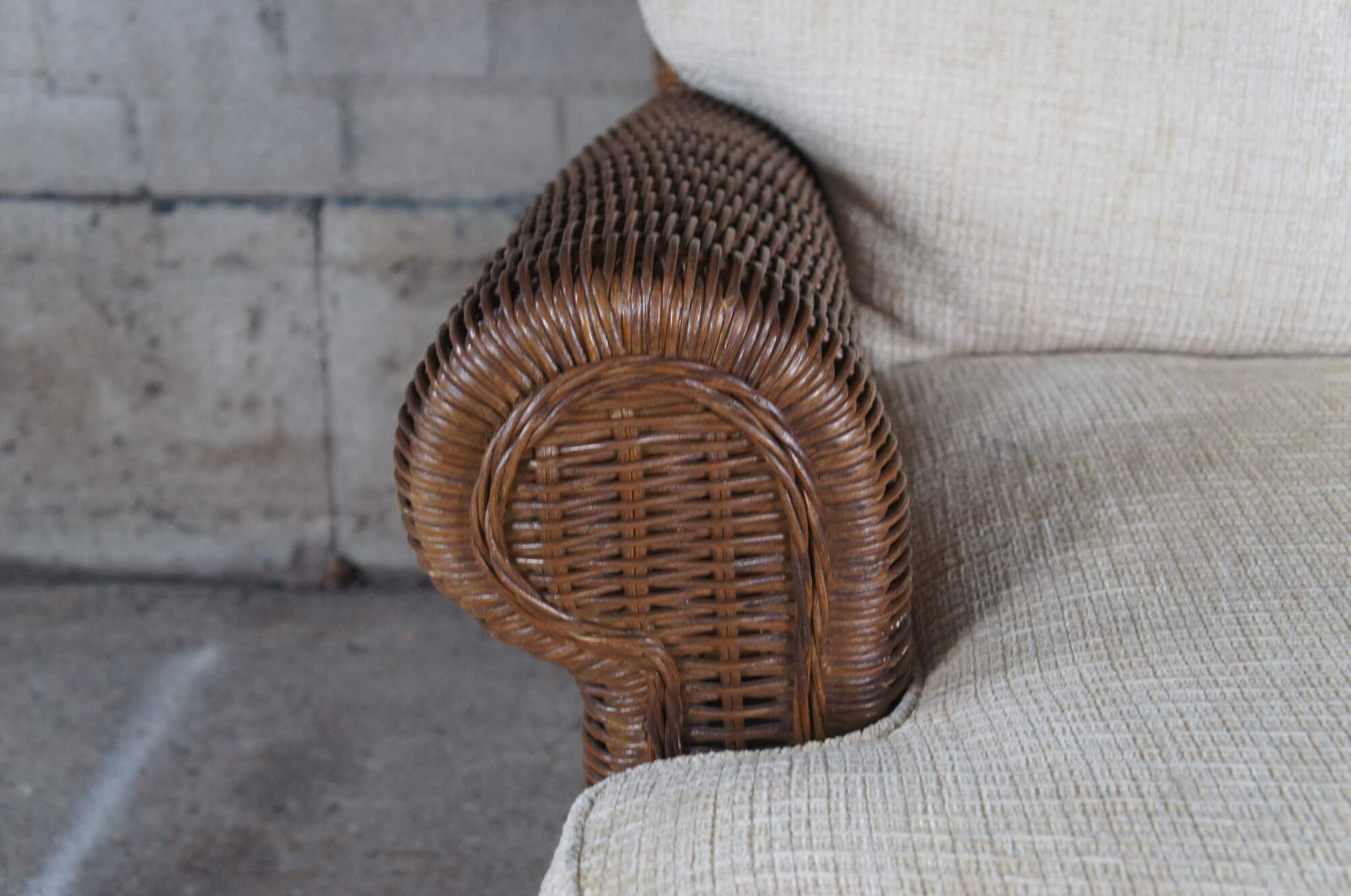 Good Vintage Condition; a few breaks in the rattan along one arm.