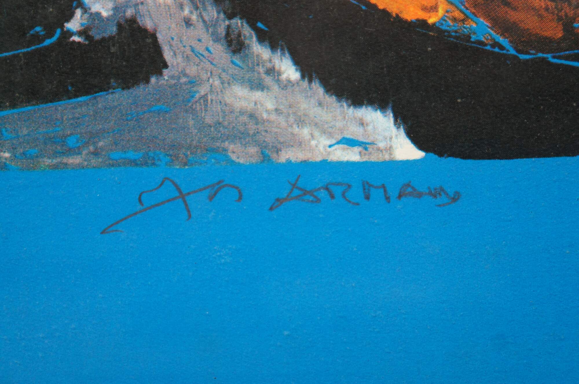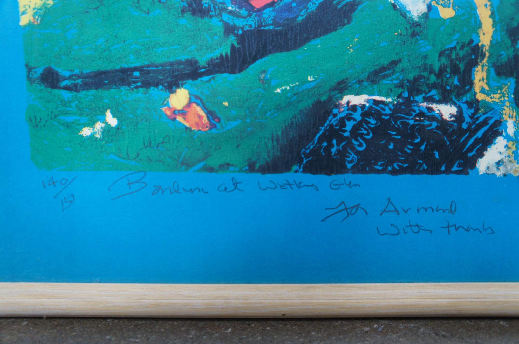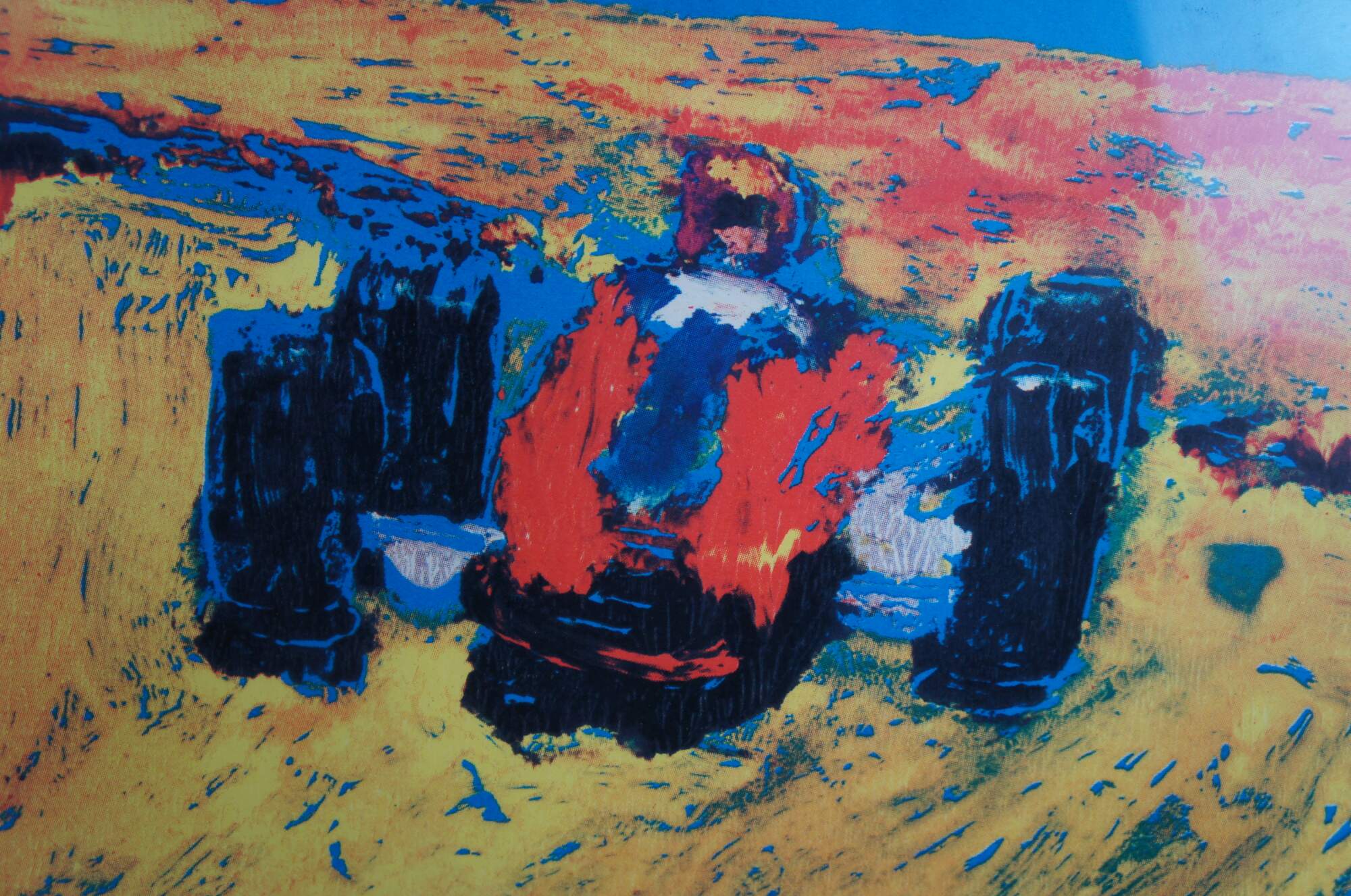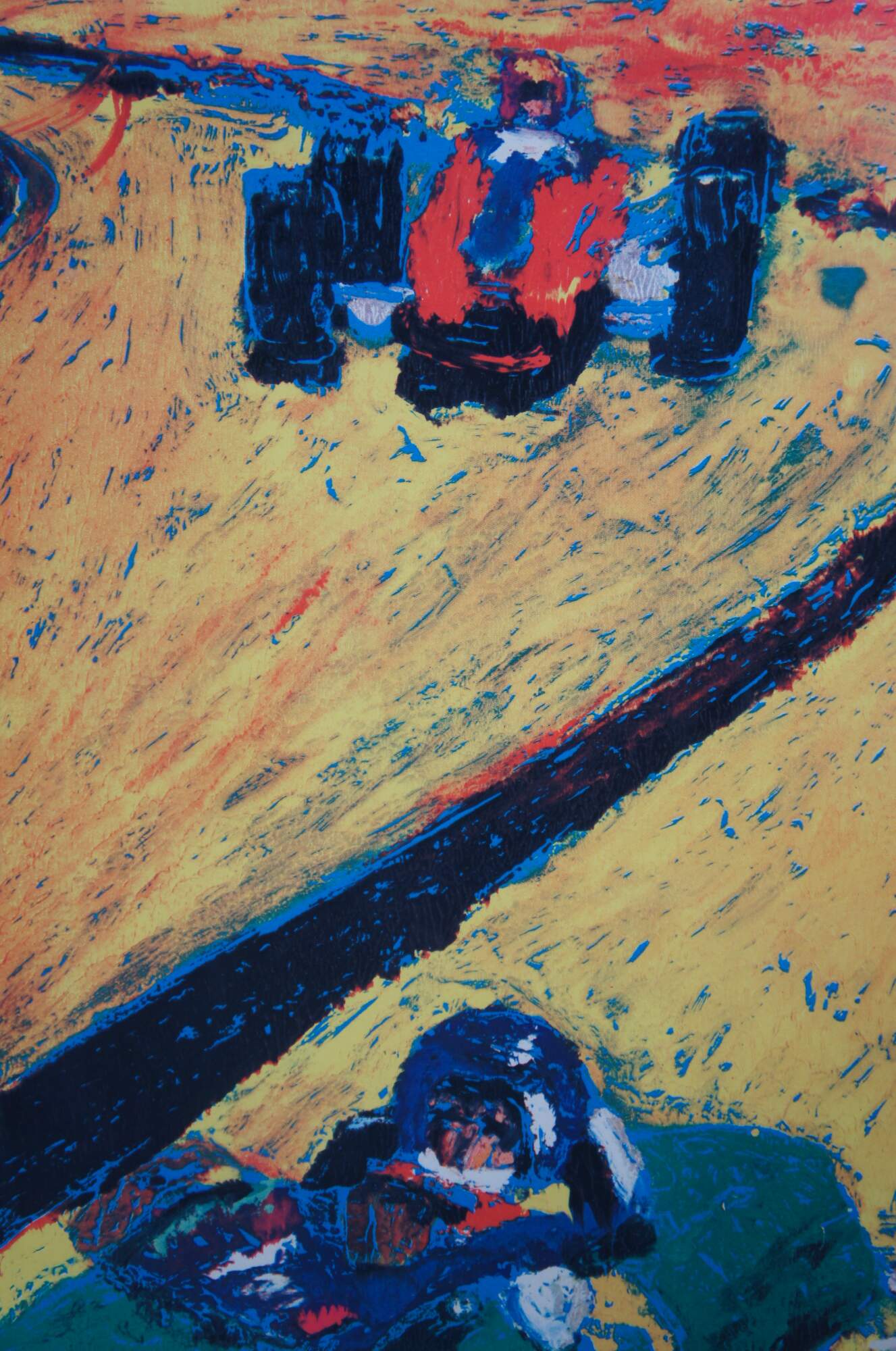 Two vintage Joe Wilder racecar prints. One signed 1971, to Armand; the other signed 140/150, Bonlini at Watkin Glen (Watkins Glen Grand Prix 1971), for Armand with Thanks.