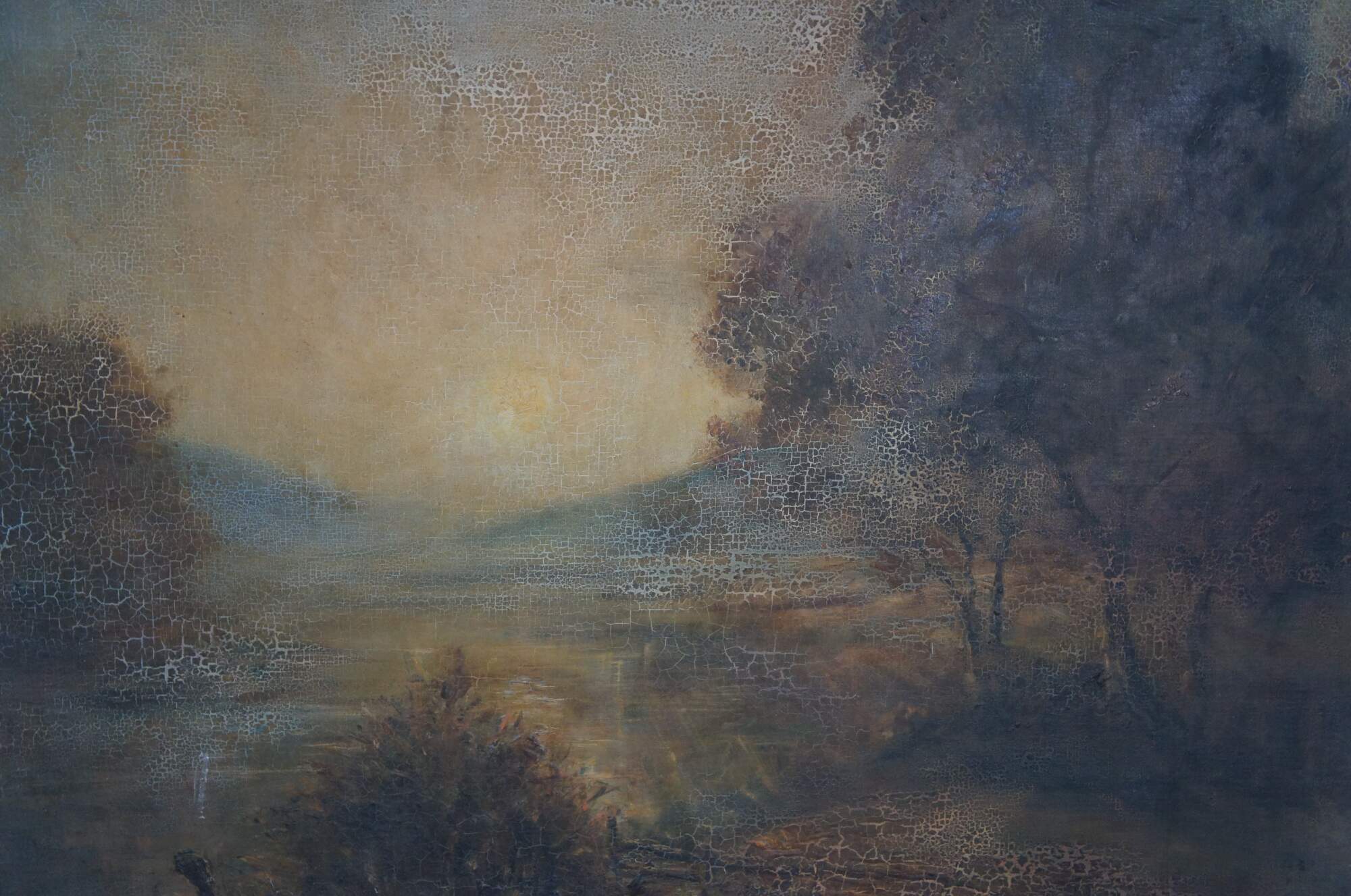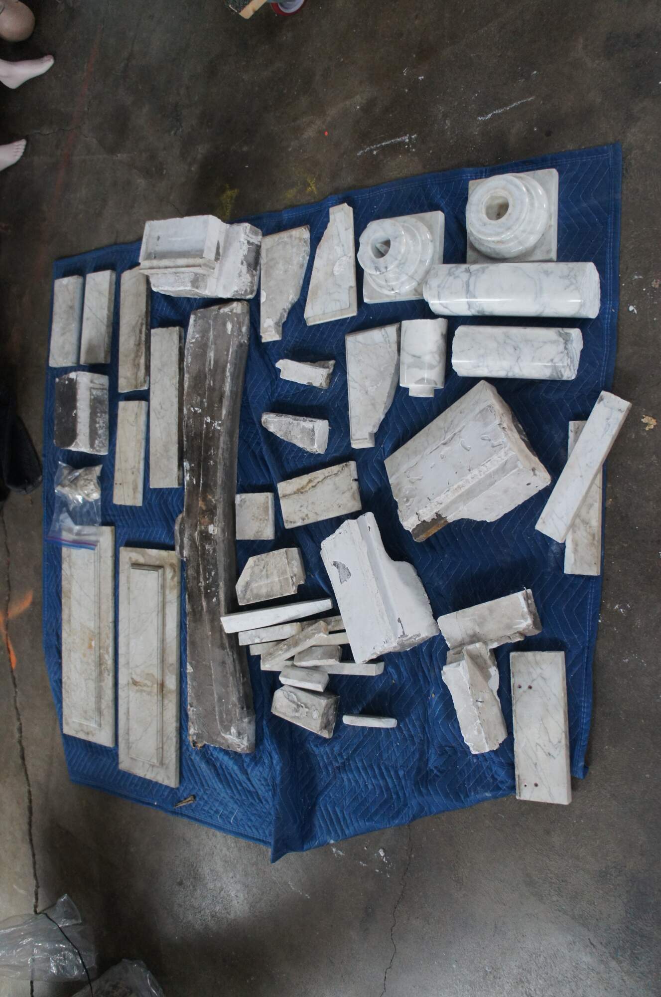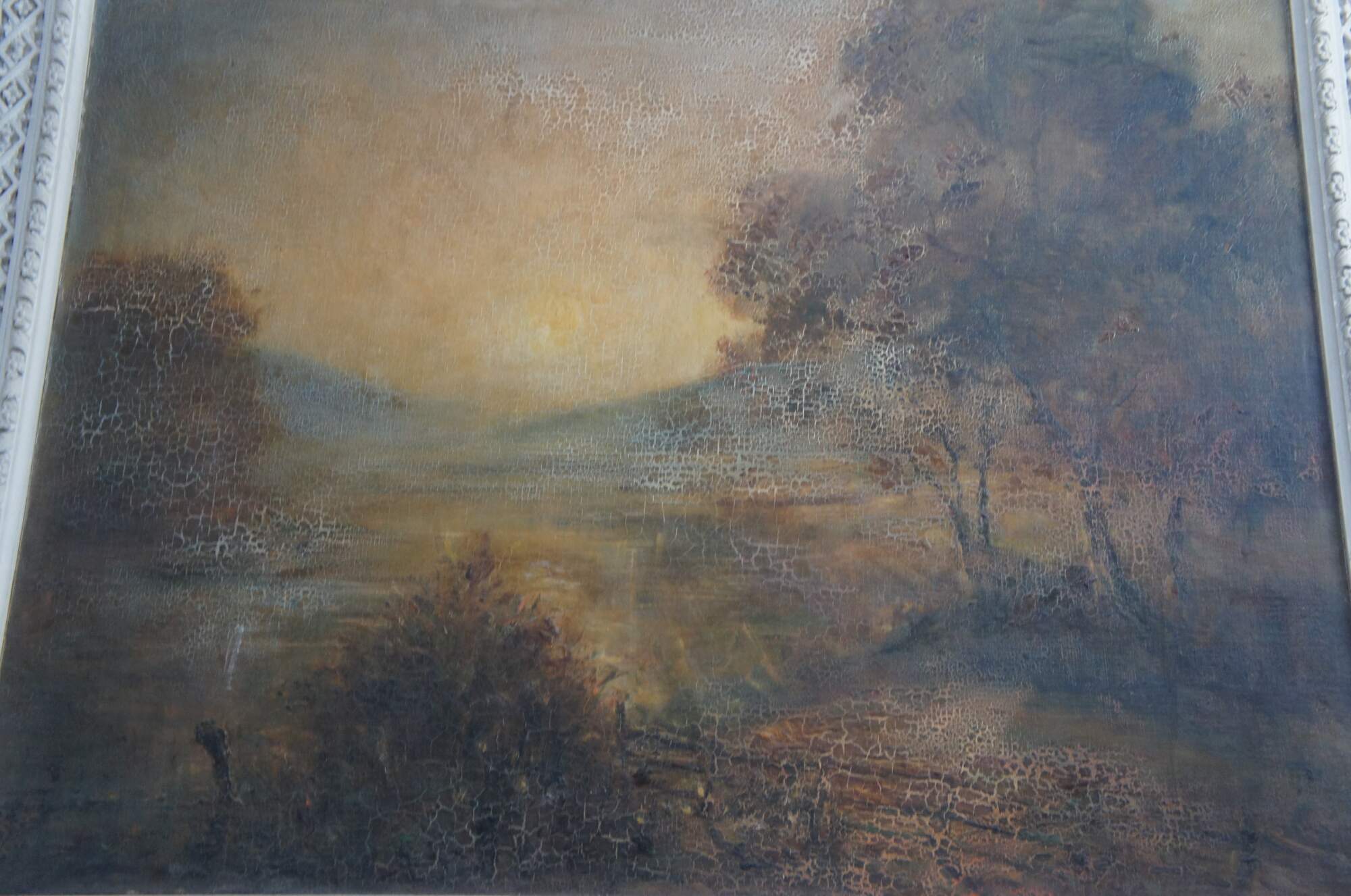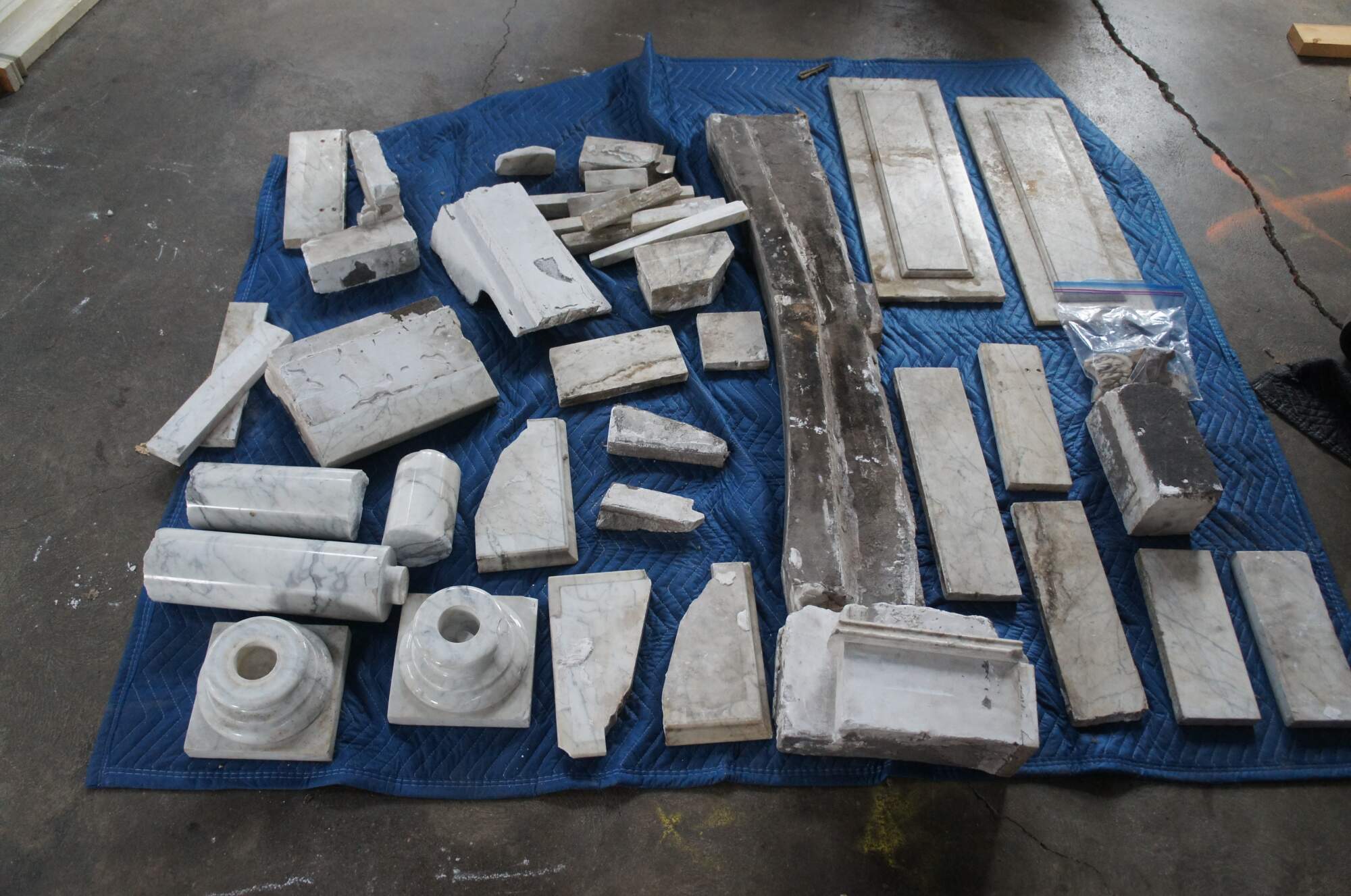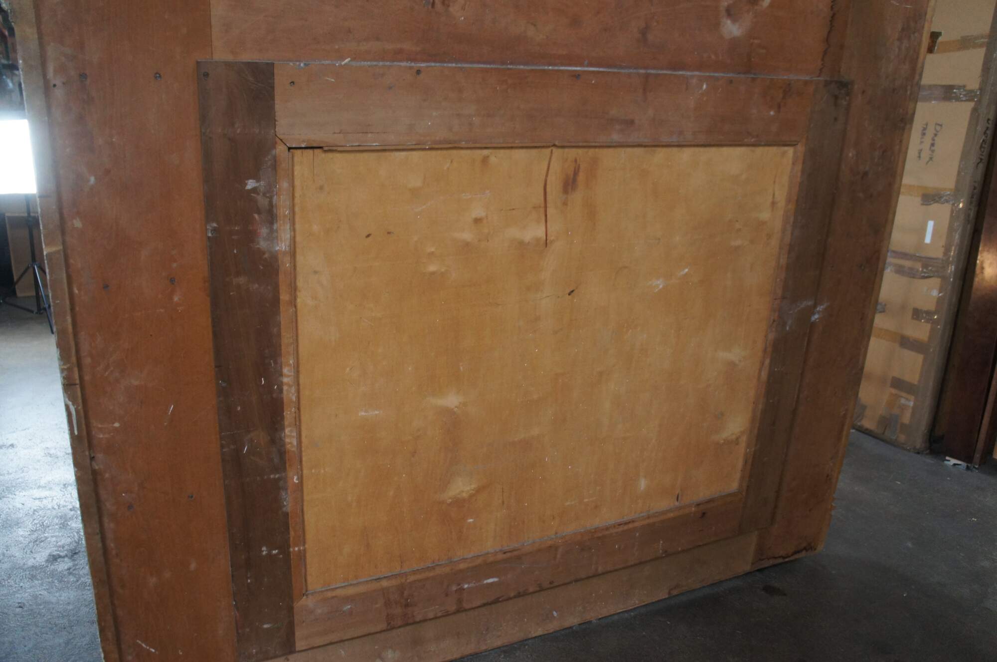 Wear and distressing commensurate with age and use, damage to carved topper, missing pieces of molding, broken marble, Will require fabricating some new pieces, heavy crazing to oil painting. Assembly required