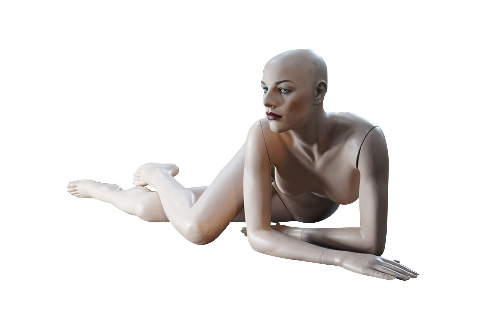 Vintage Decter Vaudeville female display mannequin fashion doll in a sexy reclining position.