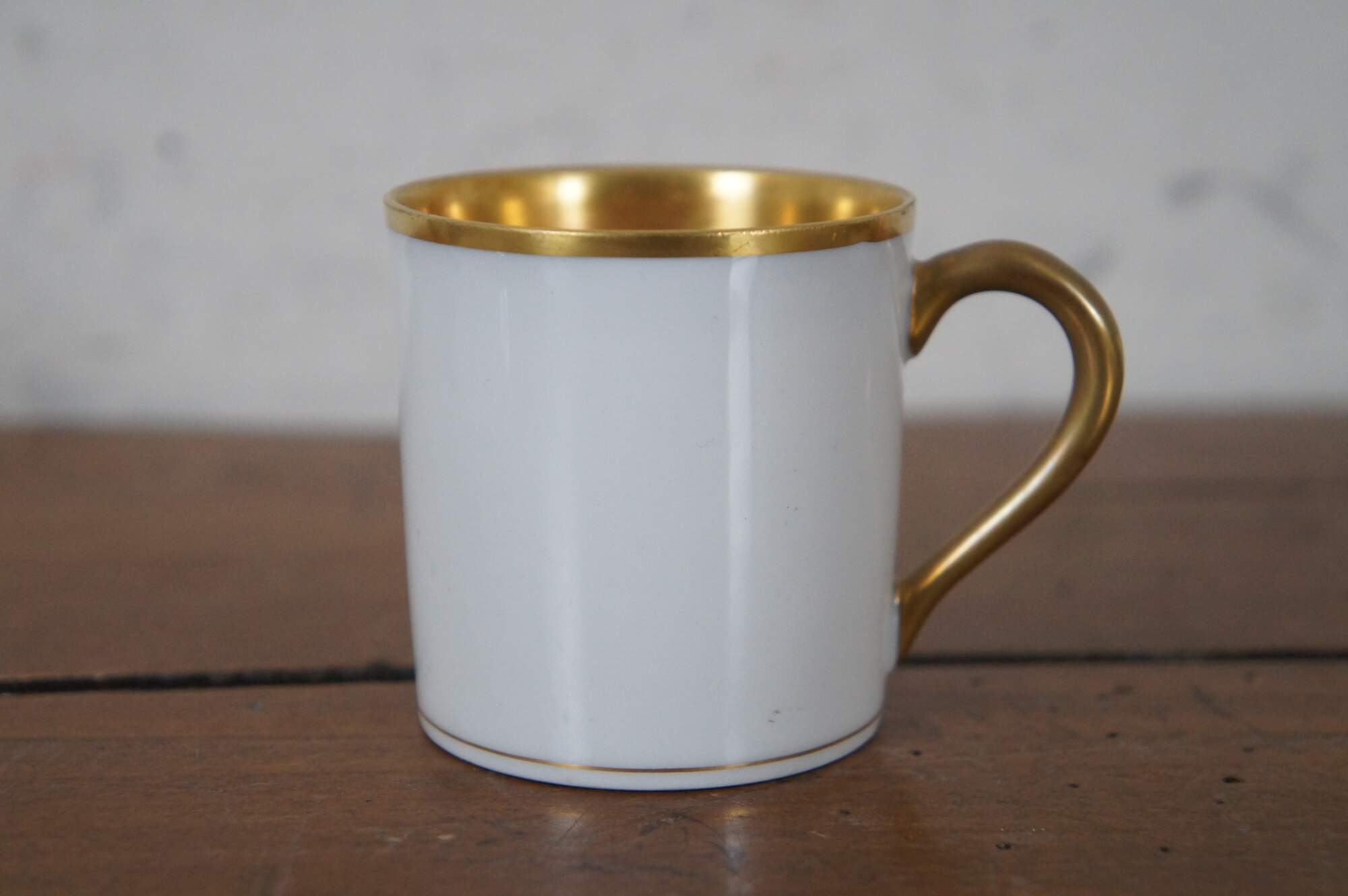 Antique French Limoges demitasse teacup and saucer featuring gold trim. Made in France.