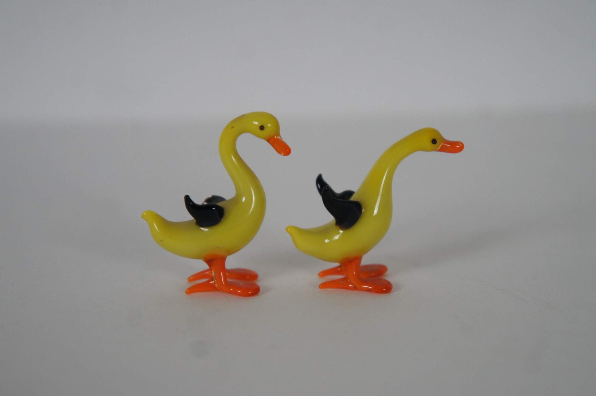 Vintage lot of twelve farmhouse ornament / figurine animals, hand blown in various colors and designs. Includes Rooster, Chicken, Geese / Goose, Rabbit, Seal / Sea Lion, Dove, Ducks, and Elephant.