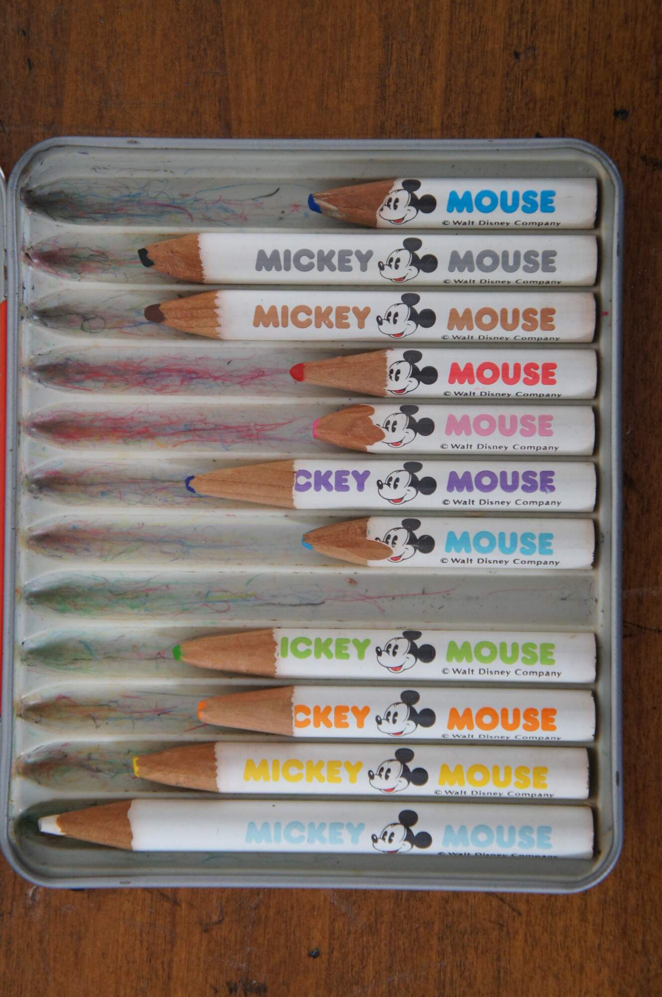 Vintage Mickey Mouse Mitsubishi Japan colored pencils in tin case / box. Walt Disney Company. No 880.