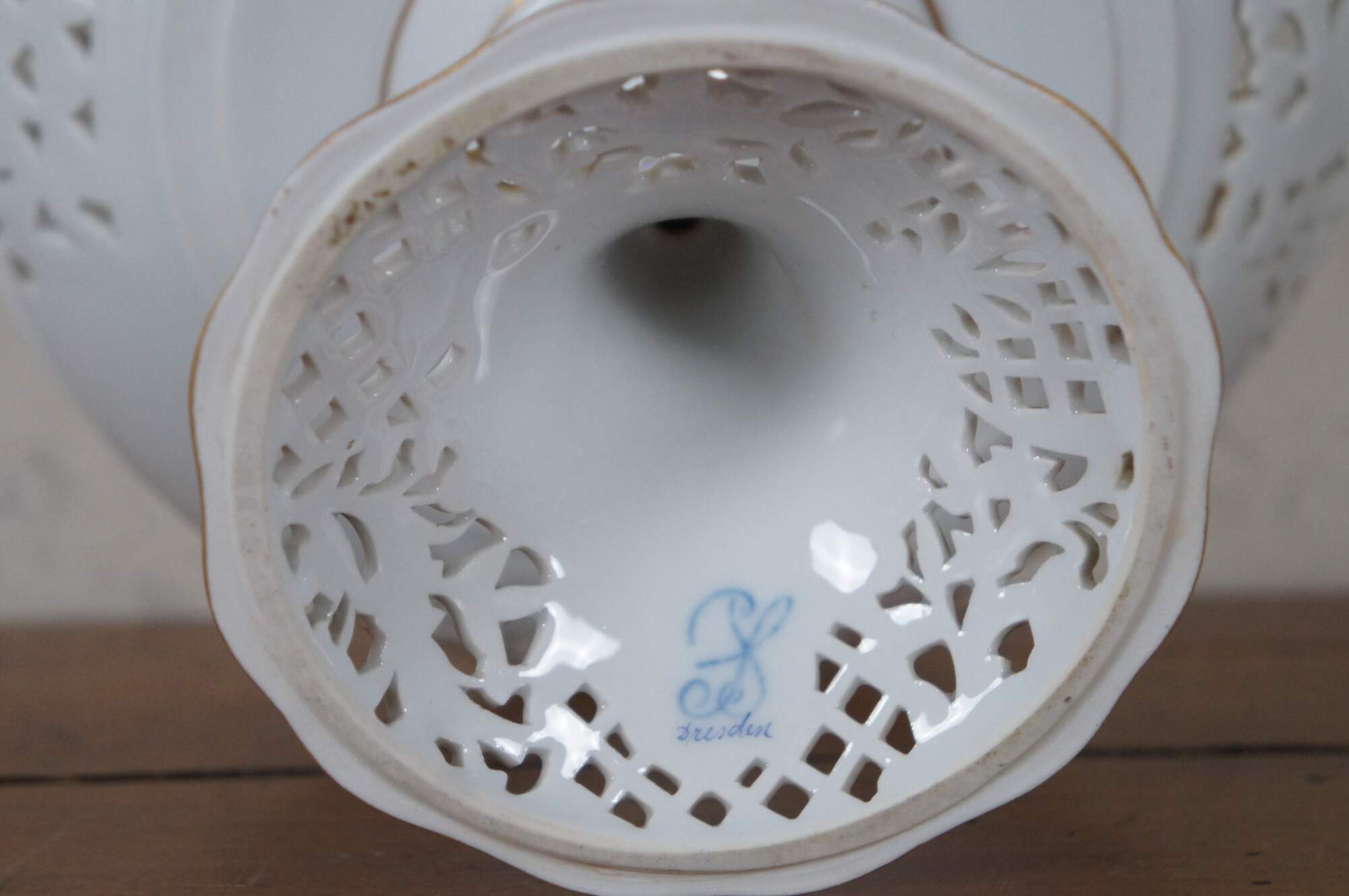 The Sächsische Porzellan-Manufaktur Dresden GmbH (Saxon Porcelain Manufactory in Dresden Ltd), generally known in English as Dresden Porcelain, is a German company for the production of decorative and luxury porcelain. Founded in1872, it is located in Potschappel, a suburb of the town of Freital in the Sächsische Schweiz-Osterzgebirge district about 8 km (5 mi) southwest of Dresden, the capital of Saxony. Dresden Porcelain introduced its blue "SP Dresden" trademark in 1902.