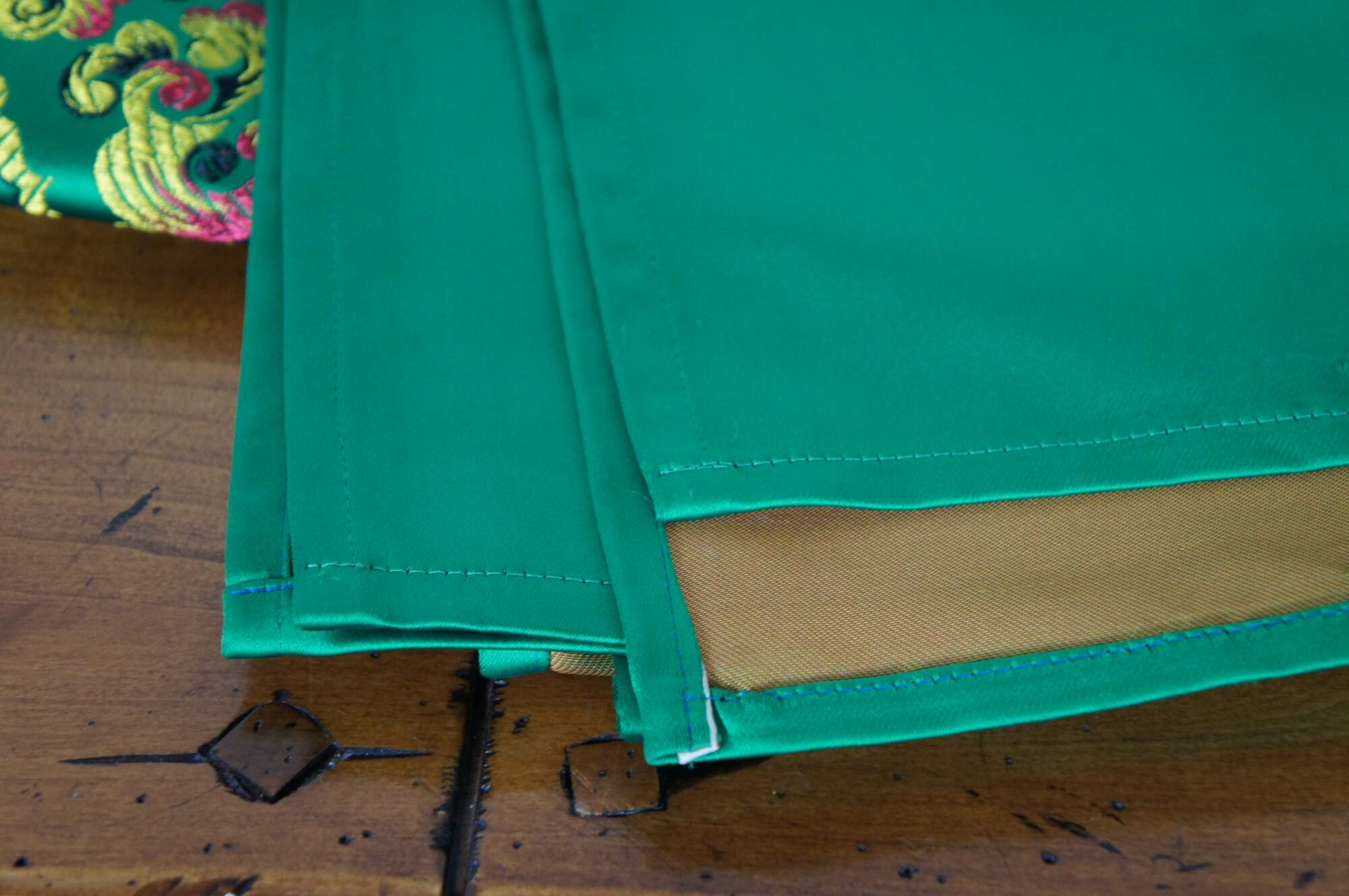 Very Good - Green hemmed for use as table cloth; purple raw edge / sight fading at some creases