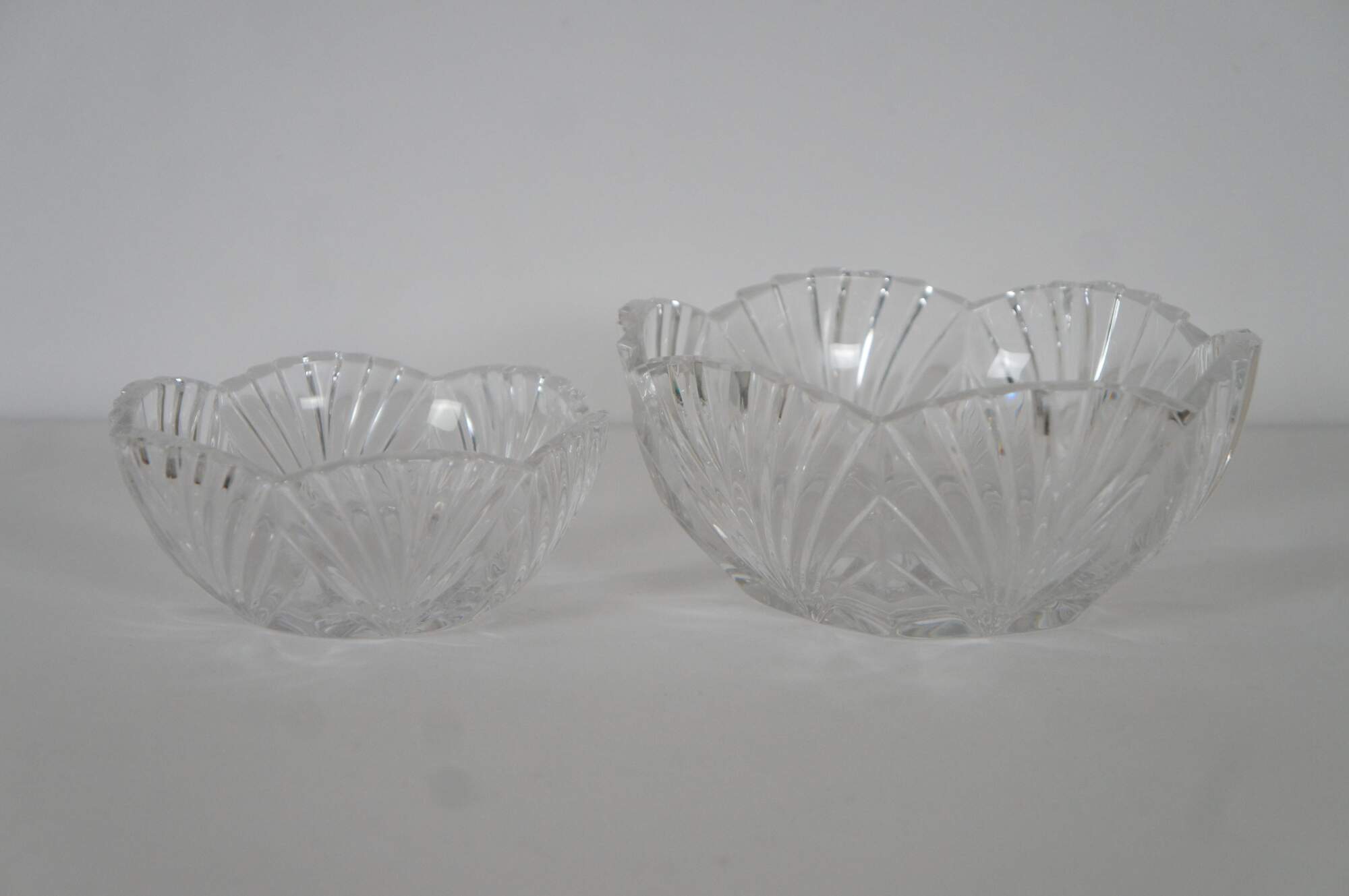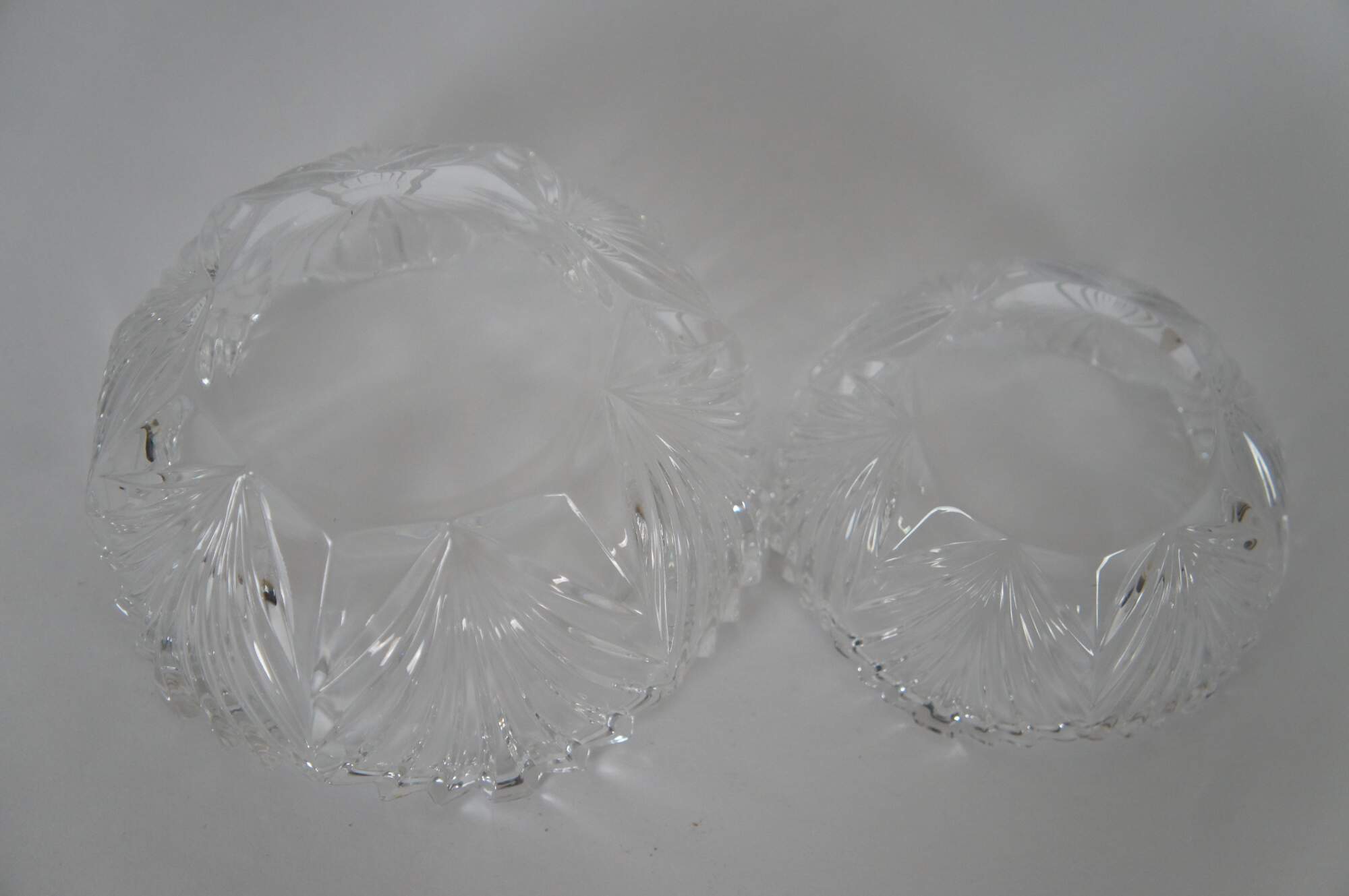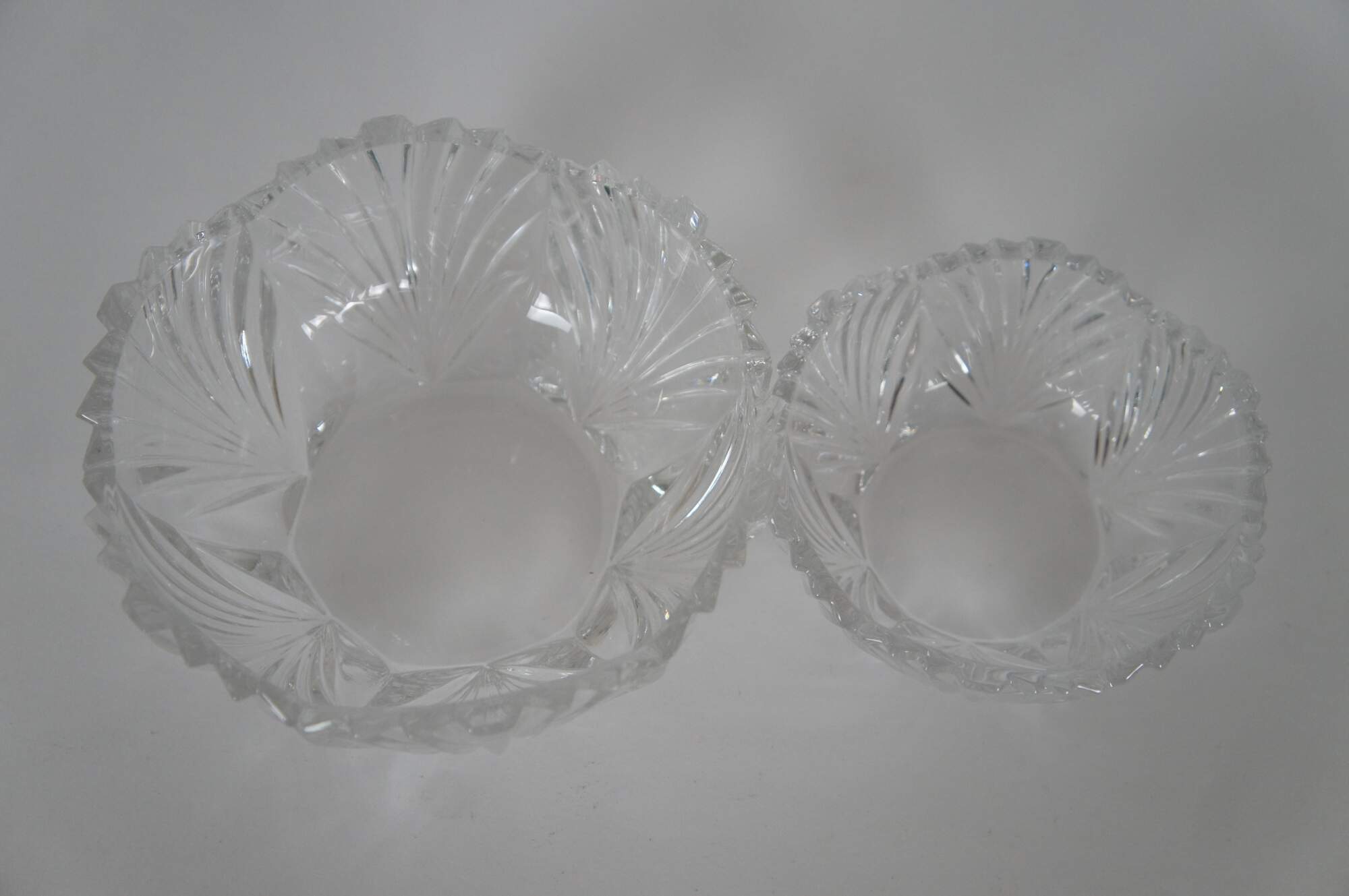 A pair of vintage Noritake Crystal bowls. Features Art Deco styling with cut fan patterns. Made in West Germany.