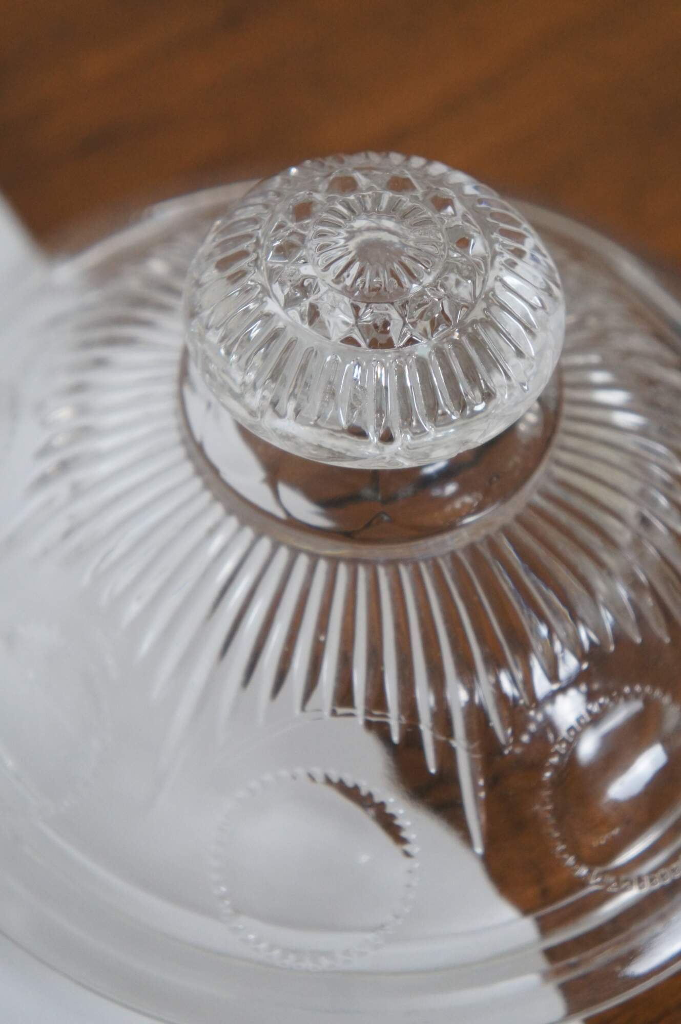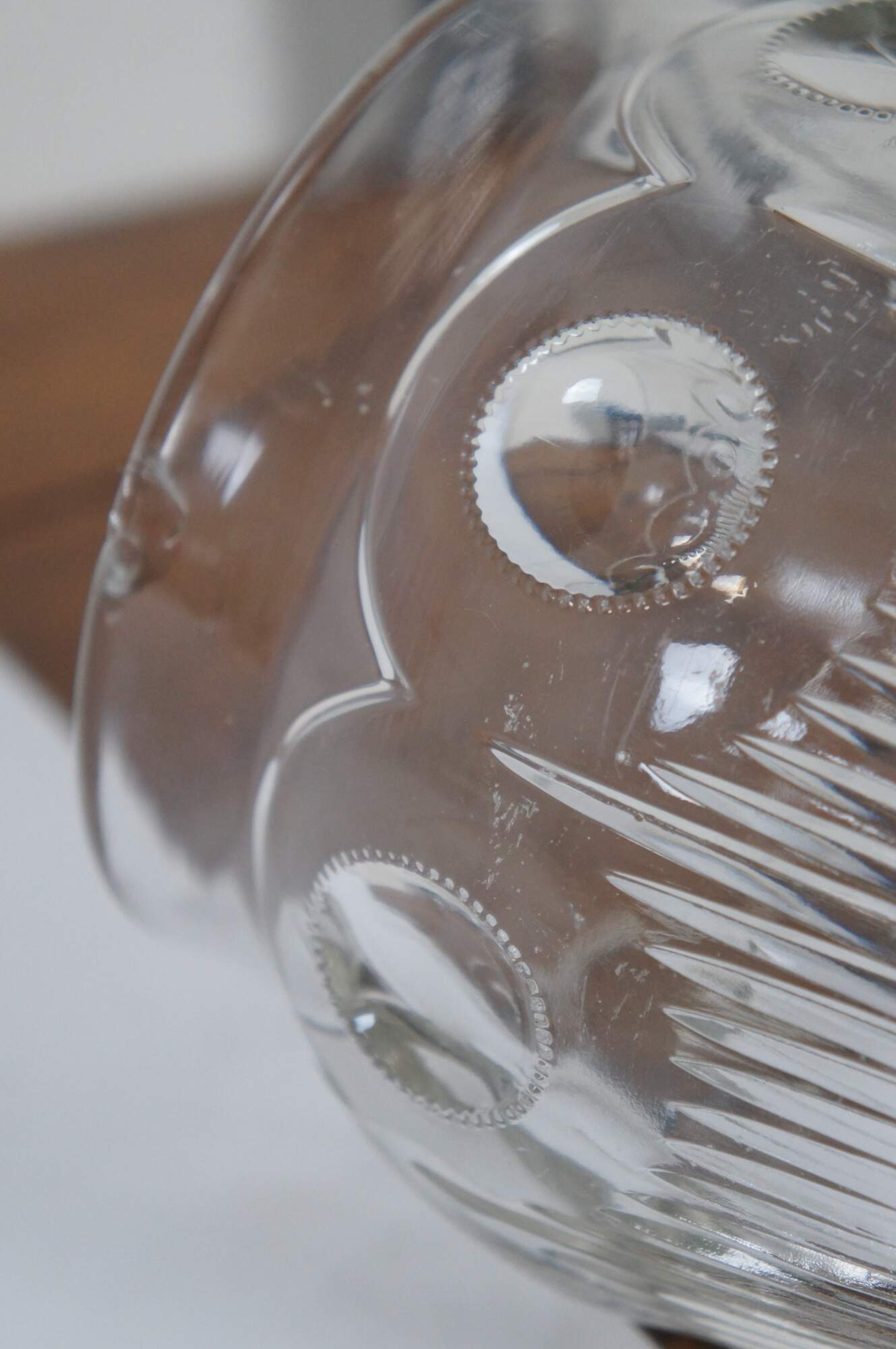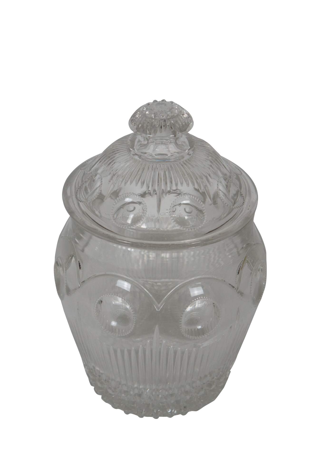 Art Deco era lidded glass jar with fluting and thumbprint pattern. Features matching lid.