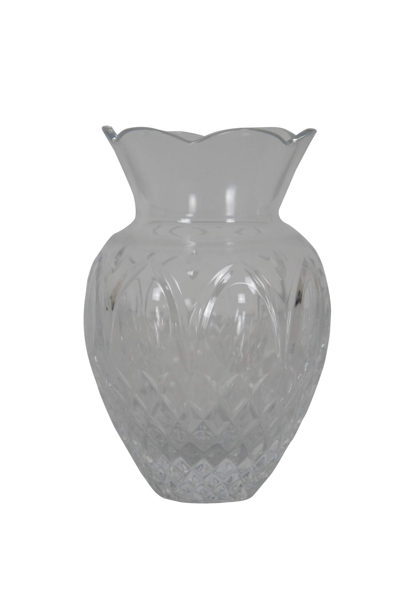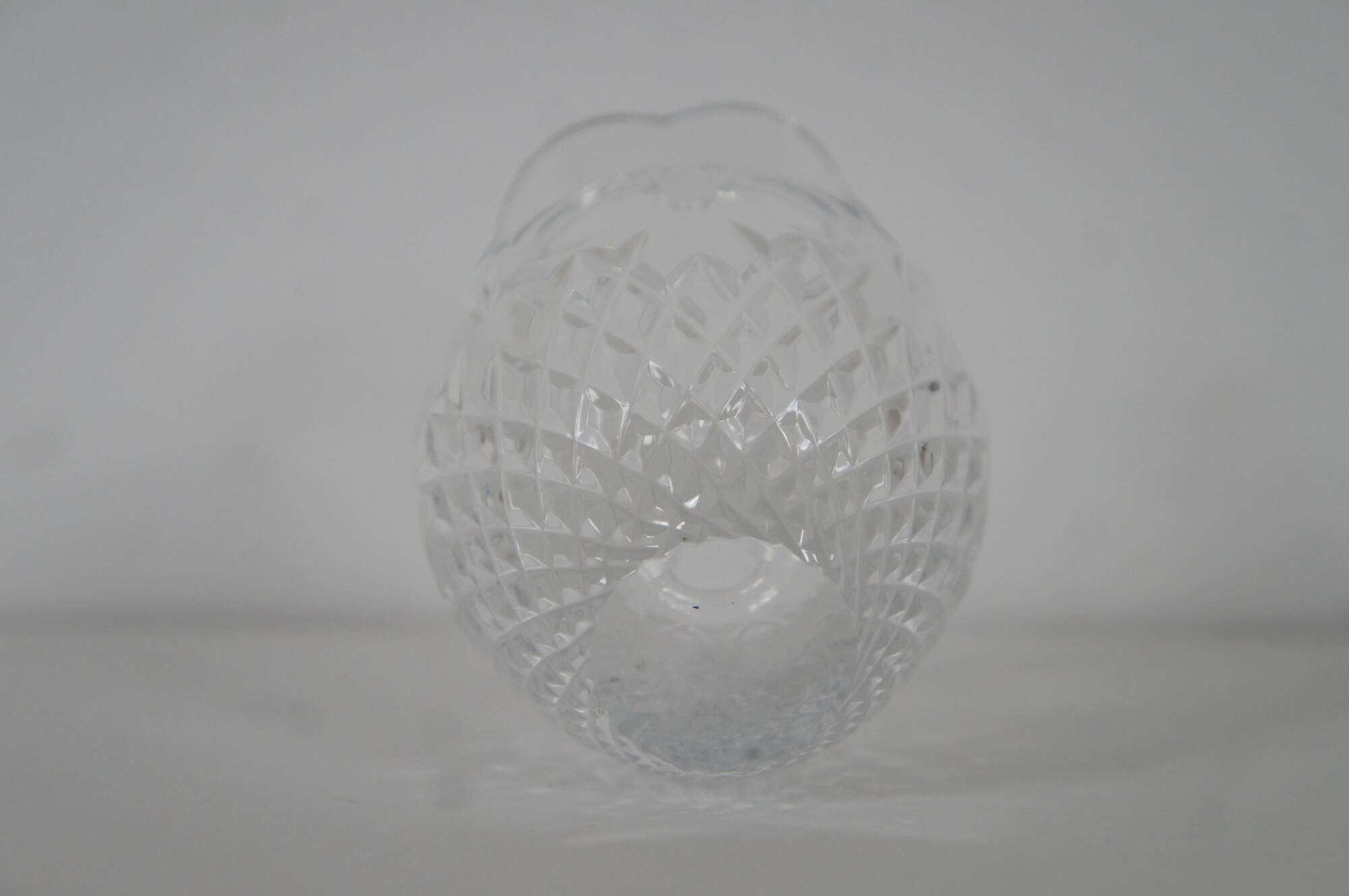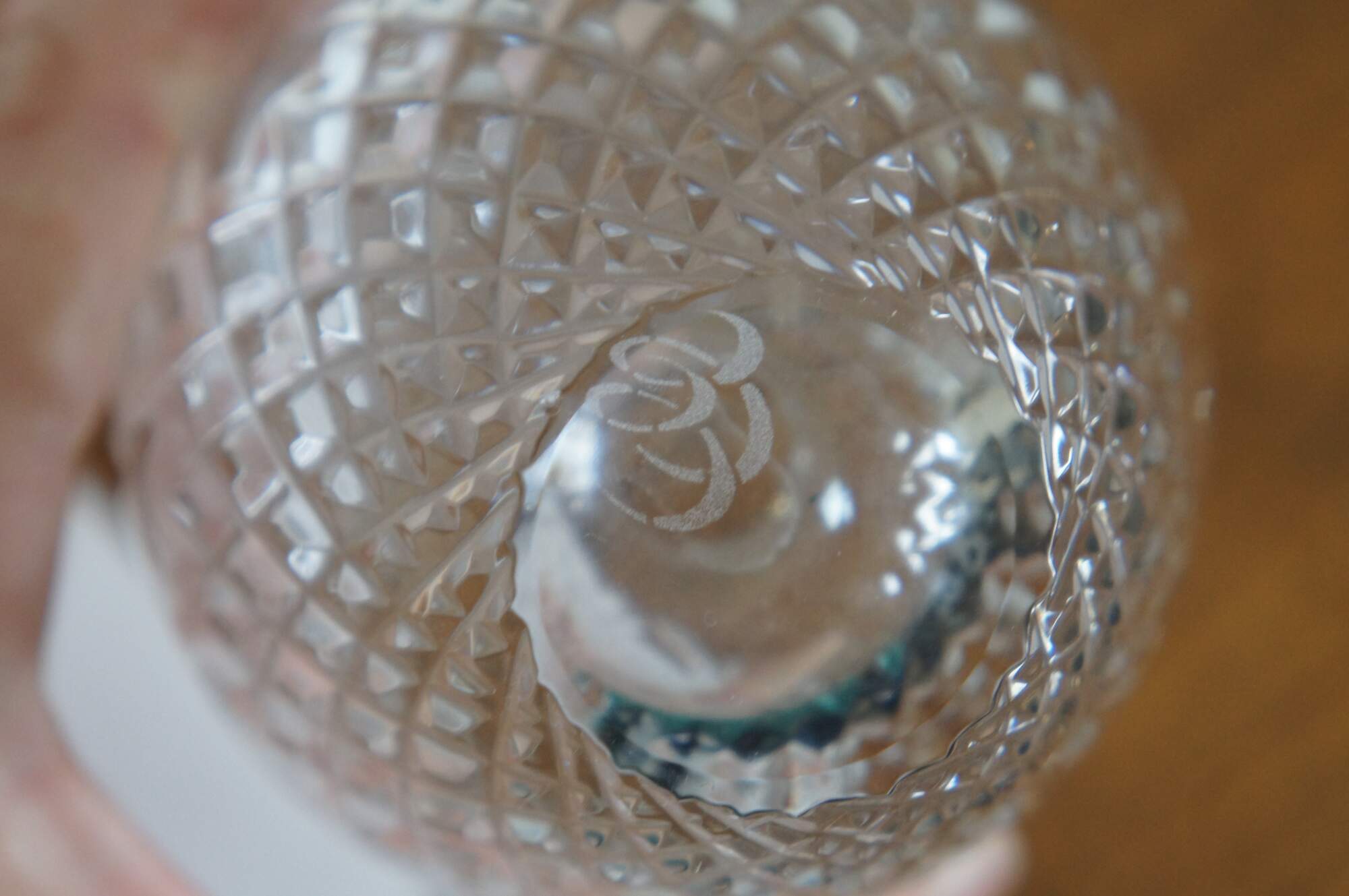 Vintage cut crystl signed bud vase. Features a diamond gridded design. Bottom is signed a double swirl mark.