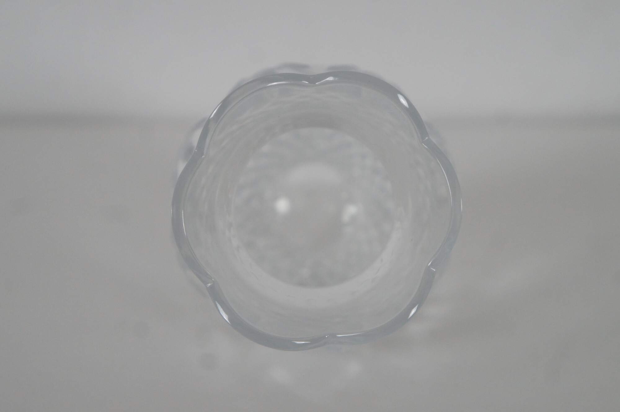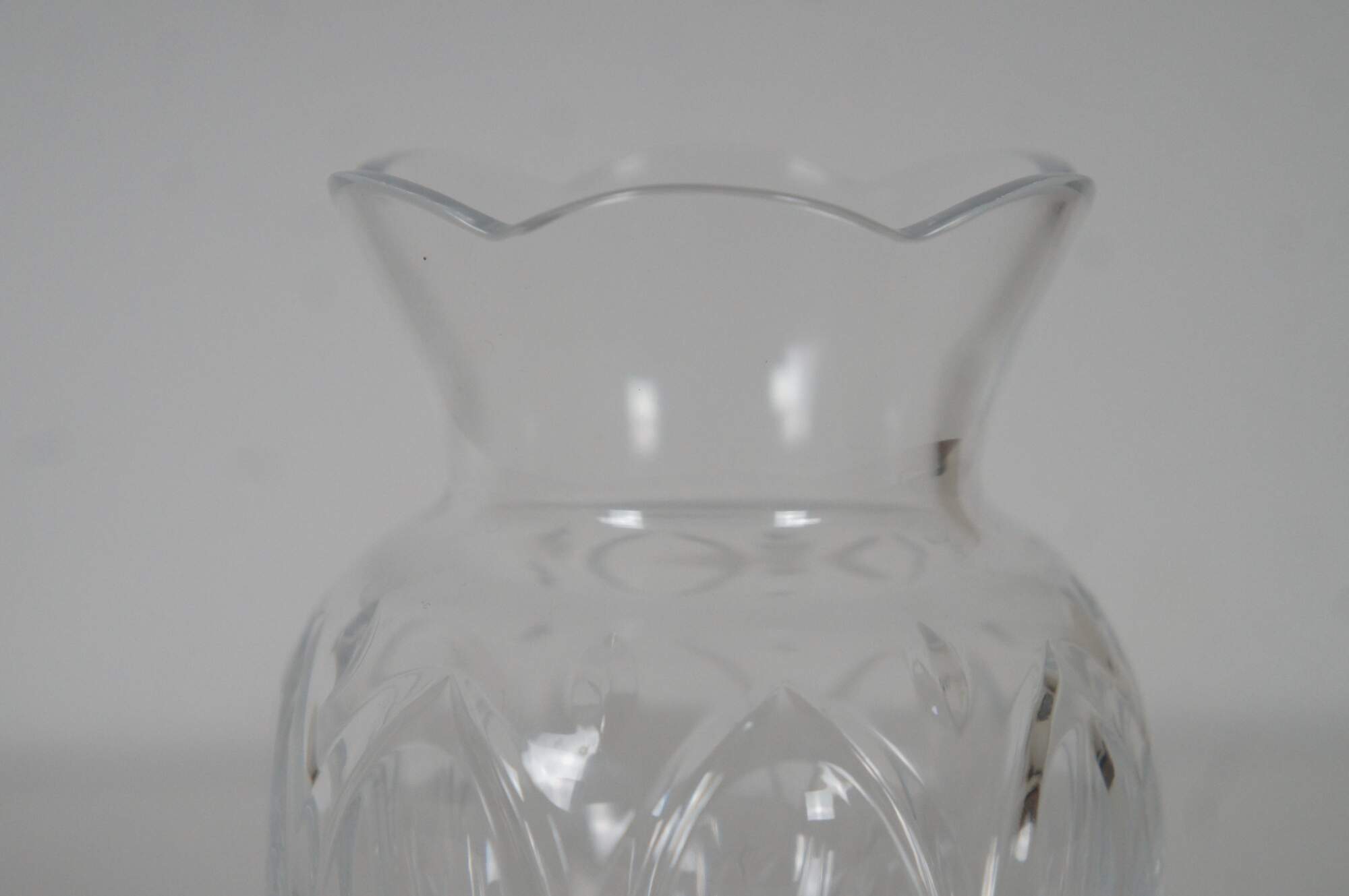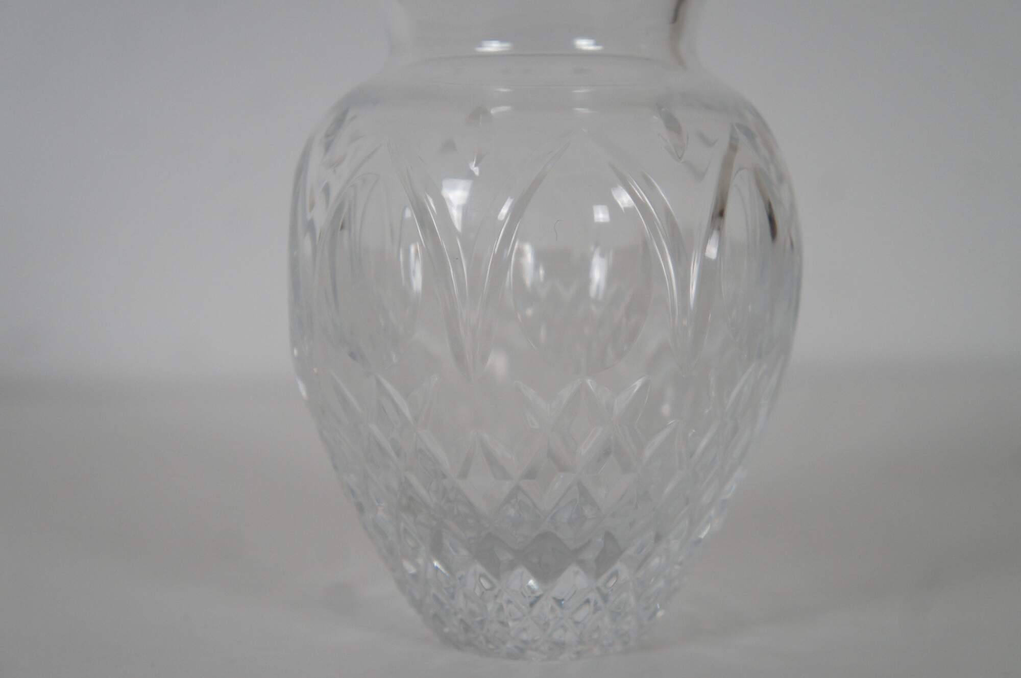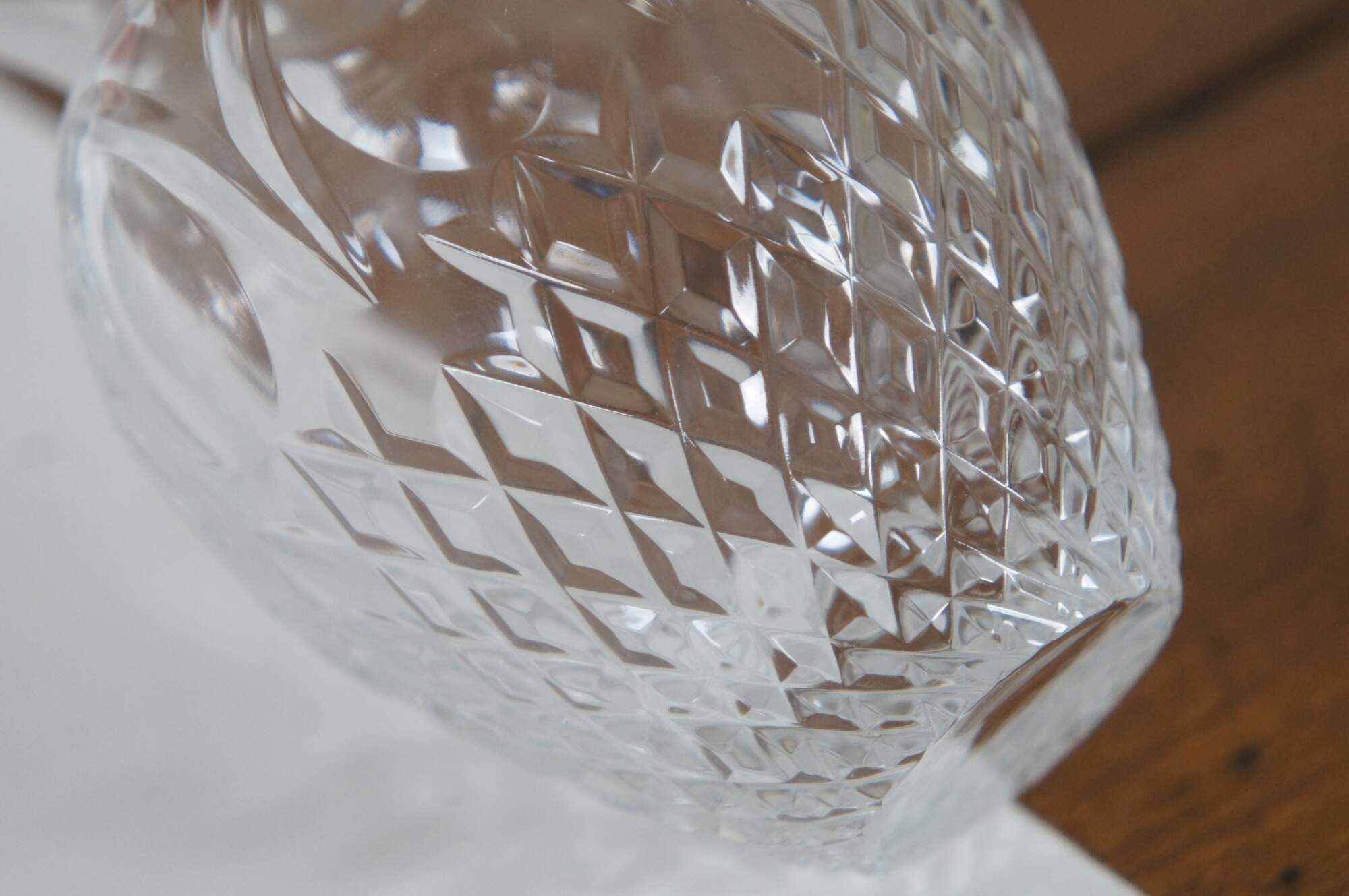 Vintage cut crystl signed bud vase. Features a diamond gridded design. Bottom is signed a double swirl mark.