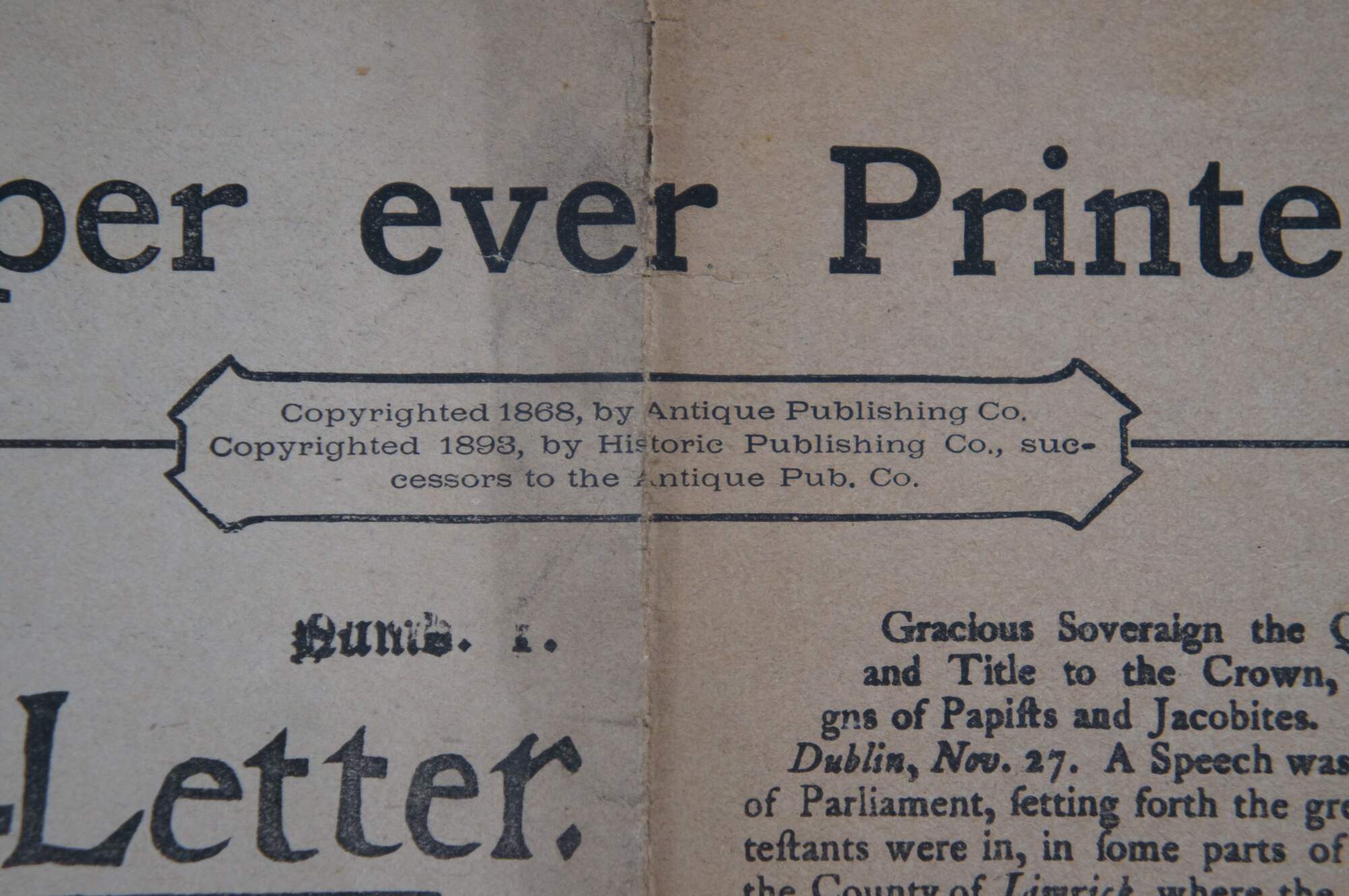 Facsimilie of the First Newspaper ever Printed in America – Copyrighted 1893 by Historic Publishing Company, successors to the Antique Publishing Company