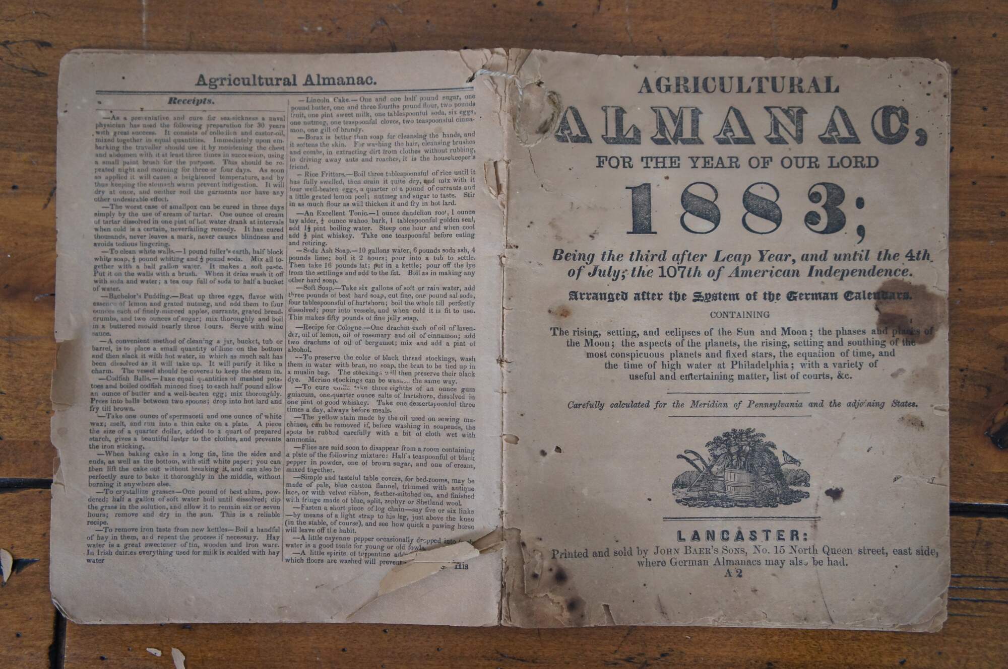 Agricultural Almanac, for the Year of Our Lord 1883 – Printed and Sold by John Baer’s Sons, Lancaster