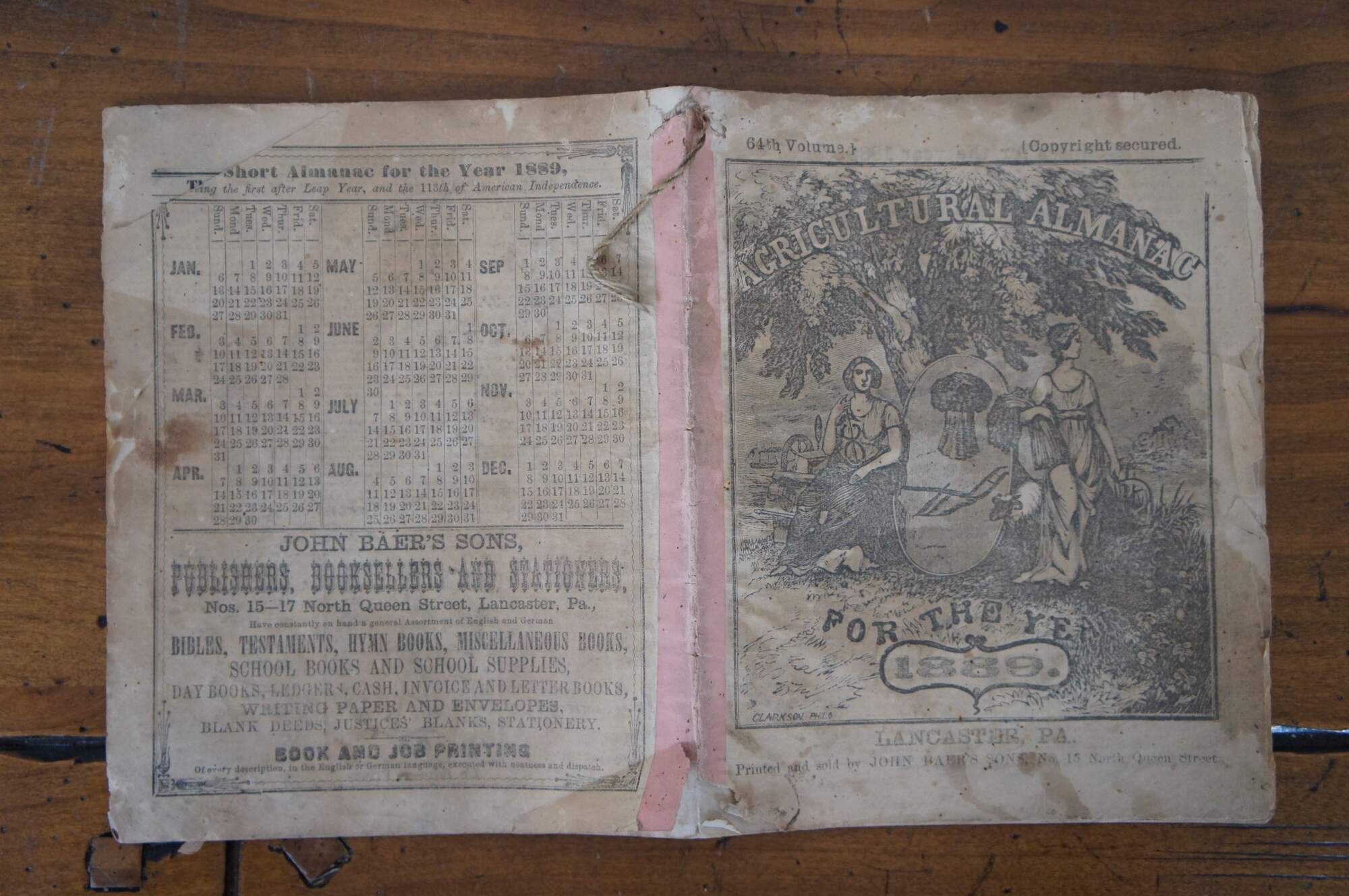 Agricultural Almanac for the Year 1889 – Printed and Sold by John Baer’s Sons, Lancaster
