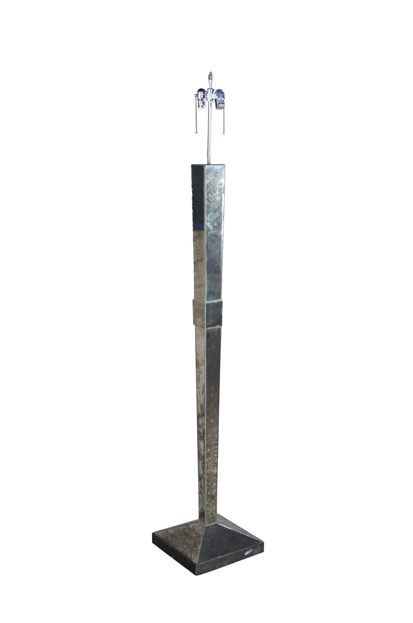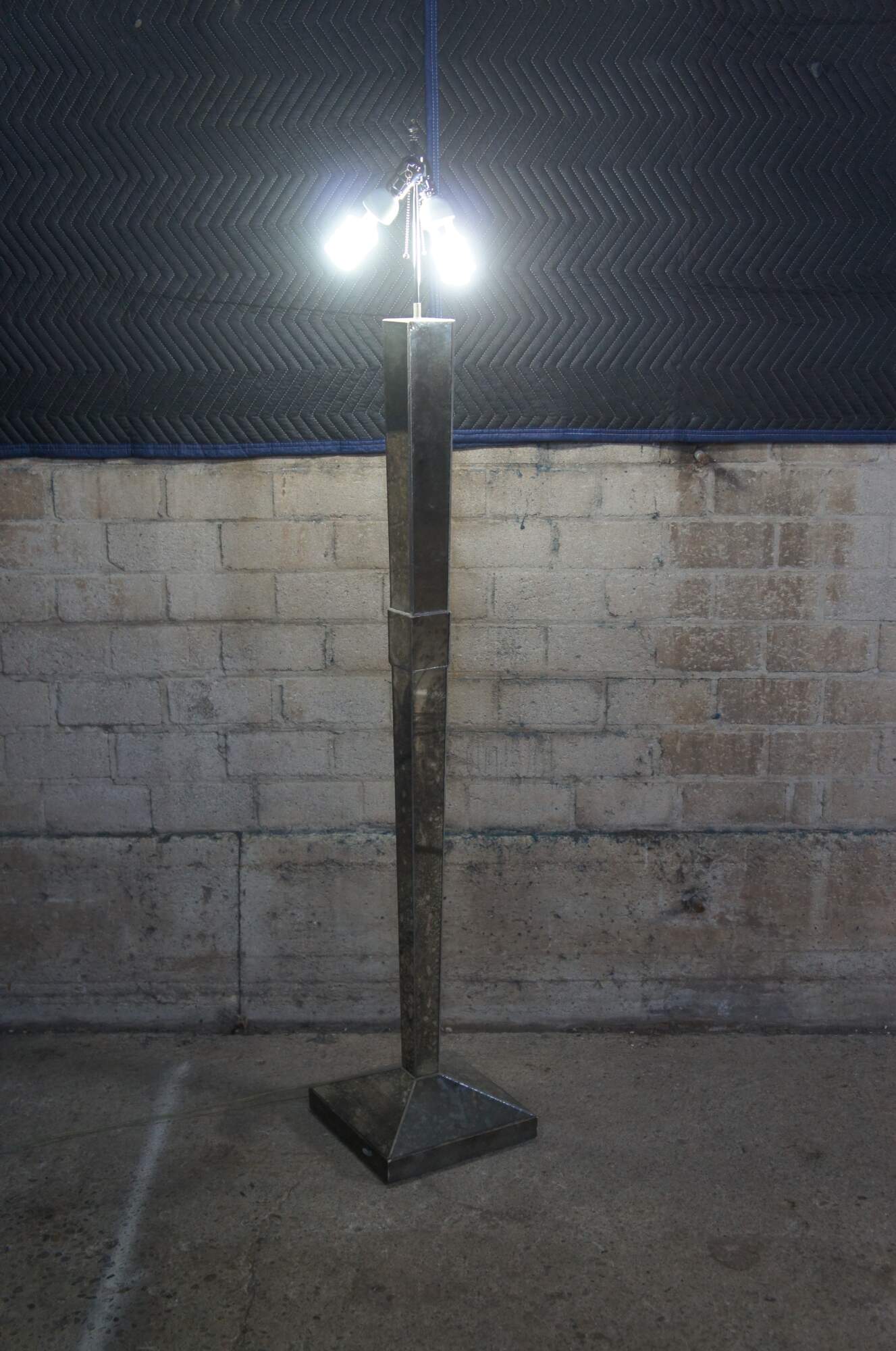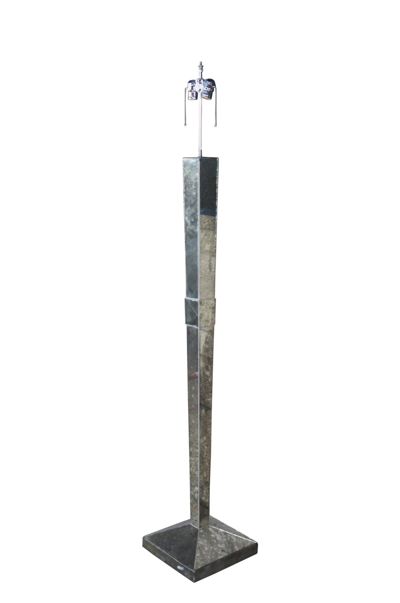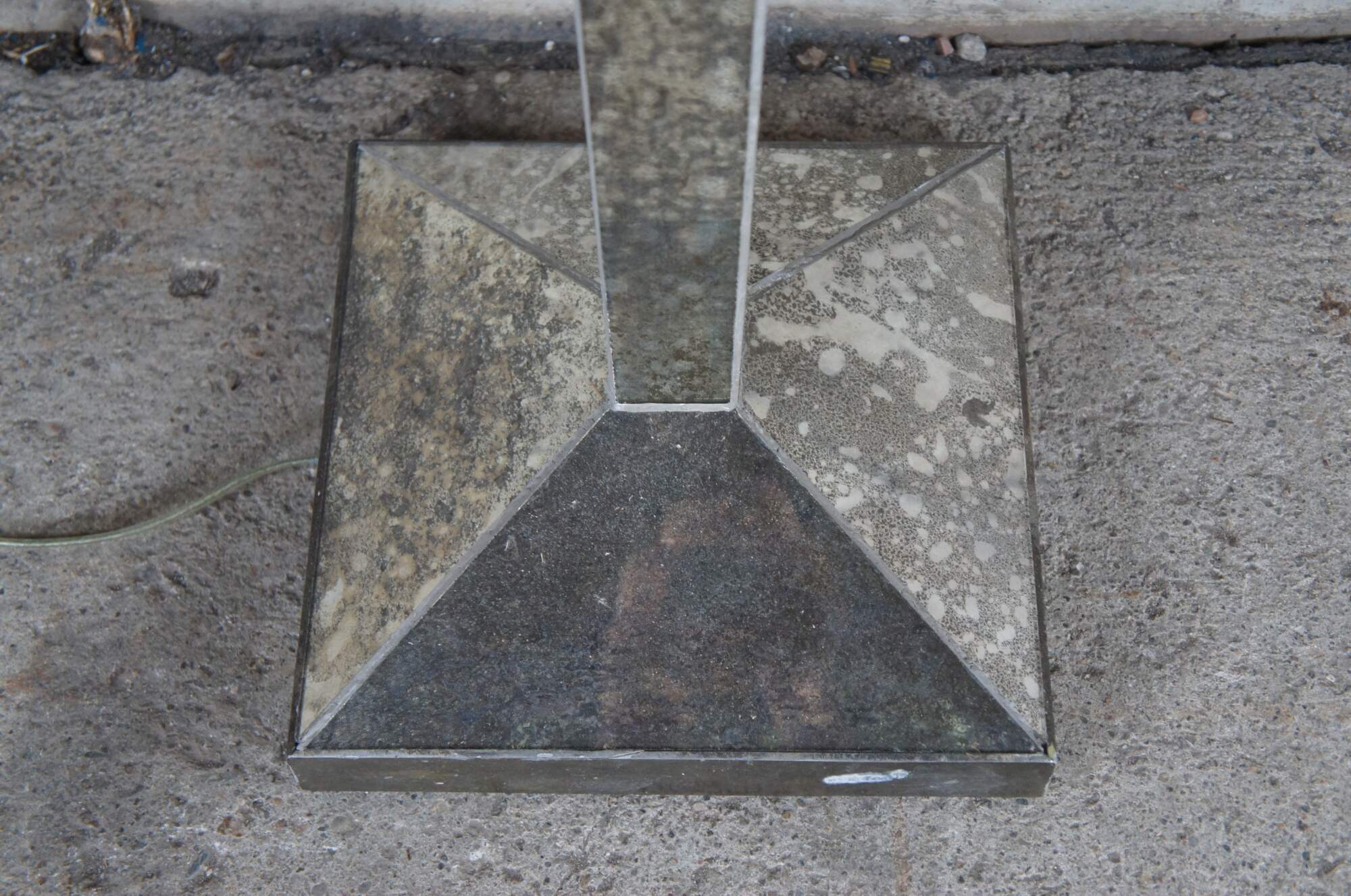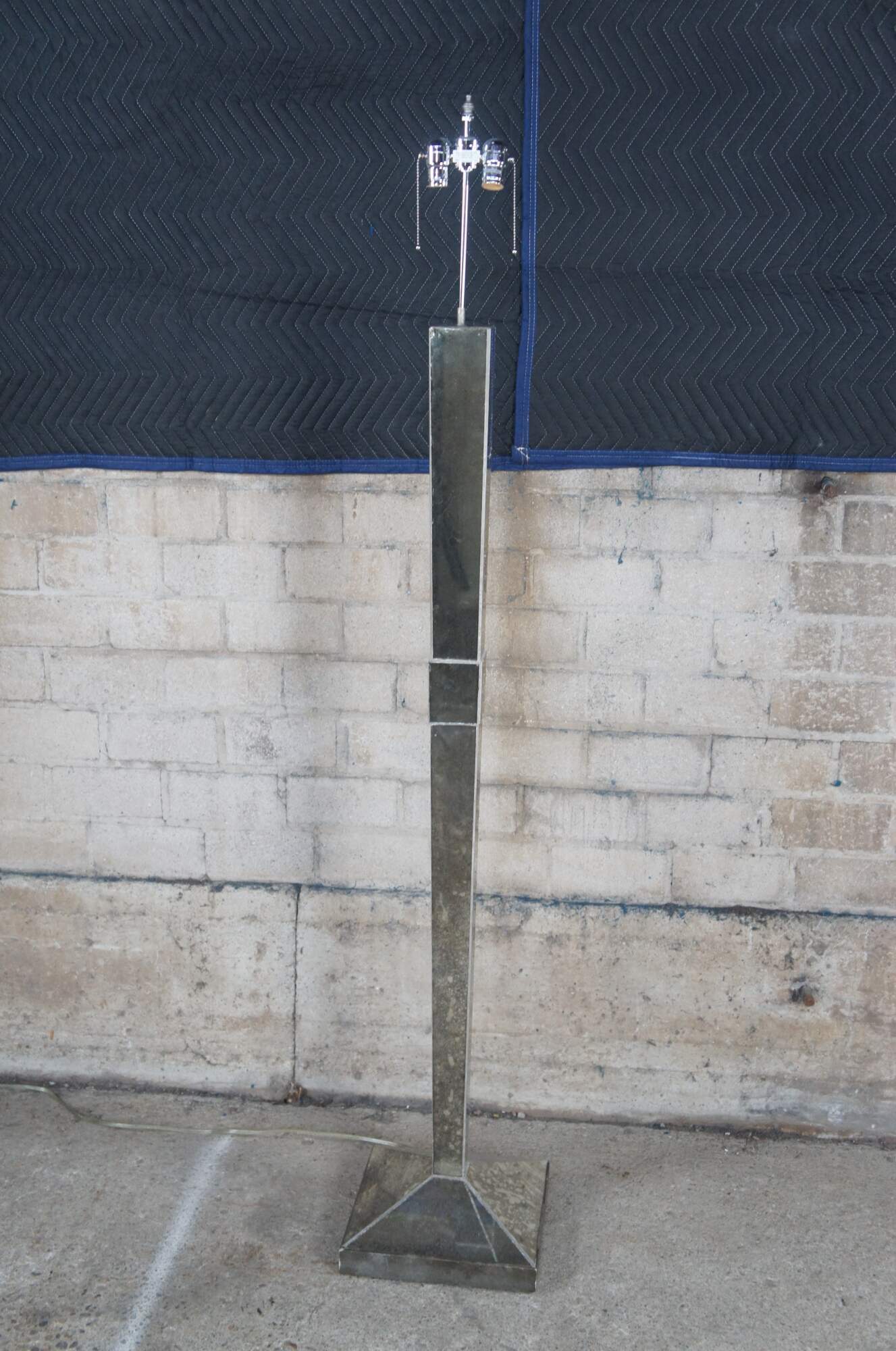 Vintage Venetian style mirrored floor lamp featuring tapered design with antiqued panels and two pull chain lights.