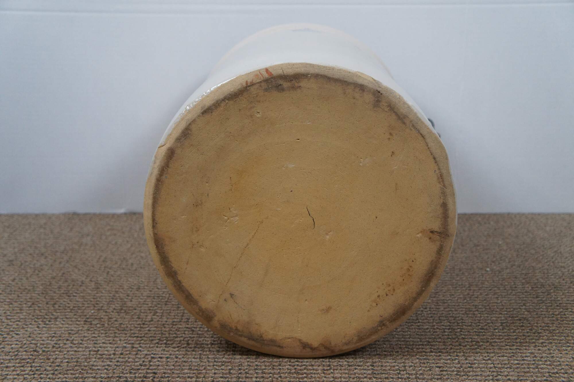 Antique Robinson Ransbottom blue crown eight gallon stoneware pottery crock pot with metal and wood handles.