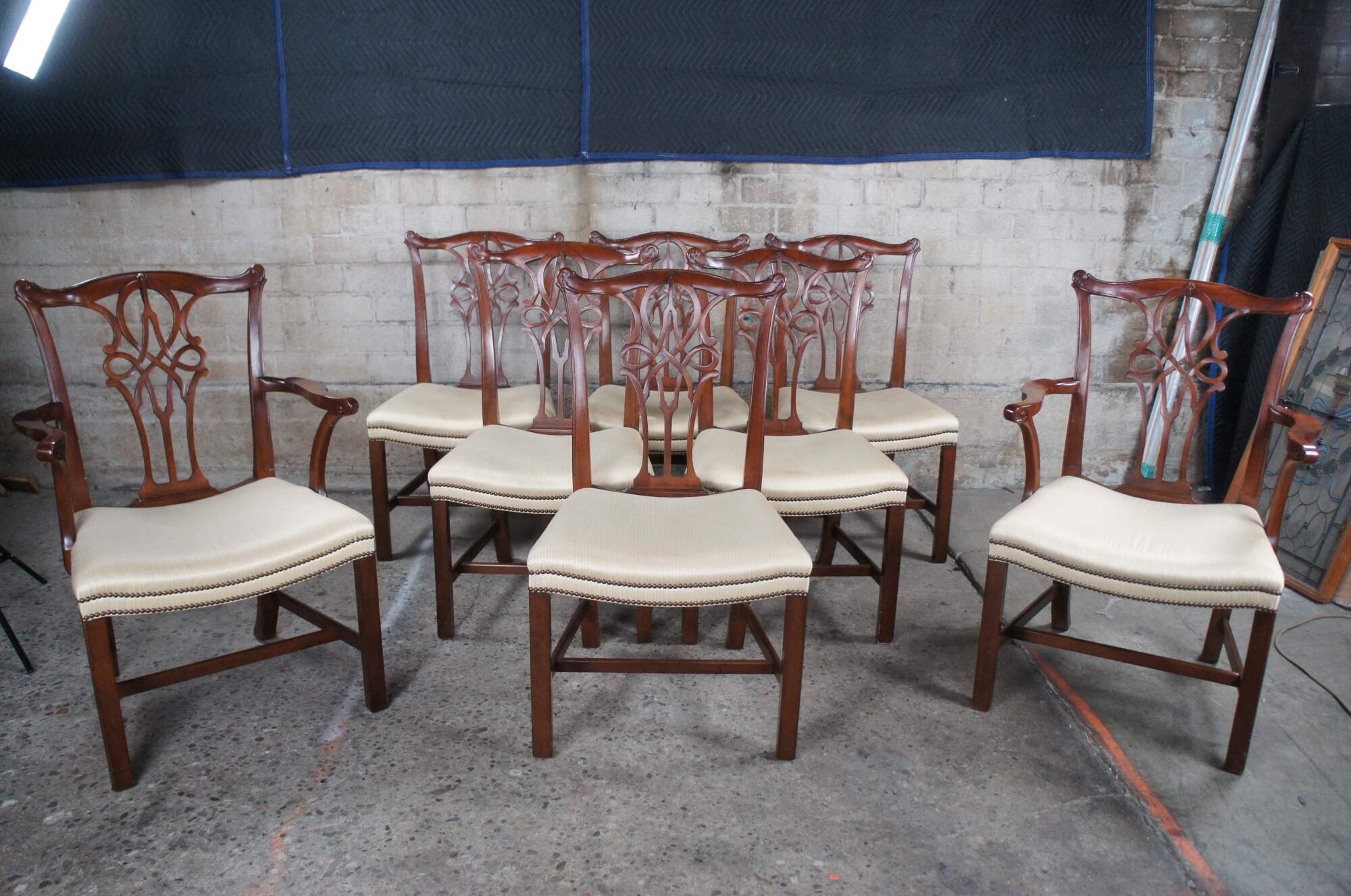 A rare and exceptional set of eight fine Chippendale carved mahogany dining chairs from the exclusive Stately Homes Collection by Baker Furniture.