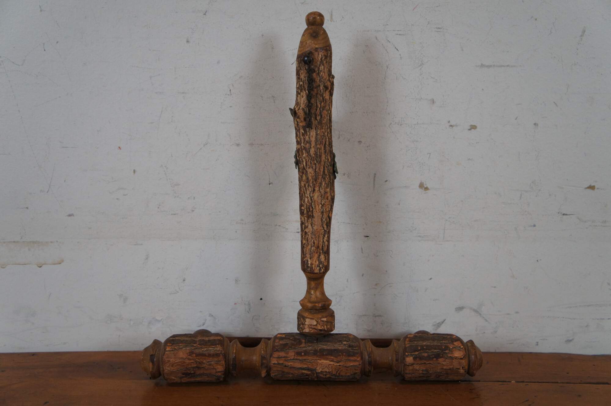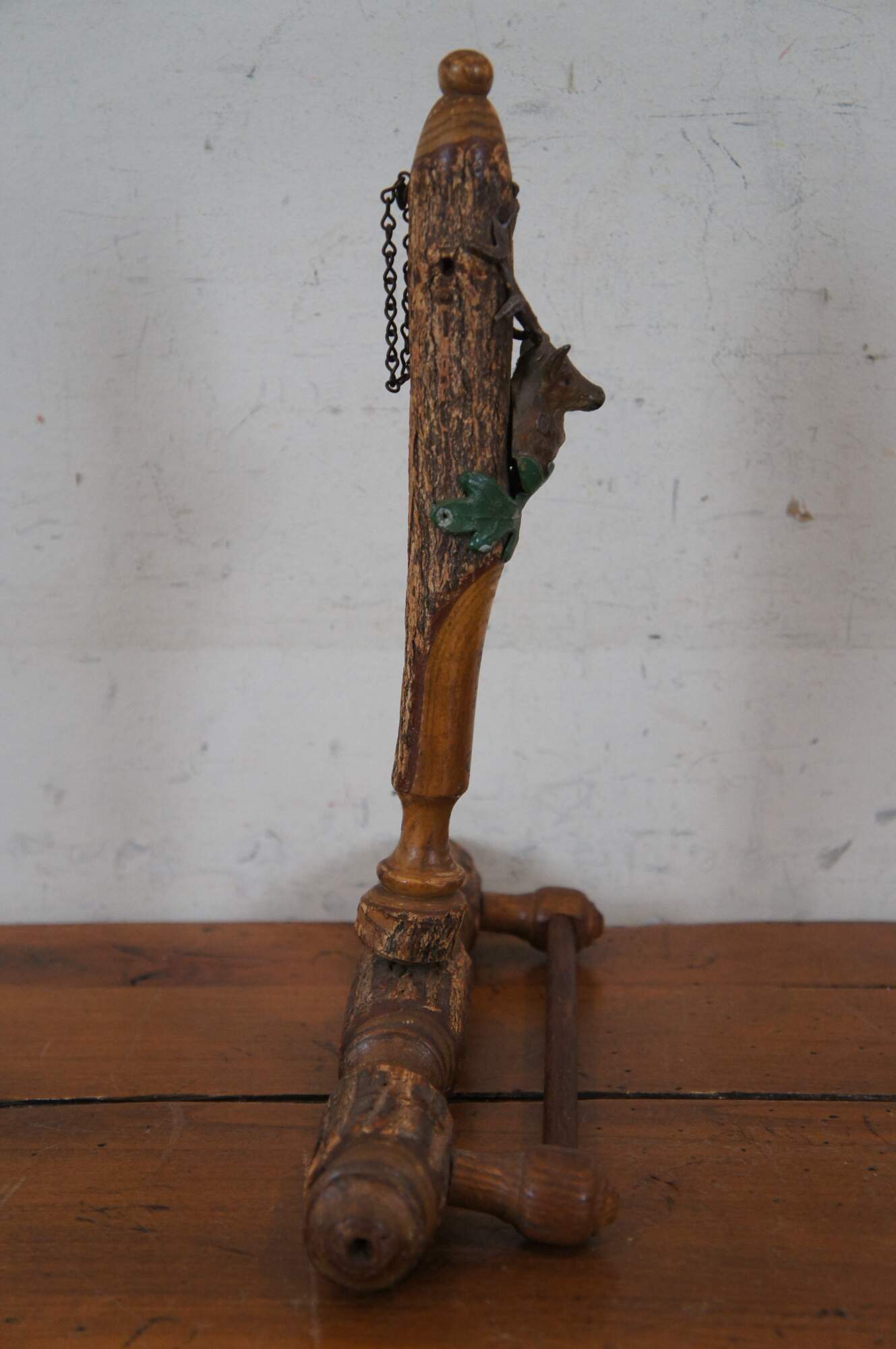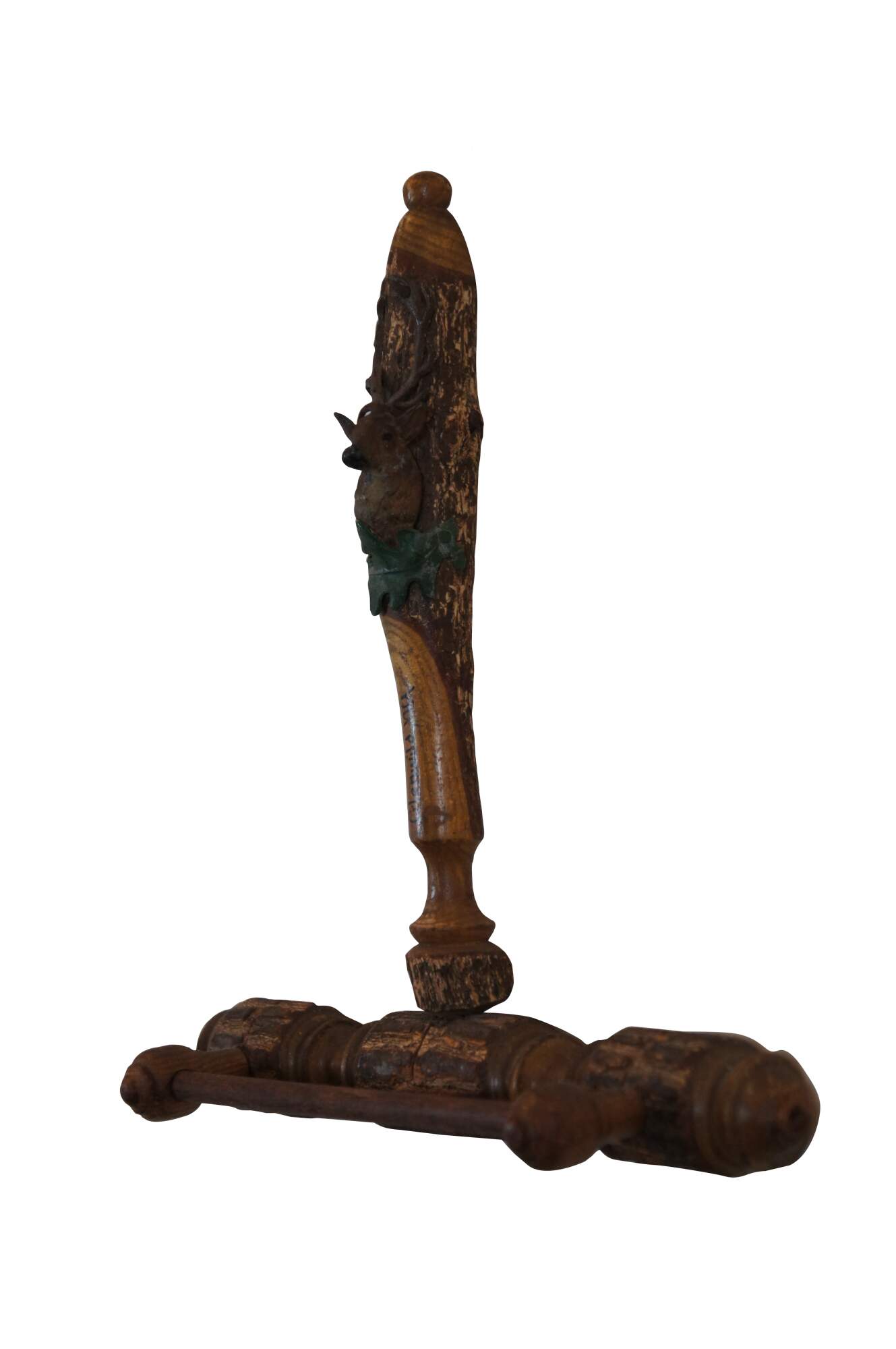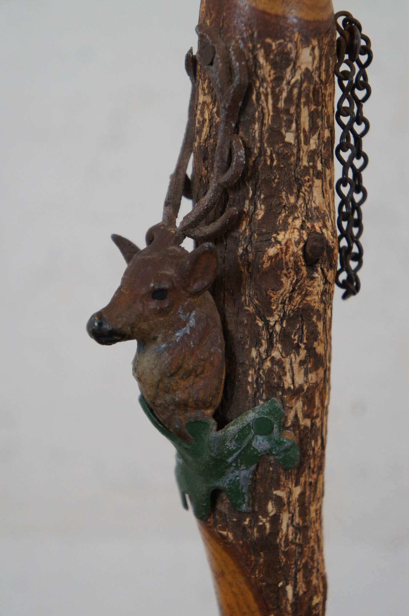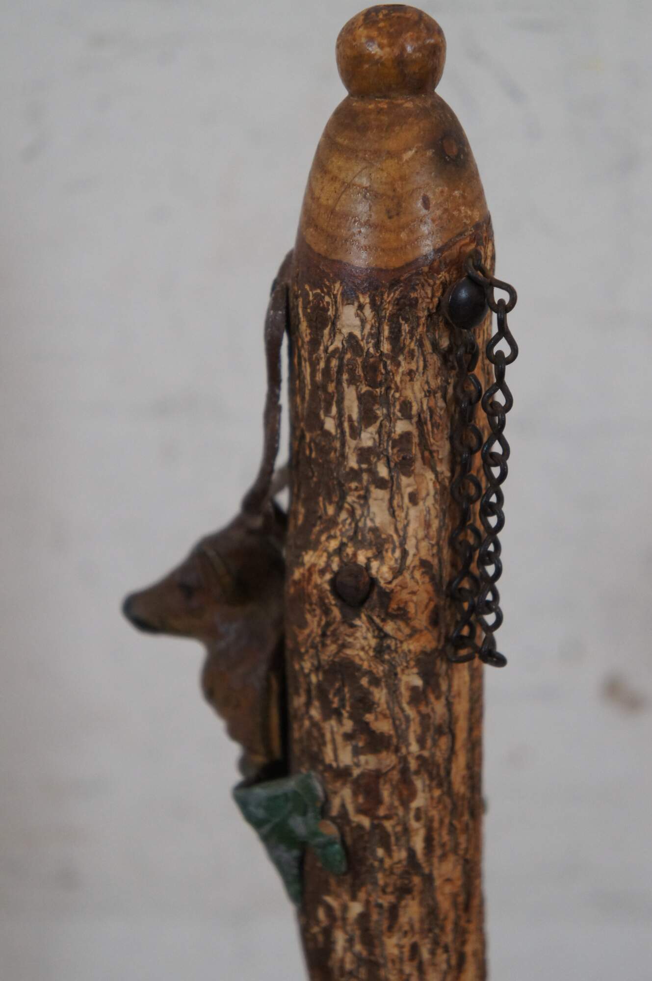 Vintage carved folk art hunt theme / lodge / cabin / farmhouse towel rack or holder. Made of turned wood featuring black forest styling with deer / stag wrapped post.