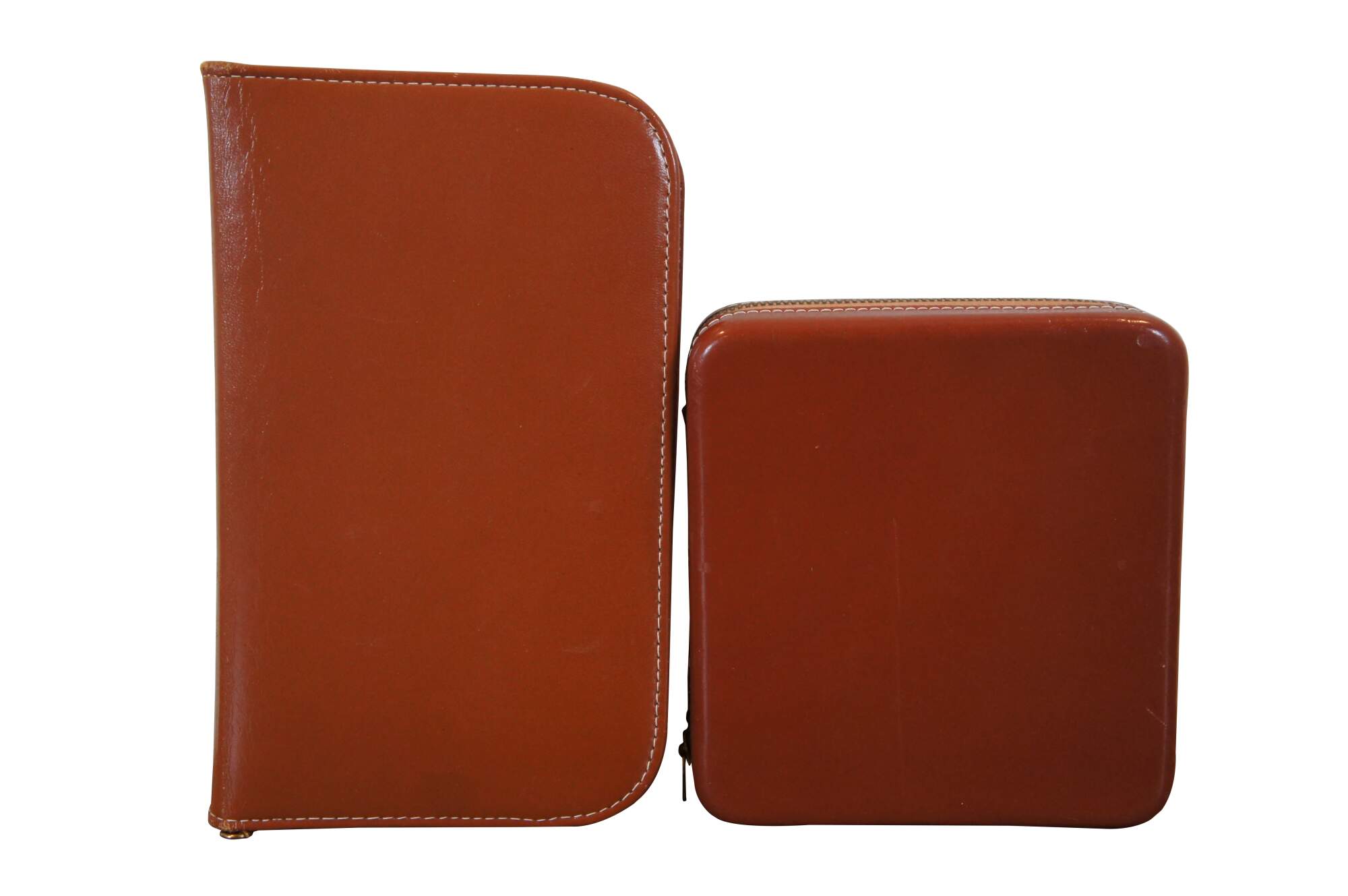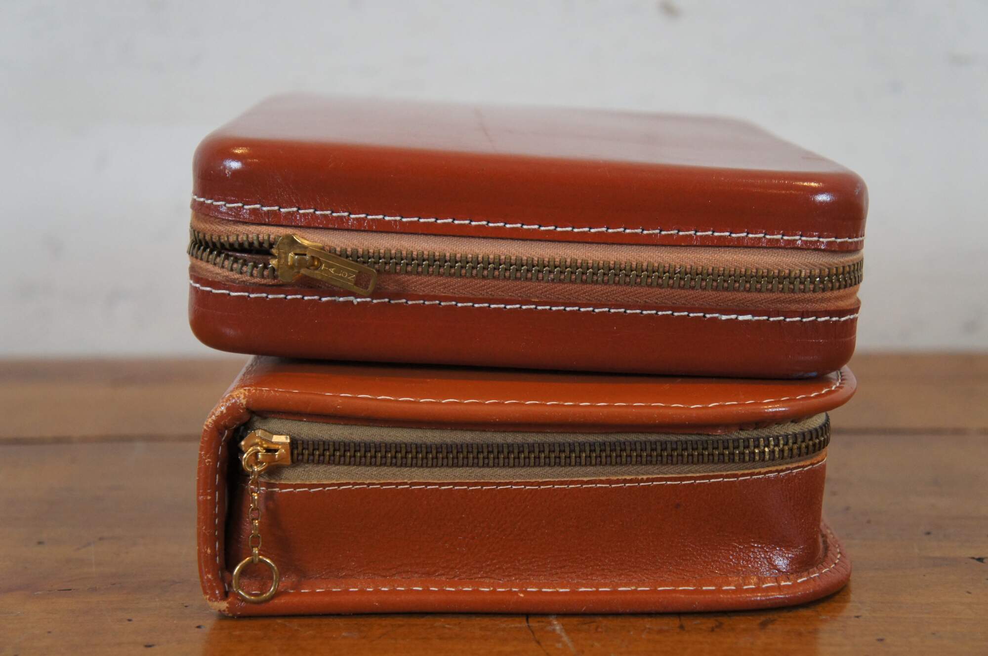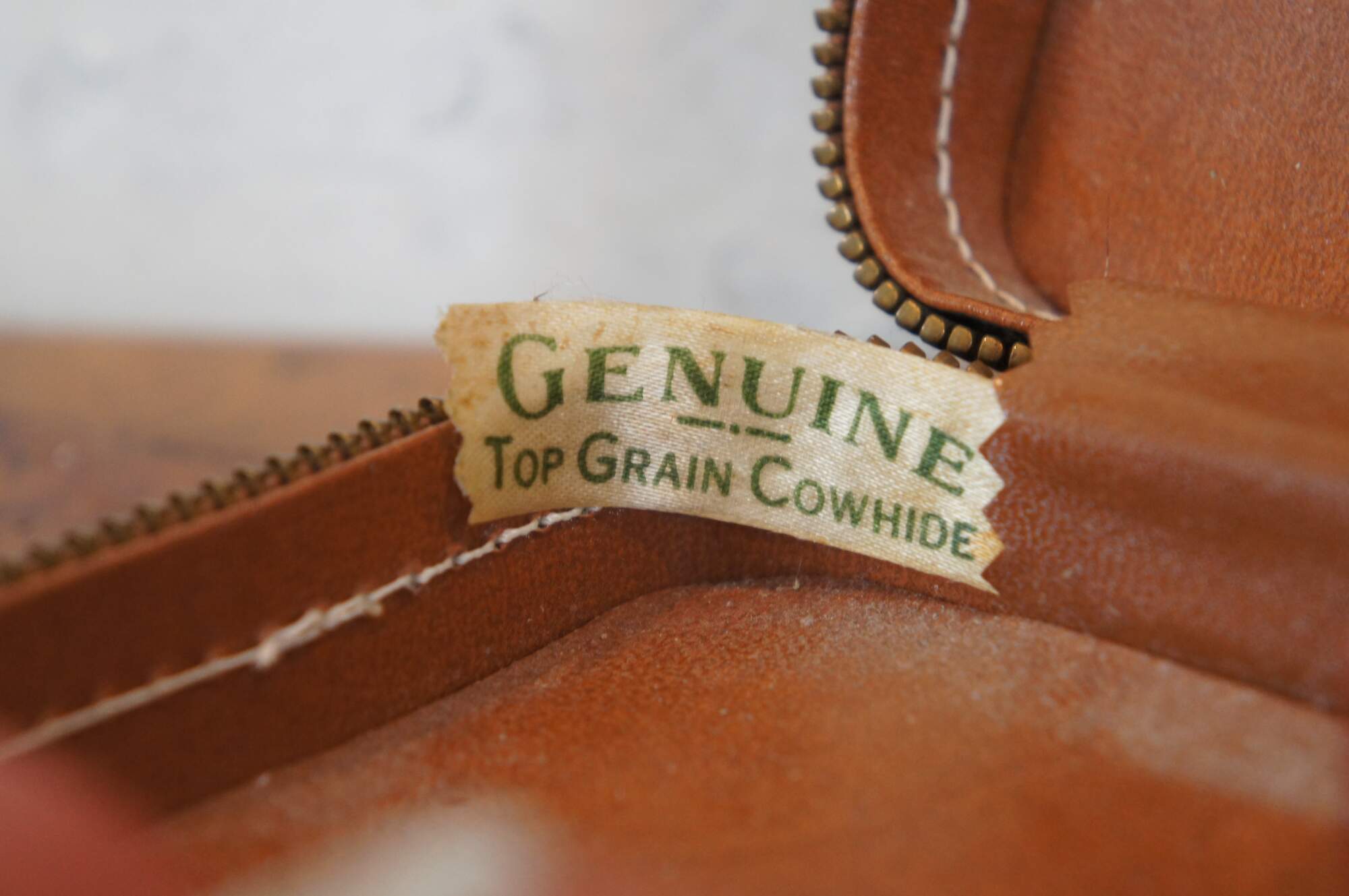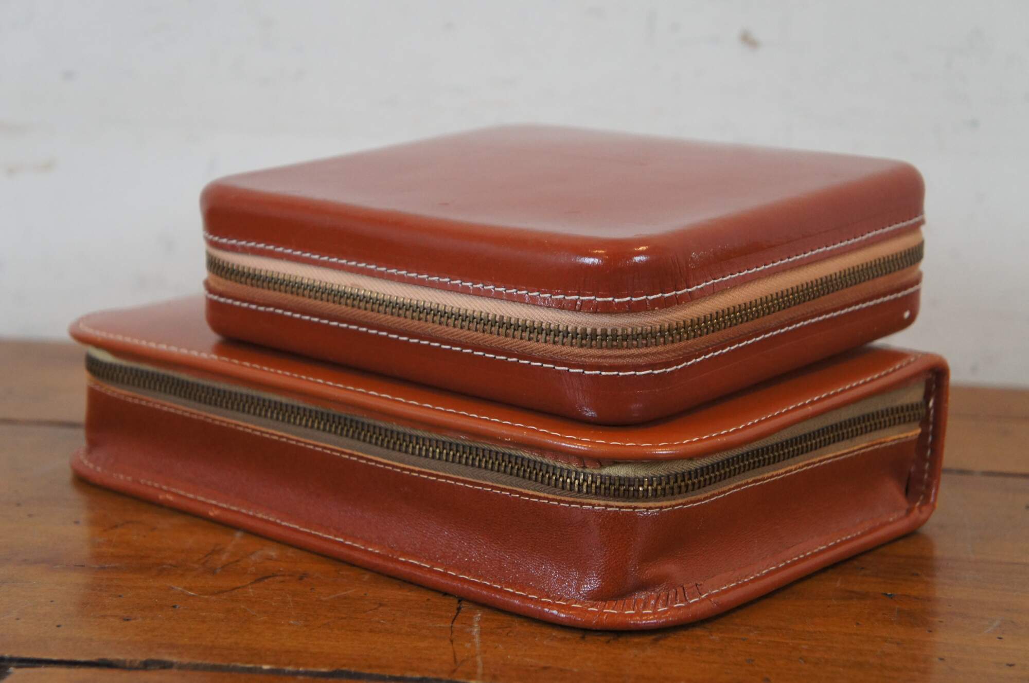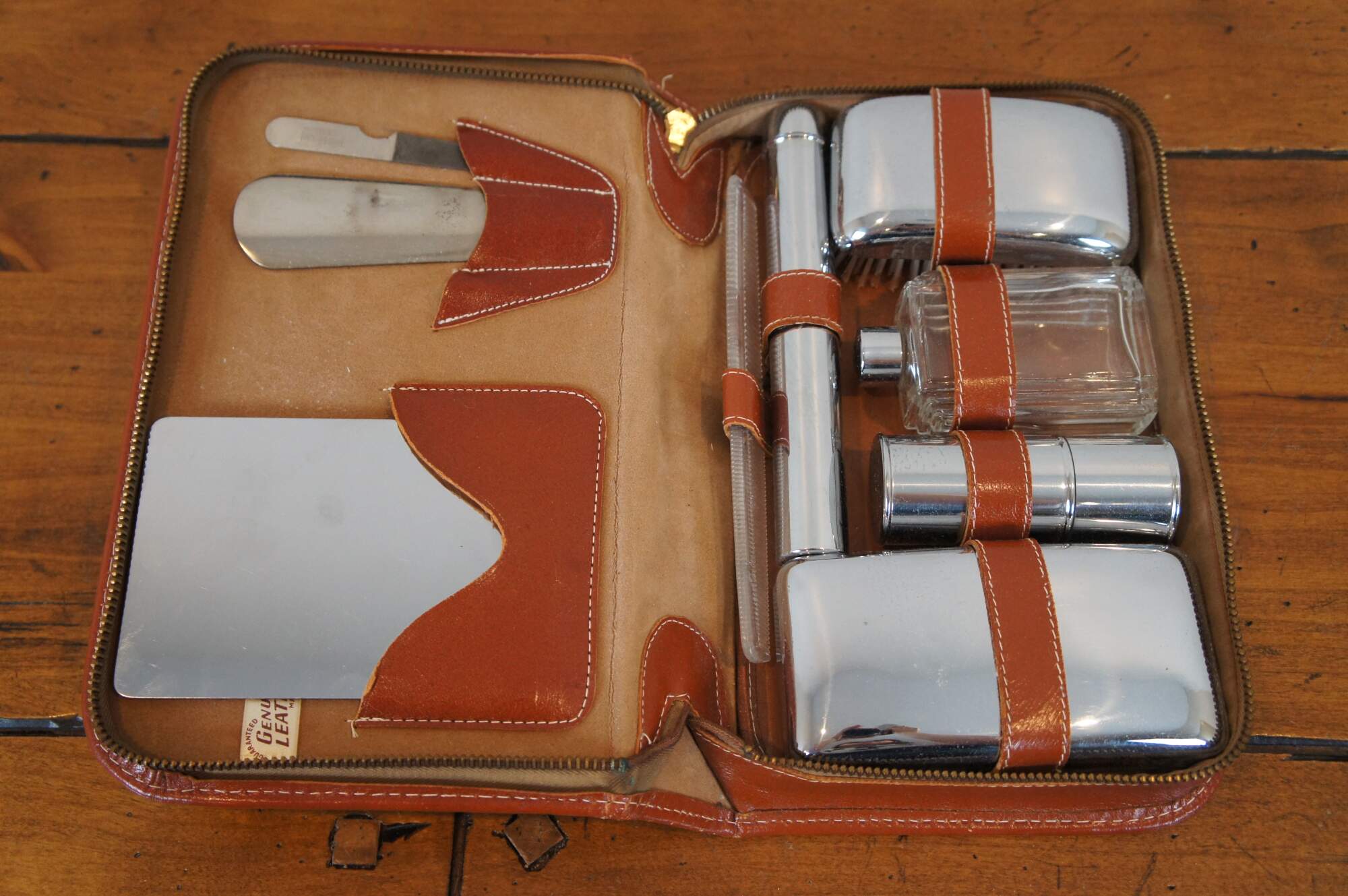 Two vintage genuine top grain cowhide leather toiletry / grooming / vanity travel kits with zipper closure.