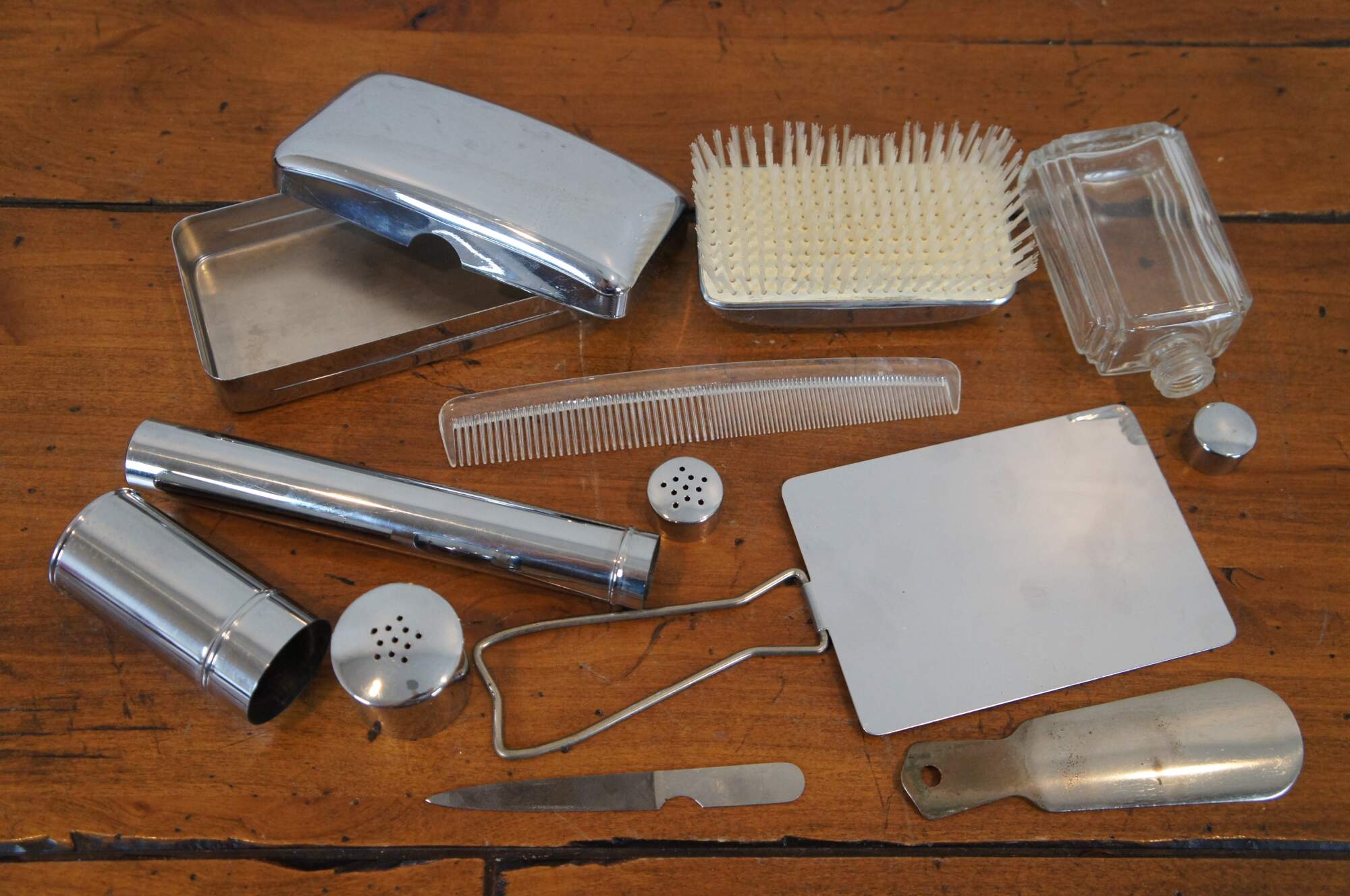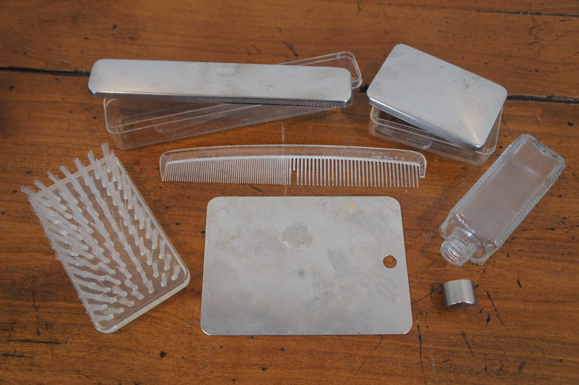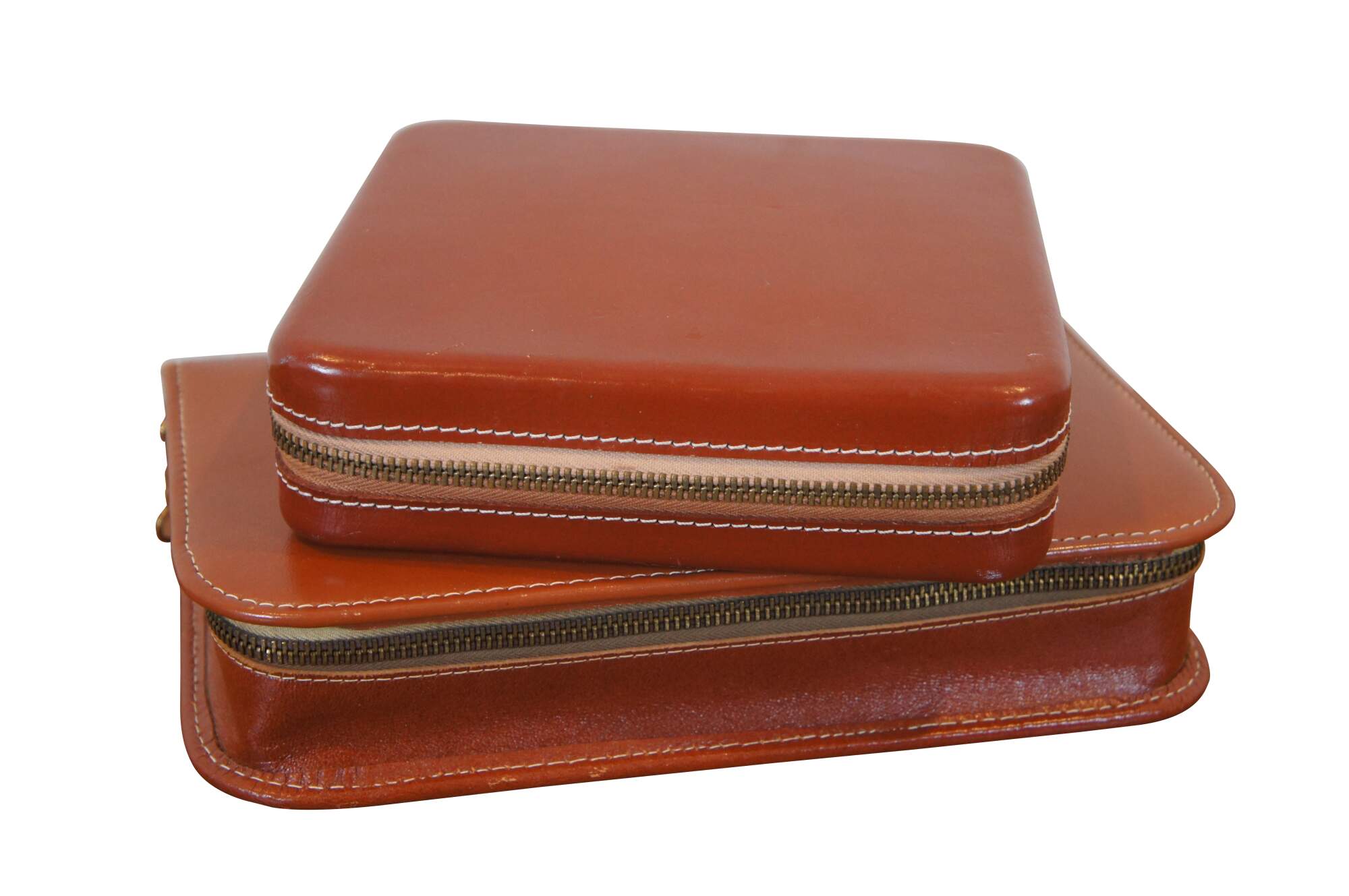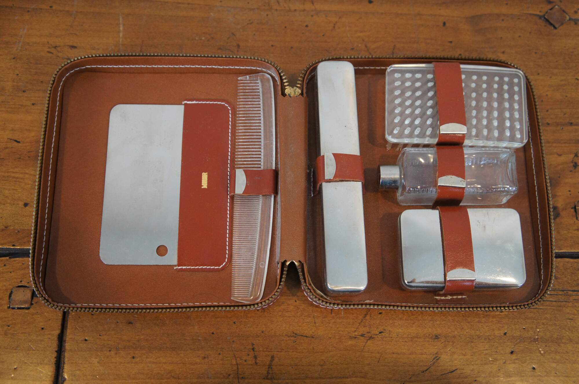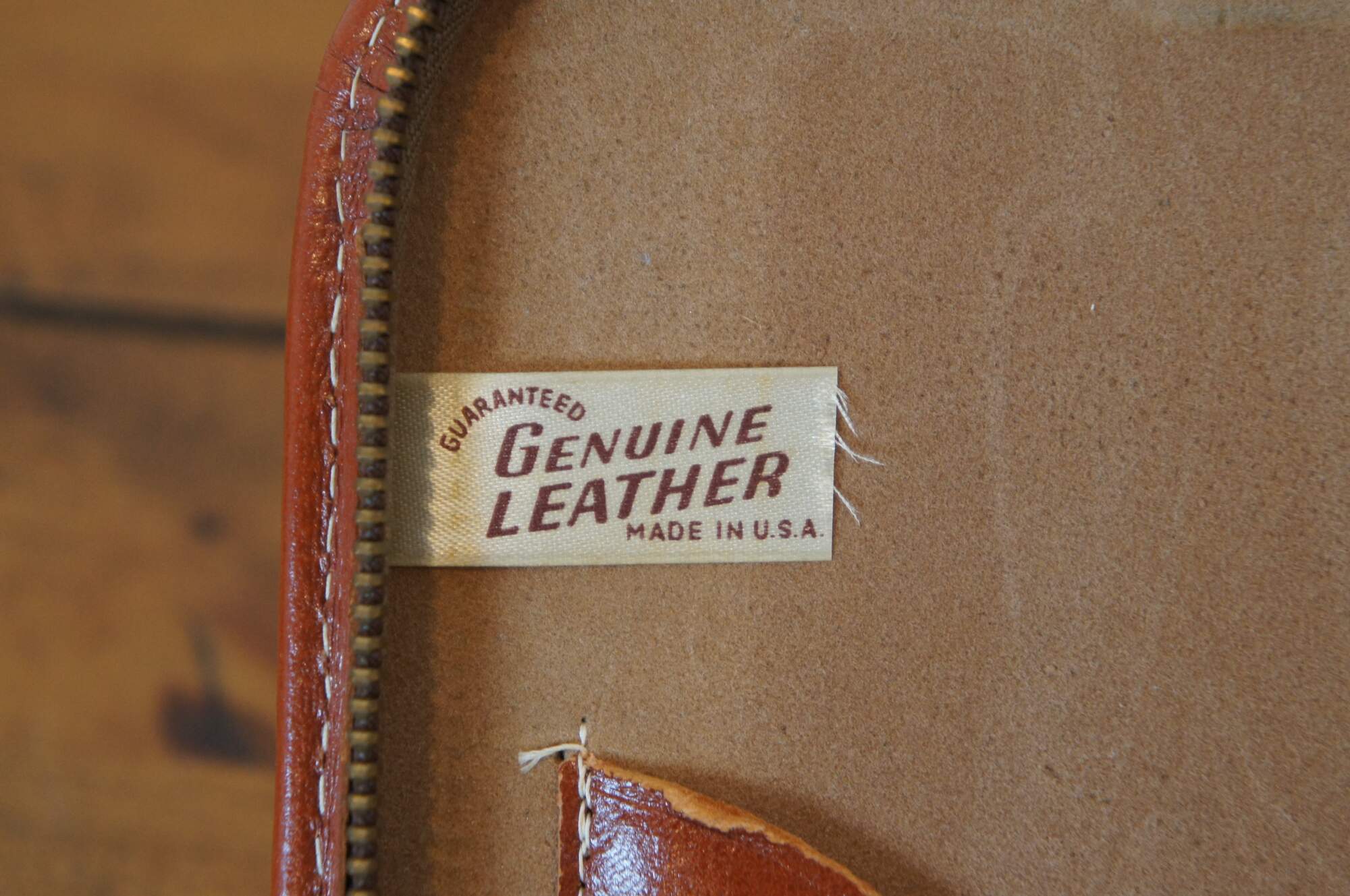 Two vintage genuine top grain cowhide leather toiletry / grooming / vanity travel kits with zipper closure.