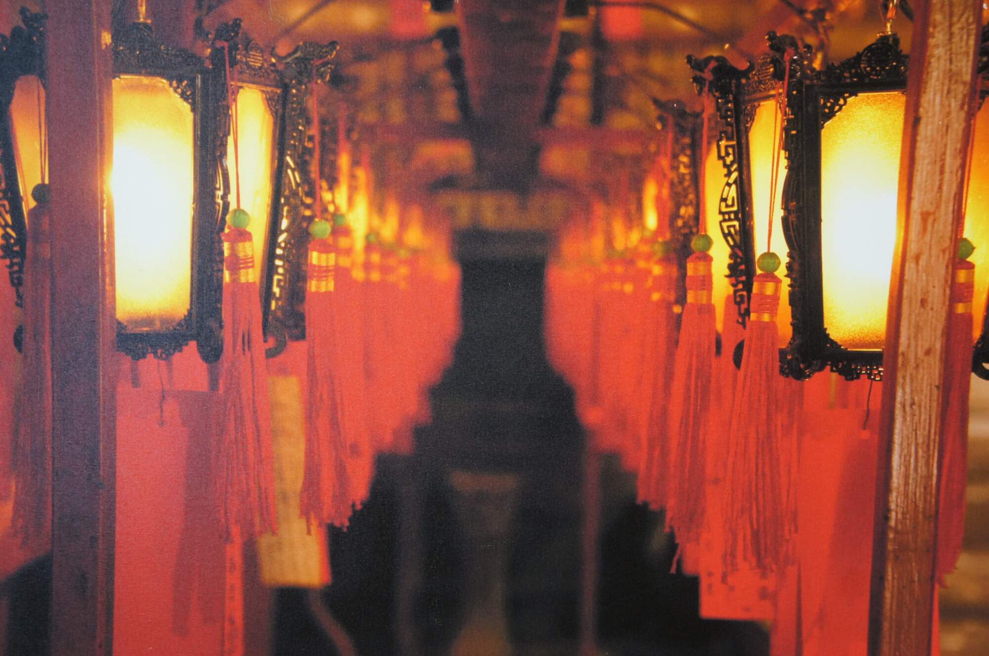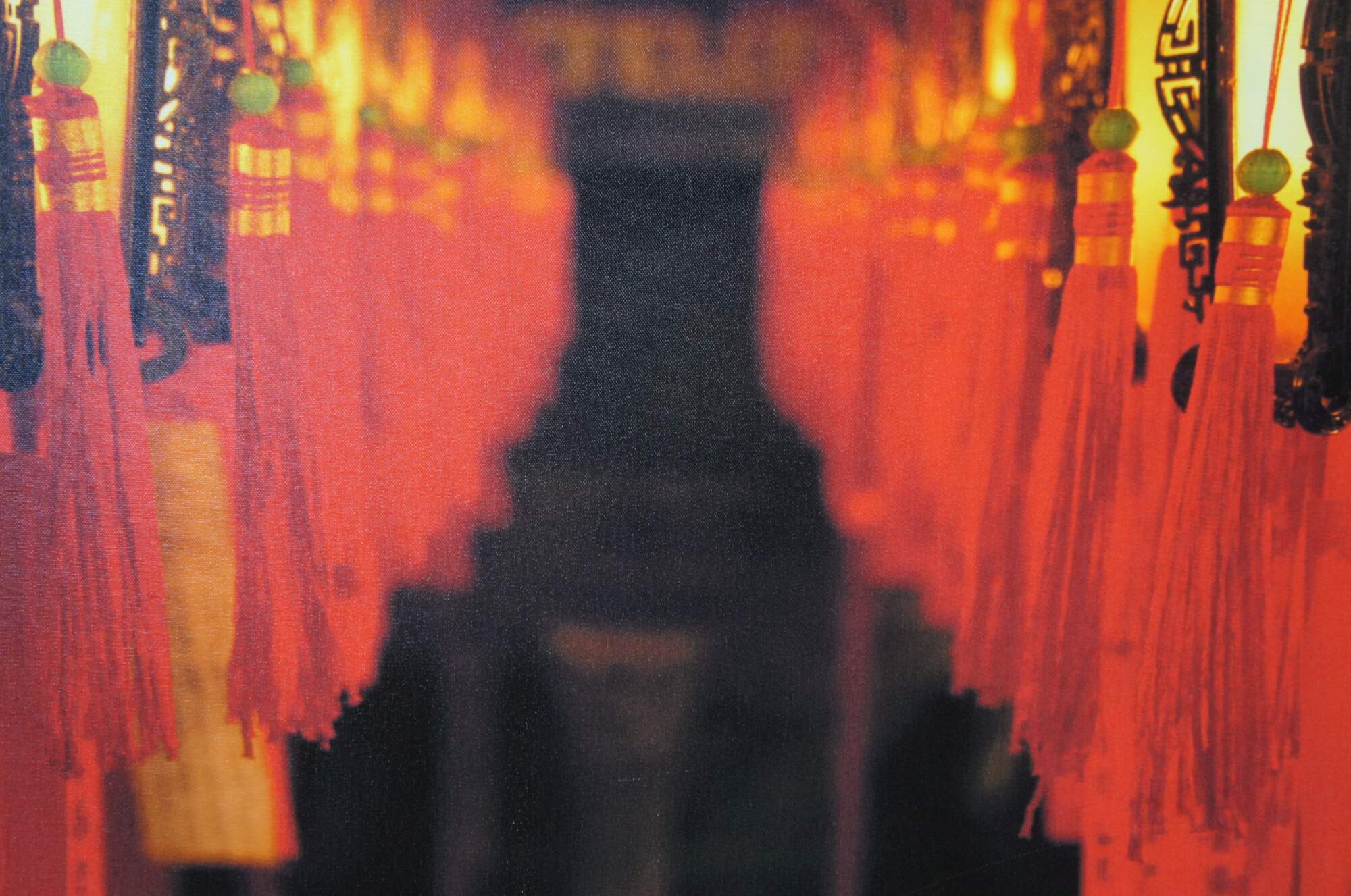 A lovely print on canvas showing a view of prayer lanters at Hong Kong's Man Mo Temple.