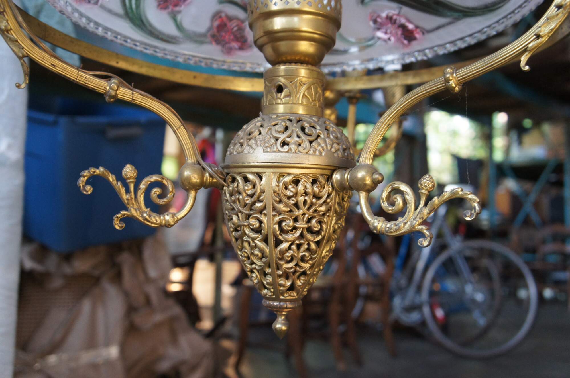 Good Antique Condition; General age and use related wear. Converted from gas to electric. Some bending to arms and slight differences in candelabra light heights.