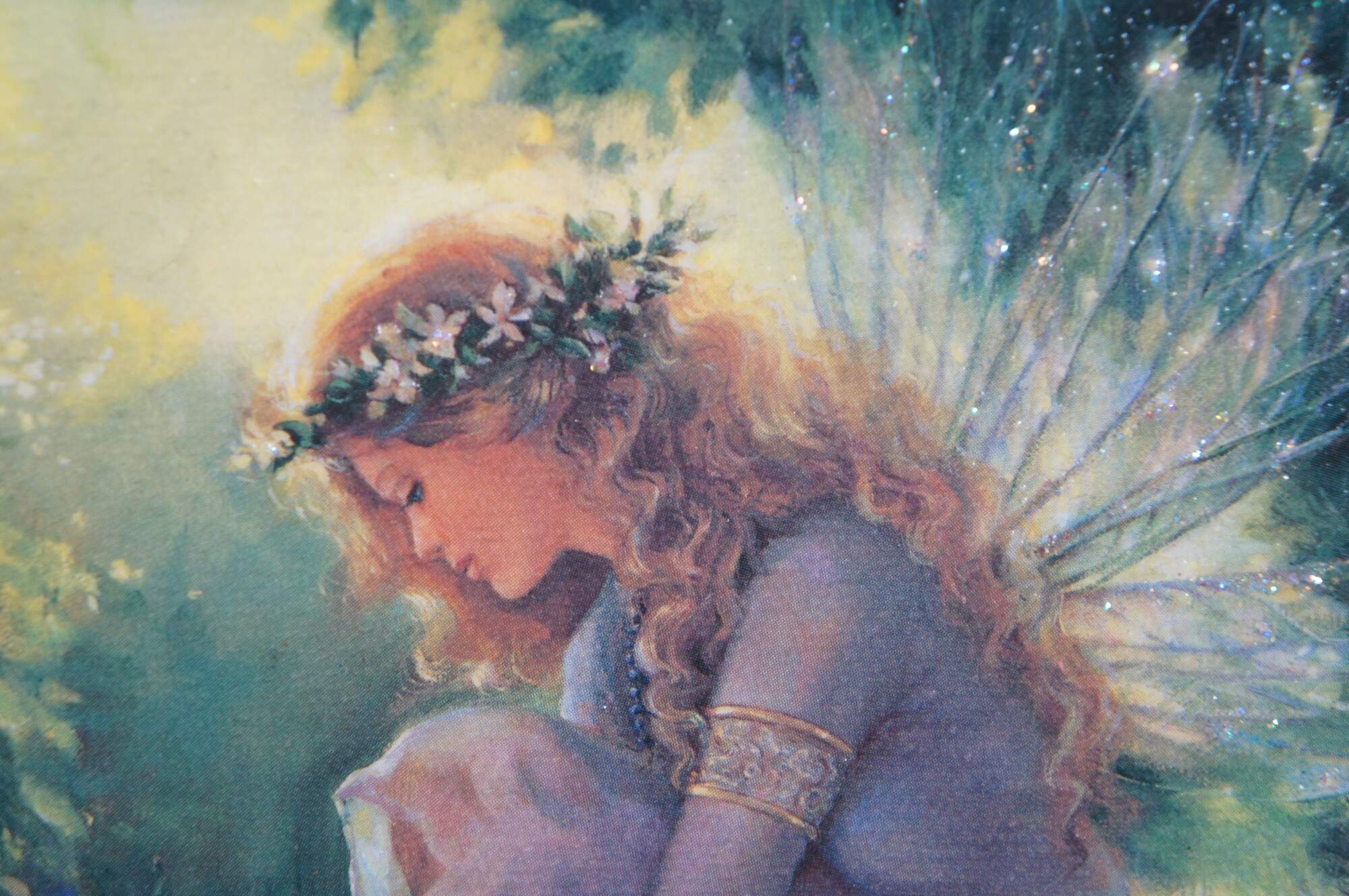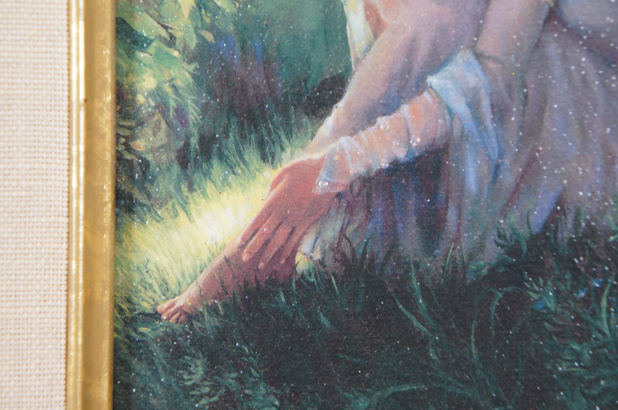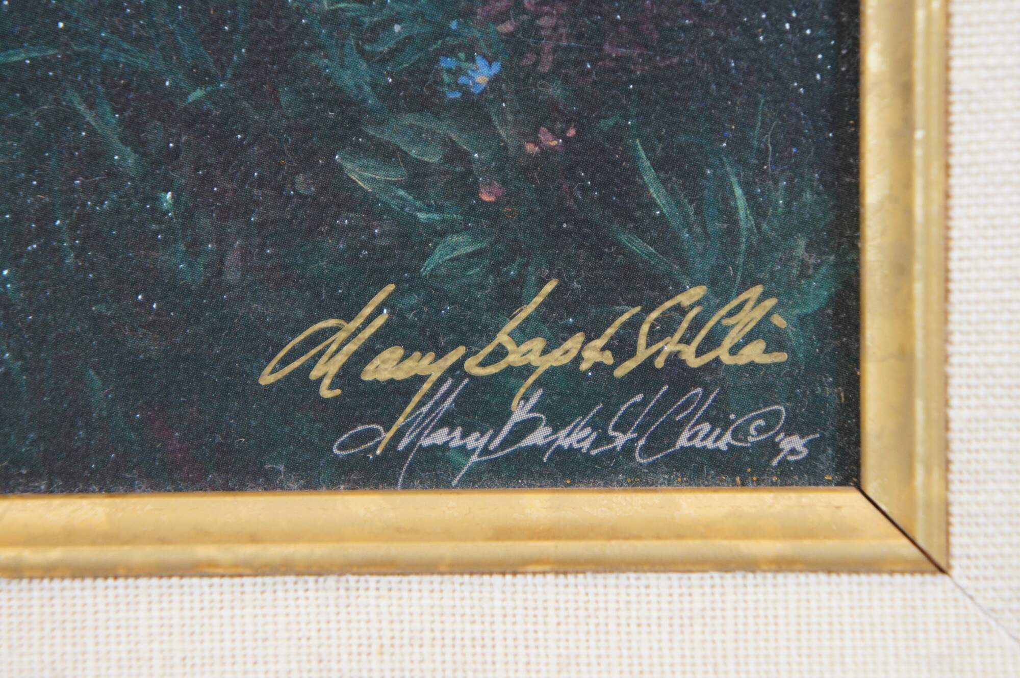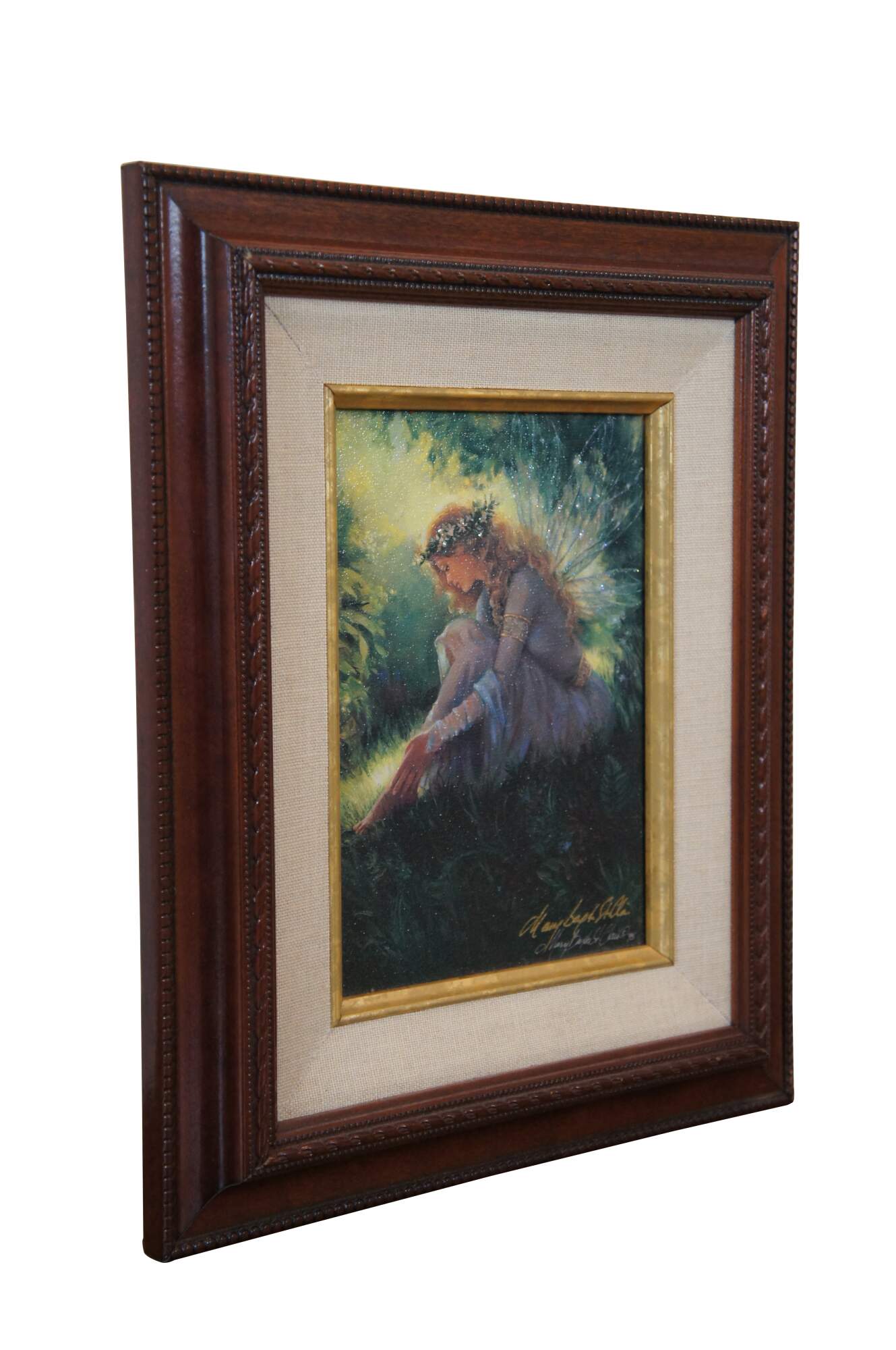 Vintage Mary Baxter St. Clair Garden of Dreams framed giclee on canvas featuring a fairy in the forest. Singed lower right, circa 1995.