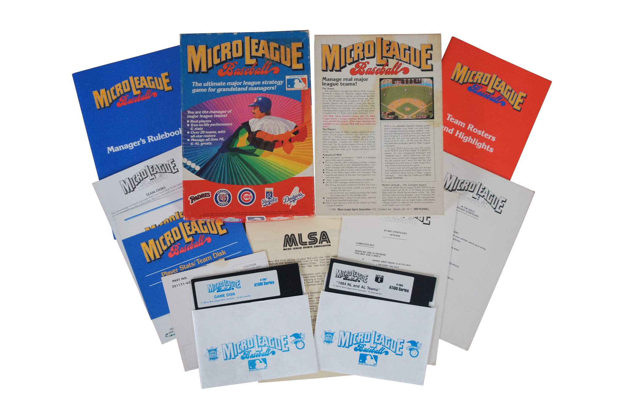 Micro League Baseball – by Micro League Sports association – Atari Series – B1007 Game Disk and B1984 “1984 NL and AL Teams” – with Box and Inserts/Booklets