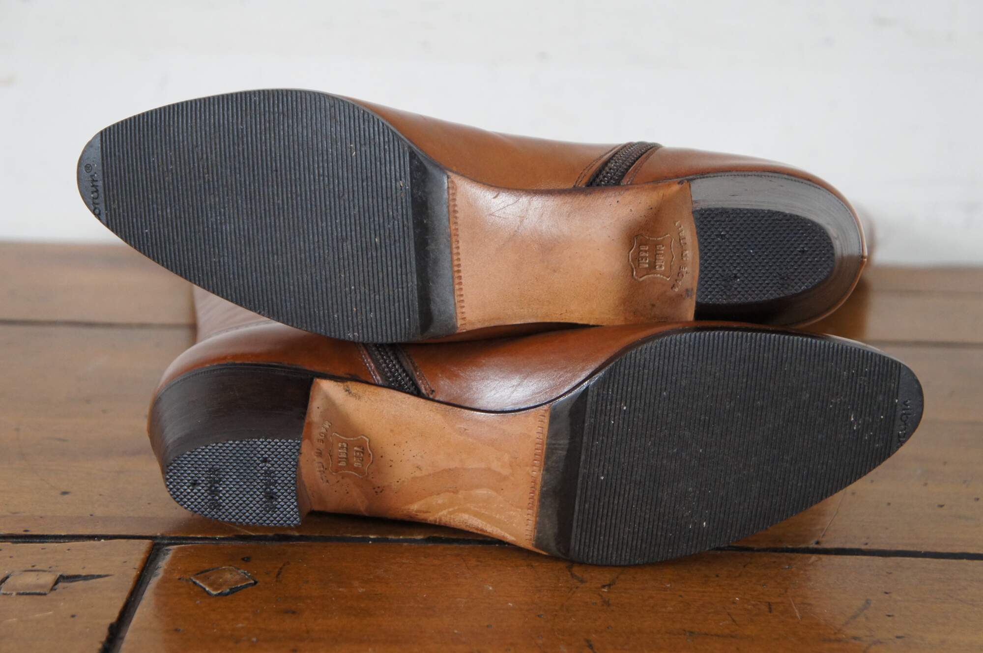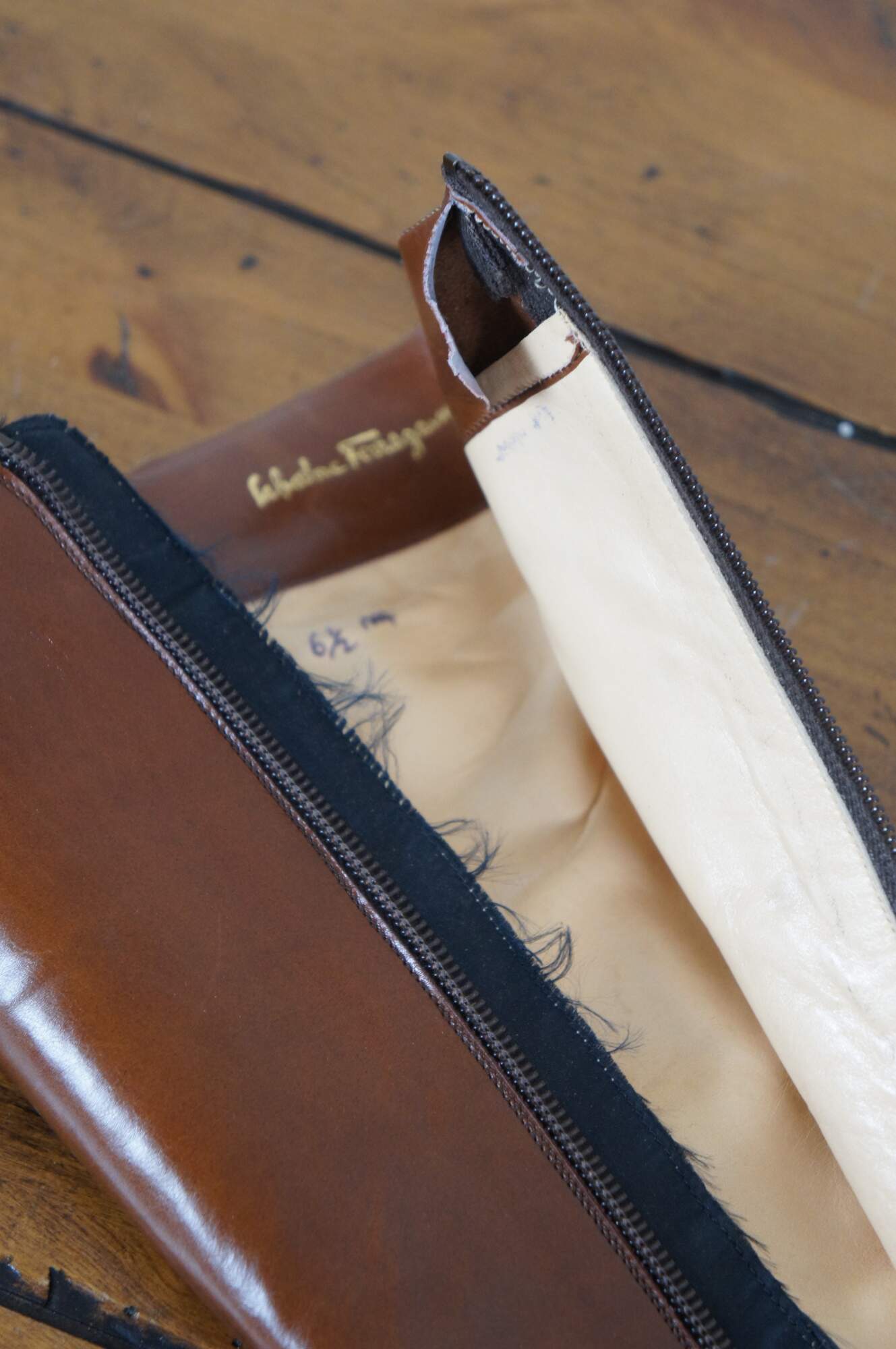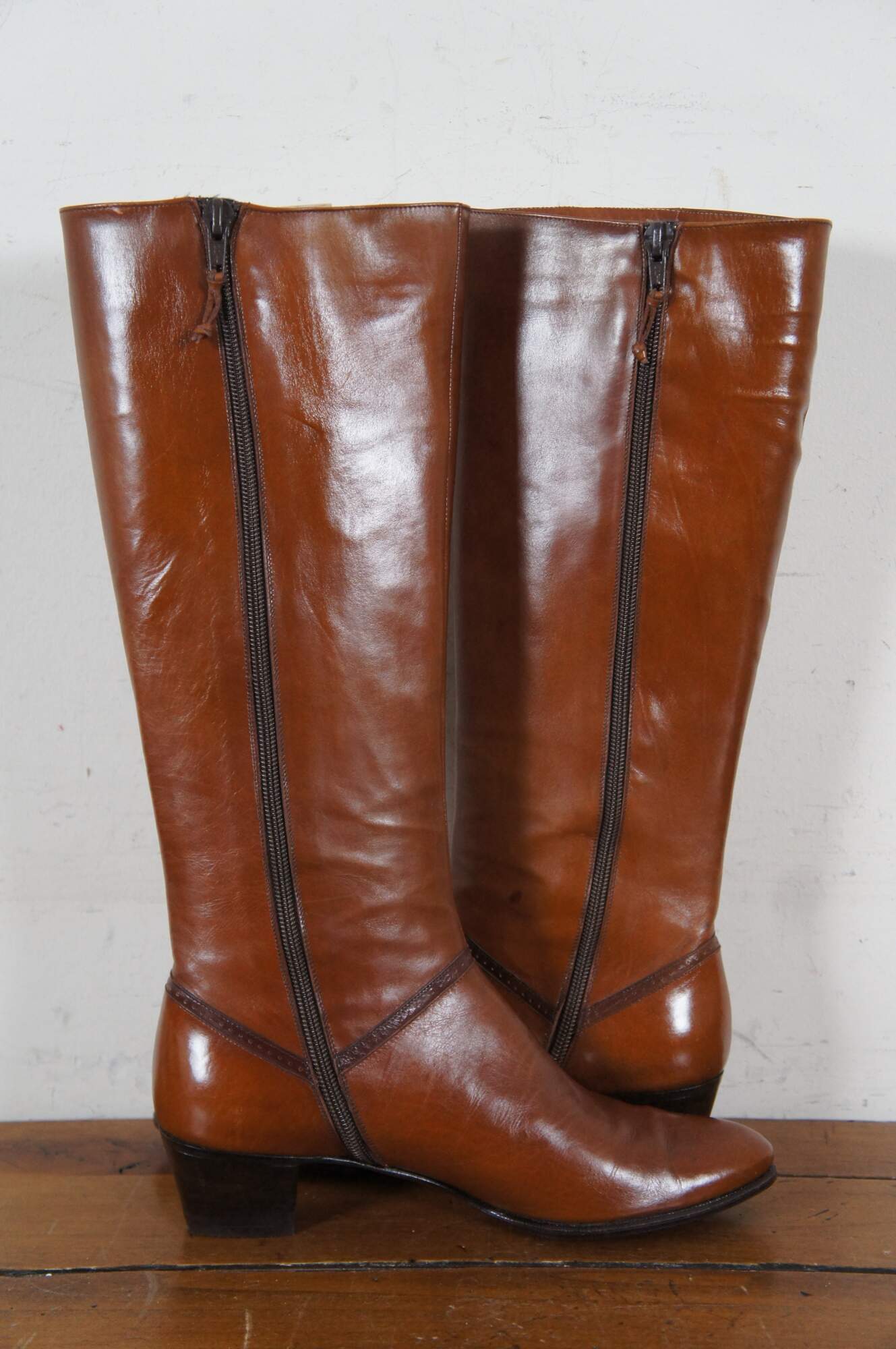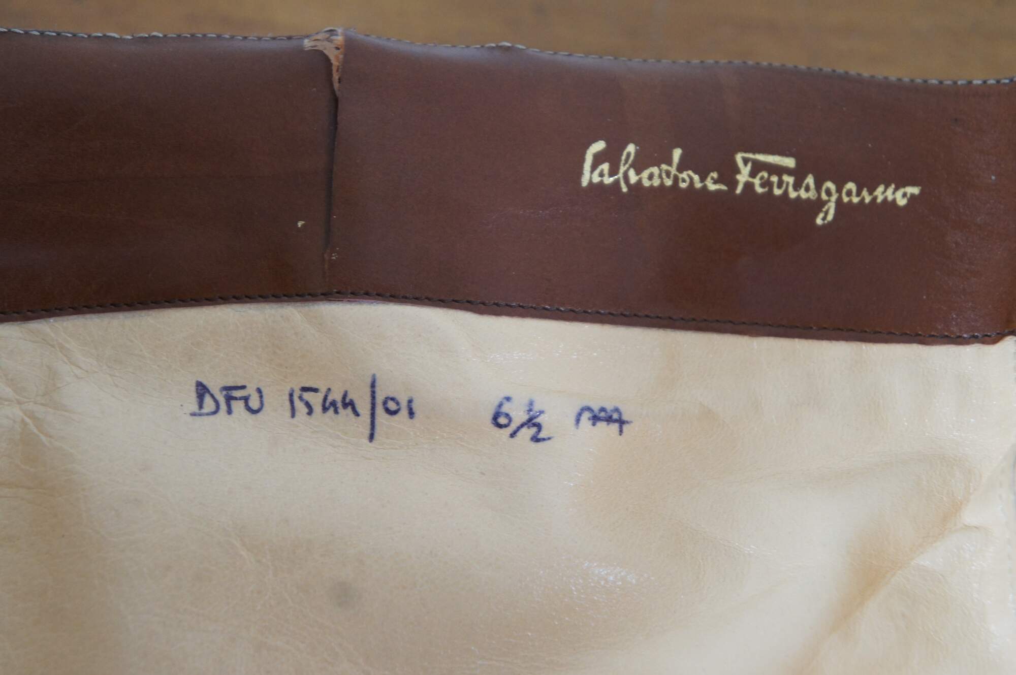 Vintage pair of tall riding boots by Salvatore Ferragamo in Rallina brown calf leather. Made in Italy. Original box included. Size 6.5 AAA. DFU 1544