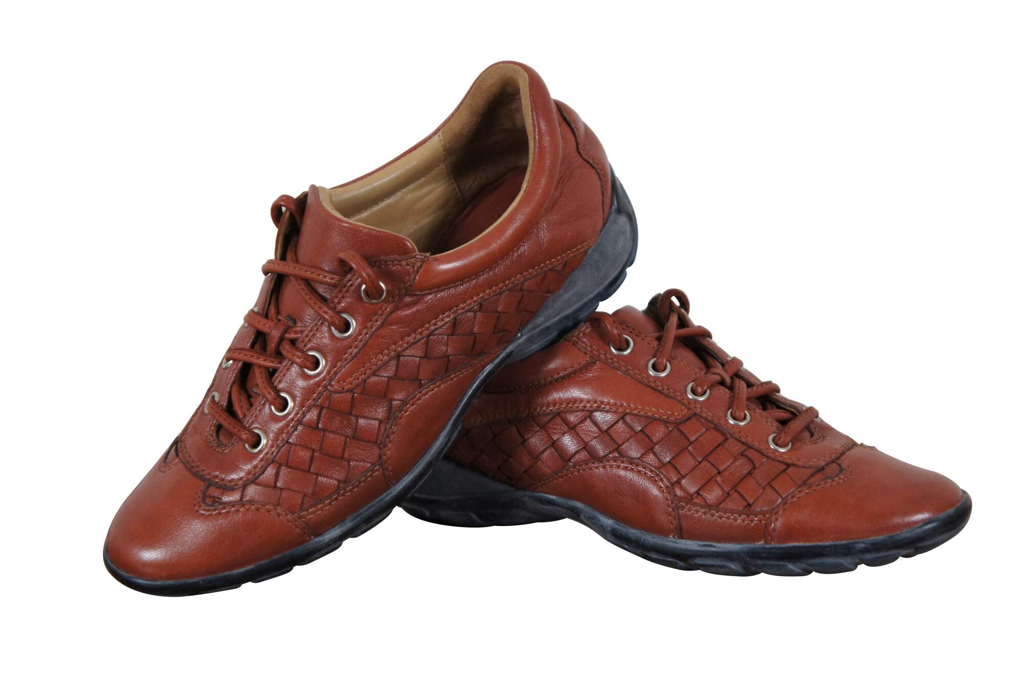Vintage Robert Zur Senna brown woven leather lace up tennis shoes in vintage luggage true glove. Size 6.5 AAAA. MSRP $298. Made in India.