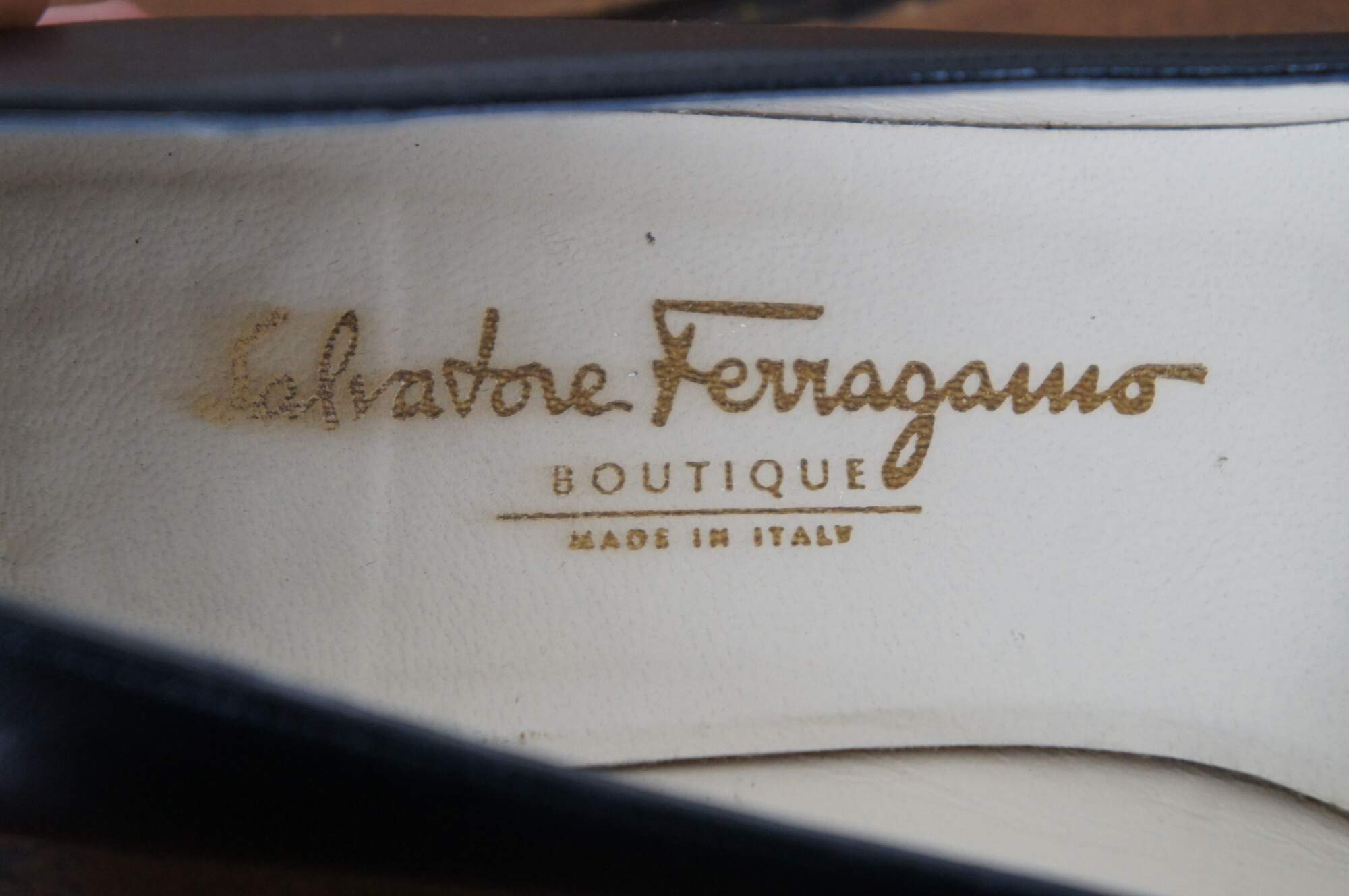 Vintage pair of Salvatore Ferragamo low heel flats / low pump. Size 6.5 AAAA. MSRP $230. Made in Italy. Nubiana, nero napa kid.